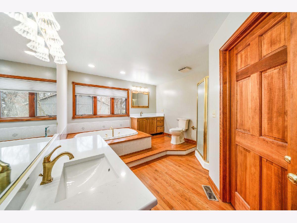 Welcome to your beautiful move in ready custom home tucked away in the peaceful Crest Springs cul de sac! This home features FOUR main floor bedrooms as well as a huge loft-potential bedroom/family room up stairs. Plenty of space for all with over 3,300 square feet & a NEWLY finished basement! (Partial) Other recent updates include granite counter tops and stainless steel appliances, fresh paint, upgraded electric, radon mitigation system & more! Pulling up you'll notice ample parking with the huge concrete drive way & extra deep 3 car garage. In the front is a covered patio & out back there is both a screened in porch & uncovered deck overlooking the large yard, perfect for enjoying coffee or just relaxing on a nice day. There is an additional side door which can be used as a private 2nd entrance. Inside you're greeted with vaulted ceilings, a cozy gas/wood burning fireplace & natural hardwood floors. The updated master has a private bath with his & her sinks, jacuzzi tub and separate shower as well as a large walk in closet. Home is bright throughout with bay windows and skylights. Convenient main floor laundry. Downstairs there are 3 large rooms that have endless opportunities. Quiet 1 ACRE wooded lot, large shed with multiple garage doors, no HOA or SSA. Conveniently located close to shopping, route 88 & amenities. Don't pass up the chance to make this beautiful home yours!