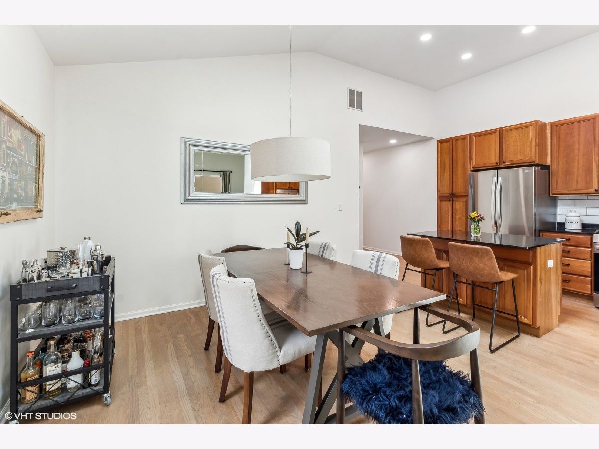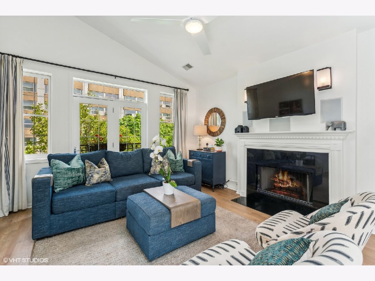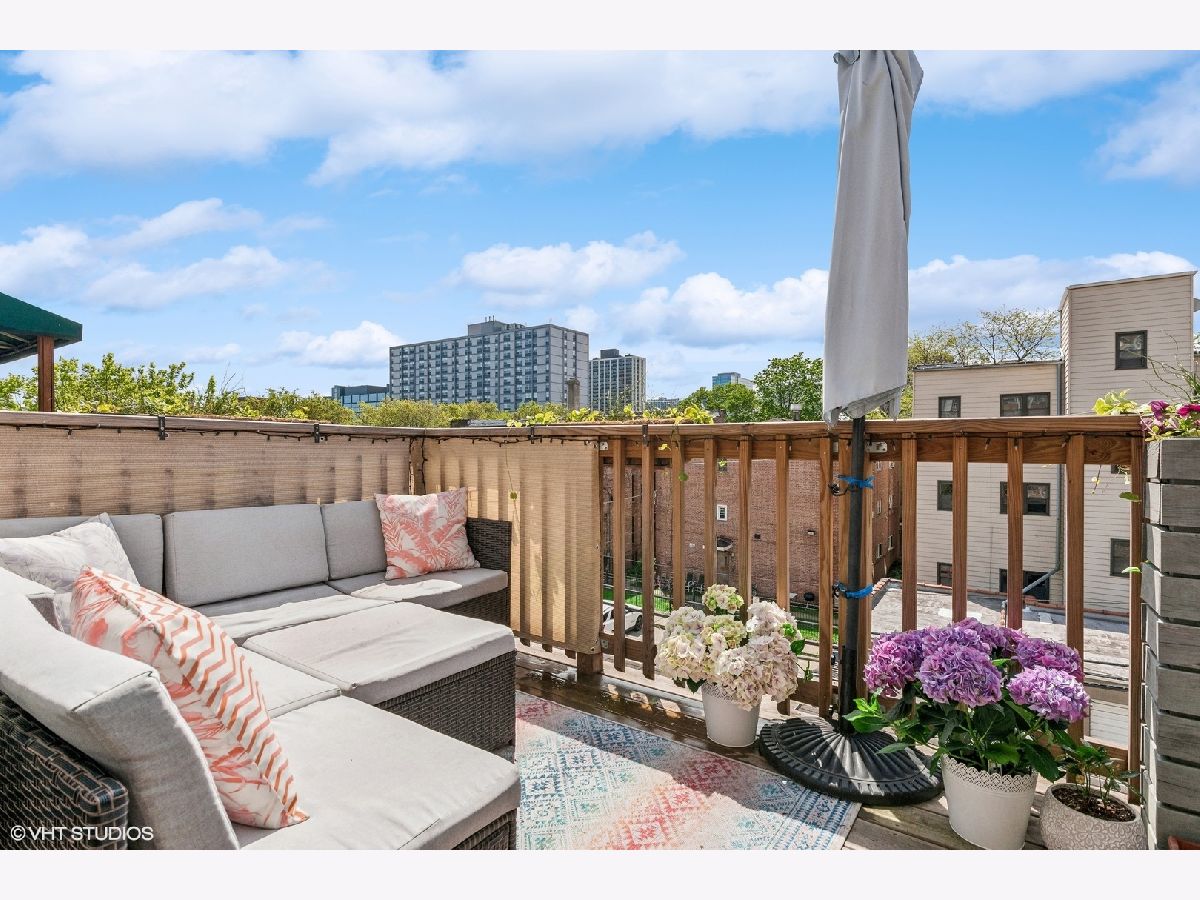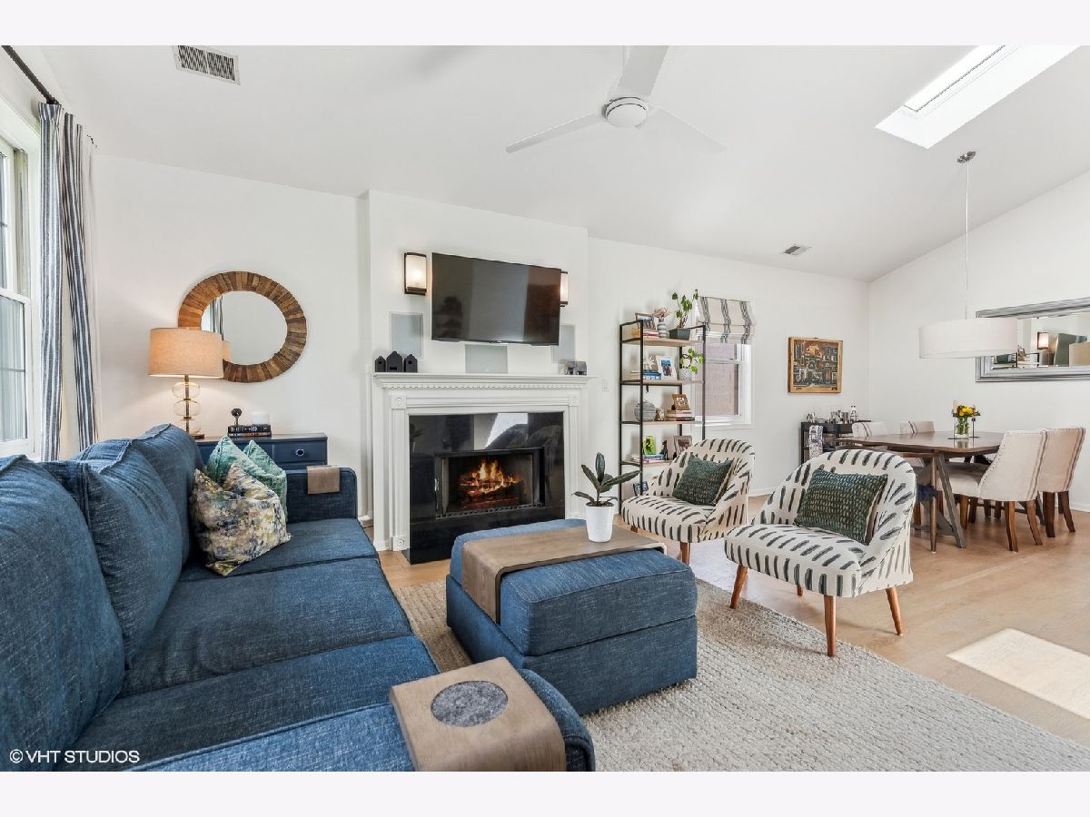 Incredible top-floor 2 bed/2 bath condo w/ 2 parking spots on a gorgeous tree-lined street in Uptown! This condo has been meticulously maintained by the current owners. The living/dining/kitchen feature an incredible 11.5 foot vaulted ceiling w/ a skylight that brings in so much natural light. The living room has a Juliette balcony, gas fireplace, & TV w/ surround sound stereo system. The dining room can easily fit 6-8 guests. The kitchen was updated in 2022 & features 42" cherry cabinets, granite counters, built-in pantry, LG appliance package, & subway tile backsplash. The hall bath was renovated in 2023, & features a walk-in shower & custom vanity. The guest bedroom is huge & can be used as a multi-purpose room. The luxurious primary suite features a vaulted ceiling, room for a king bed, two closets (one is a walk-in), an ensuite bath w/ a new vanity, mirror, & light, & a french door out to a large south-facing balcony! The rear deck has space for seating & a grill! The current owners refinished the existing oak hardwood floors & added hardwood in the primary suite. Custom window treatments, lighting, & closet systems are throughout. Brand new furnace, water heater, humidifier, & skylights in 2024! The unit was also freshly painted and LED recessed lights were installed. The AC was replaced in 2018--all mechanicals are serviced regularly. Two (2) parking spots included in price--1 garage & 1 exterior space. An enormous lower level storage closet is included. Live close to the the new Wilson & Lawrence Red Line (L) stations, Aragon Ballroom, Andersonville, Argyle Street's fabulous restaurants, & Chicago's Lake Front!