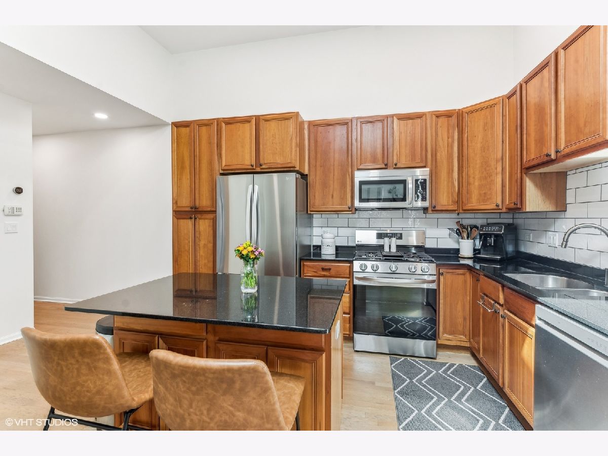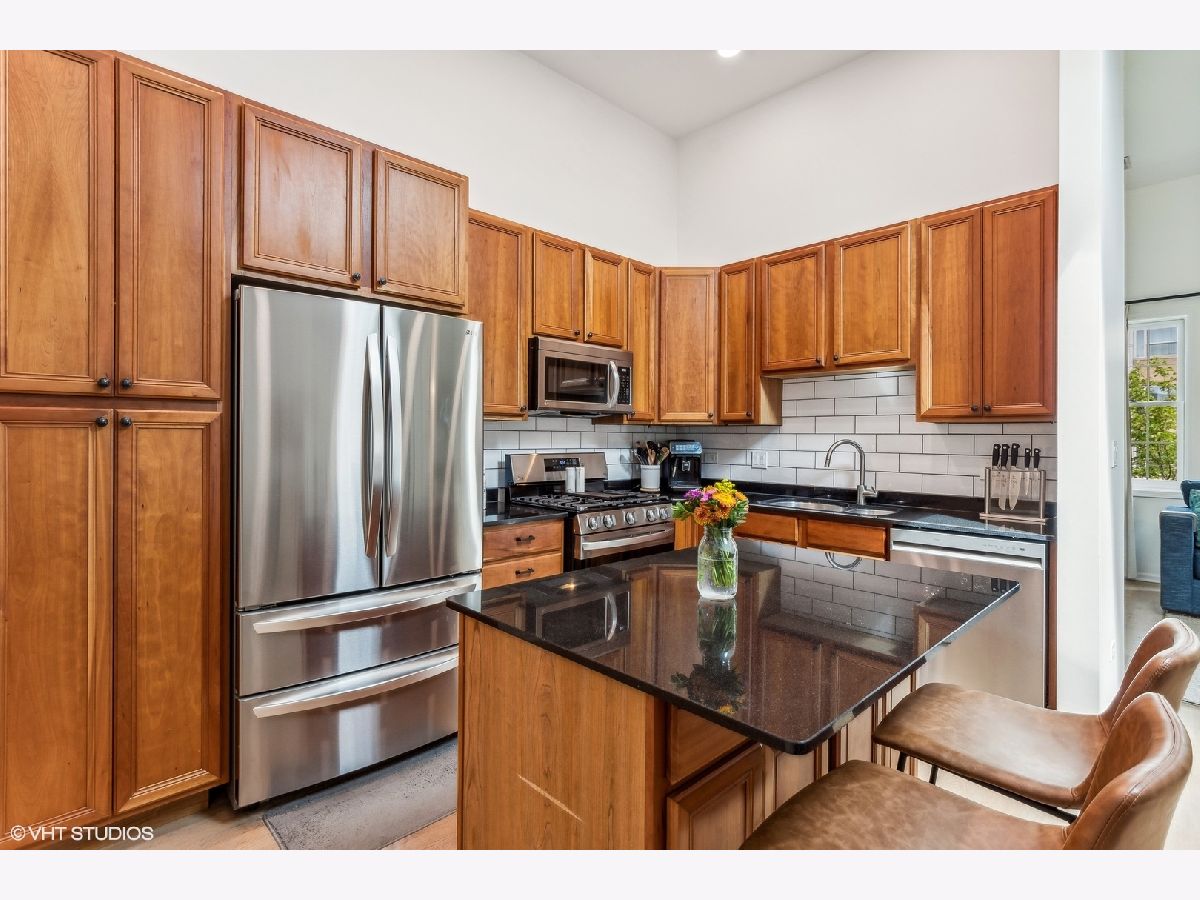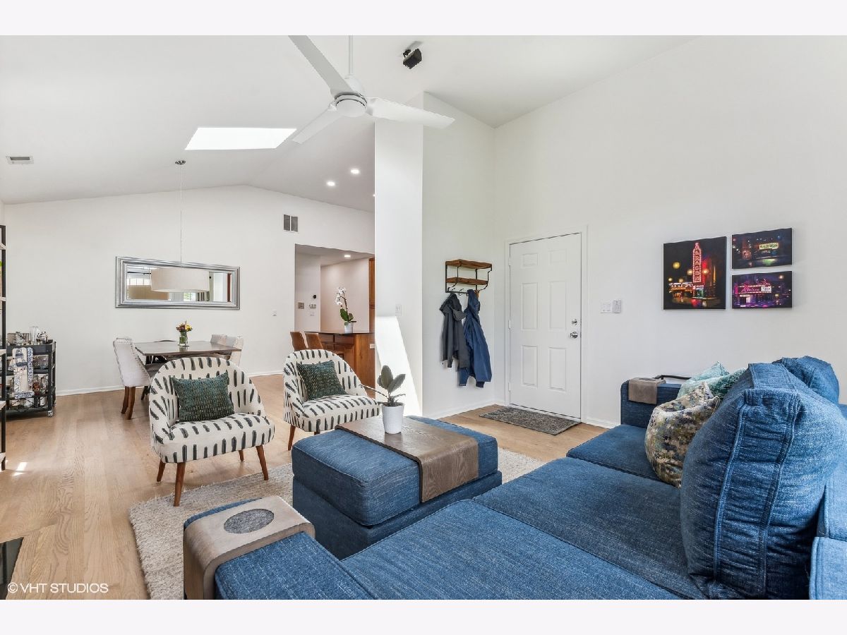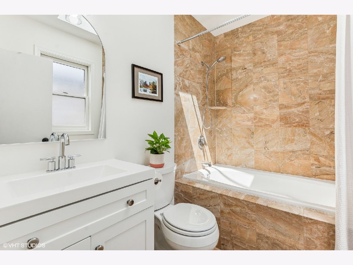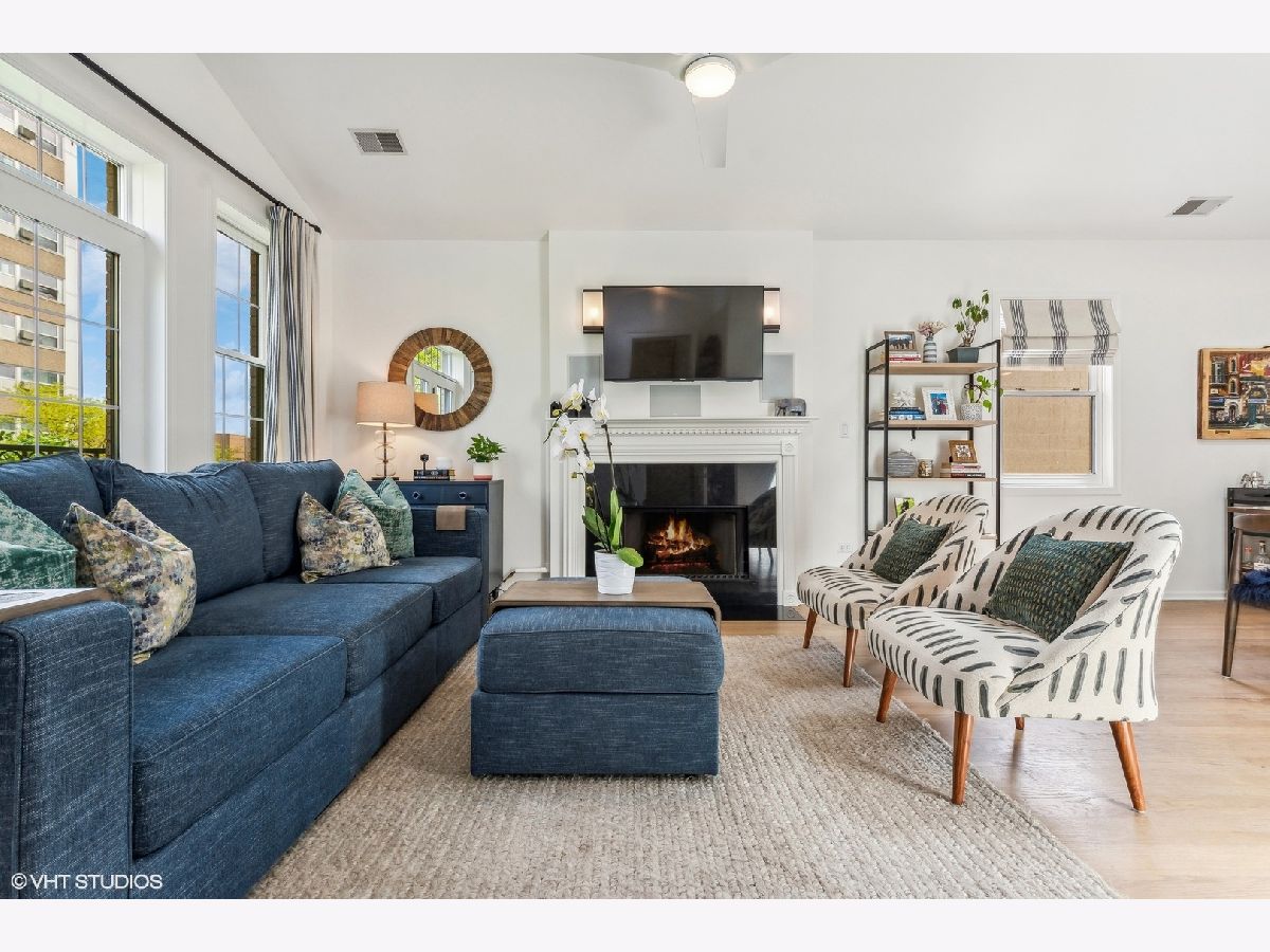 Incredible top-floor 2 bed/2 bath condo w/ 2 parking spots on a gorgeous tree-lined street in Uptown! This condo has been meticulously maintained by the current owners. The living/dining/kitchen feature an incredible 11.5 foot vaulted ceiling w/ a skylight that brings in so much natural light. The living room has a Juliette balcony, gas fireplace, & TV w/ surround sound stereo system. The dining room can easily fit 6-8 guests. The kitchen was updated in 2022 & features 42" cherry cabinets, granite counters, built-in pantry, LG appliance package, & subway tile backsplash. The hall bath was renovated in 2023, & features a walk-in shower & custom vanity. The guest bedroom is huge & can be used as a multi-purpose room. The luxurious primary suite features a vaulted ceiling, room for a king bed, two closets (one is a walk-in), an ensuite bath w/ a new vanity, mirror, & light, & a french door out to a large south-facing balcony! The rear deck has space for seating & a grill! The current owners refinished the existing oak hardwood floors & added hardwood in the primary suite. Custom window treatments, lighting, & closet systems are throughout. Brand new furnace, water heater, humidifier, & skylights in 2024! The unit was also freshly painted and LED recessed lights were installed. The AC was replaced in 2018--all mechanicals are serviced regularly. Two (2) parking spots included in price--1 garage & 1 exterior space. An enormous lower level storage closet is included. Live close to the the new Wilson & Lawrence Red Line (L) stations, Aragon Ballroom, Andersonville, Argyle Street's fabulous restaurants, & Chicago's Lake Front!