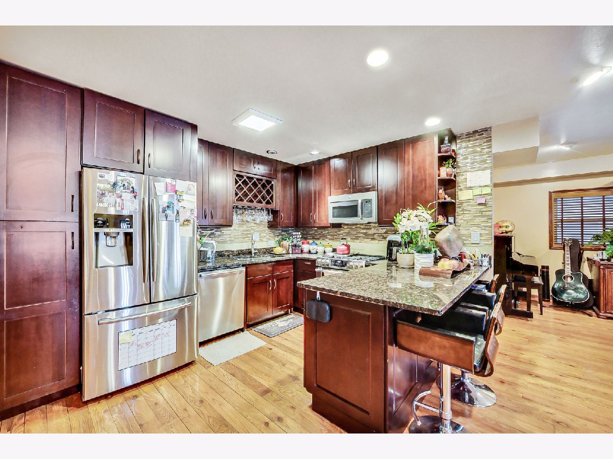Built in 1993, all brick legal 3 flat with 2 duplexed up units with huge rooftop decks! All 3 units have condo quality features such as high ceilings, combined kitchen/dining & living rooms, brick paver in the back alley leading to the 3 car garage, gated front & back, keyless entrances, Nest thermostats, granite counters, marble & hardwood floors, in-unit washers/dryers... The garden unit is approximately 3 feet below the ground level, featuring a wide entrance, 2 bedrooms/2 bathroom with the split bedroom floor plan. The kitchen equipped w/ all SS appliances, granite counter & counter height island that could be used as a dining table; it's beautifully updated and currently set up as a airbnb rental. The owner's unit boasts 2 bedrooms/1.1 bathrooms with steam shower & jacuzzi, plantation shutters, custom entertainment w/ hidden & motorized tv cabinet. Continue on to the second floor is the en suite bedroom w/ steam shower & jacuzzi, 2nd guest bedroom, the mechanical, washer/dryer are located on the three floor & double sliding glass door to a large rooftop deck! The 3rd unit has similar layouts compared to the owner's unit, but less upgrades. 3 HVAC units, 3 hot water heaters were replaced within 2 years, & many other improvements that were done throughout the years. 4 gas & 4 electric meters.