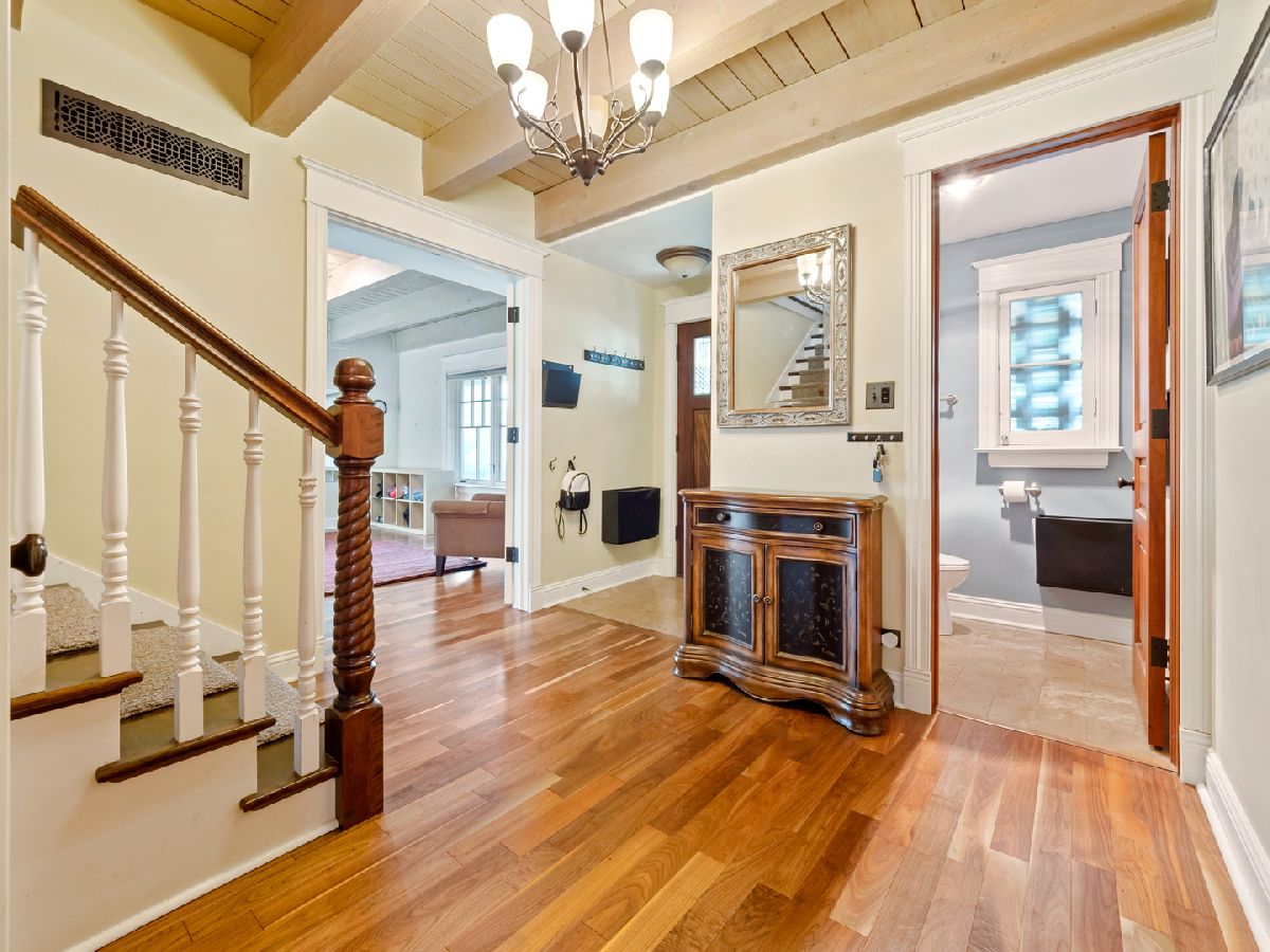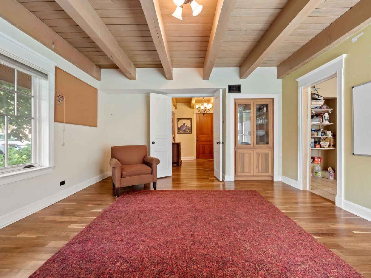 Welcome home to this Charming Cape Cod located in the heart of the Southwest Woods - walking distance to all three schools in Park Ridge! As you step through the front door, you'll be greeted by this home's beautiful features, including the wood-burning fireplaces in both the first floor family room and primary bedroom that you can enjoy on winter nights. The versatile first floor features several flex rooms including a bedroom, laundry/mudroom, office, and family room. The exposed/treated solid wood beams add a cozy feeling throughout. There is radiant heat on both floors plus 2nd zone central air/gas heat. Recent updates include the staircase, 2nd floor bedroom, 2nd floor windows, foyer doors, floors and bathroom, roof/siding, new 75-gallon water heater, AC, and furnace! The beautiful backyard includes a patio, yard, and shed for you to spend all of your summer nights.