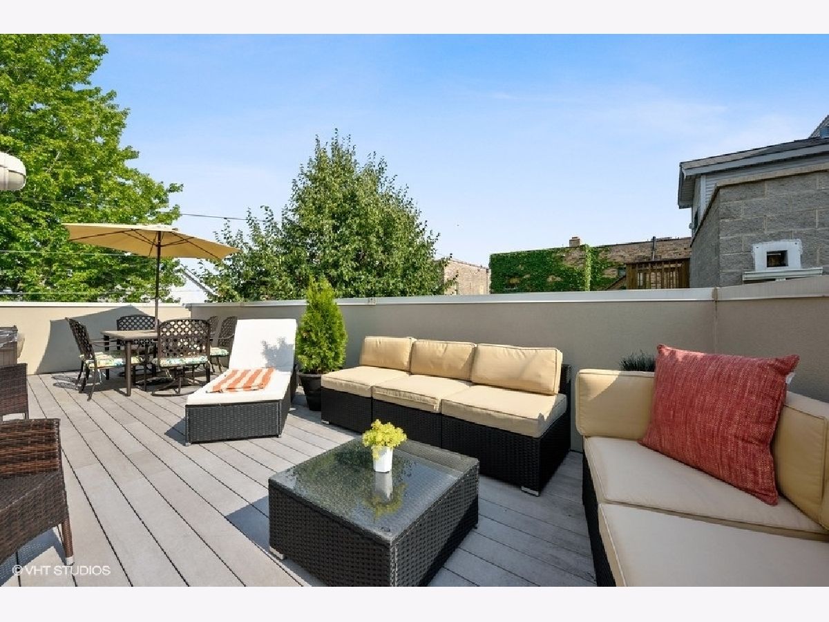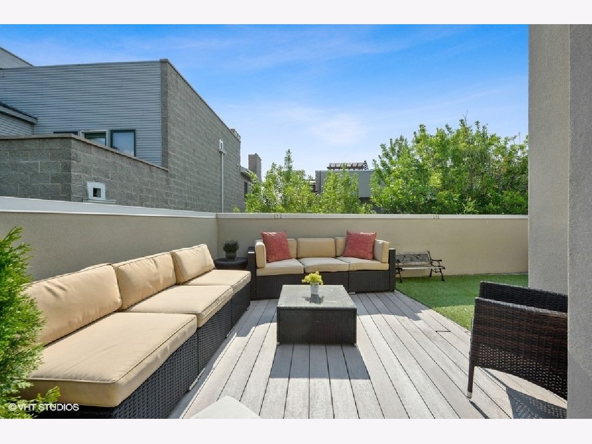 Spacious and extra wide townhome in gated courtyard complex in River West. This townhome includes three levels of living space and is located within walking distance to the blue line as well as easy access to 90/94 Expressway. The first floor is dedicated to living and dining with tall ceilings, open floorplan concept while both bedrooms and baths are located on the second level both with elfa closet systems. Bonus third floor family room with fireplace leads to a wrap around private trex rooftop deck. The extra wide living room features a ventless gas fireplace with wall of windows and the kitchen includes flat front cabinets, granite countertops, stainless steel appliances, and bar seating with plenty of space for a comfortable dining area. The Second and Third Floors have brand new carpeting and both bathrooms have brand new tile flooring and the unit has been freshly painted. One car garage parking included!