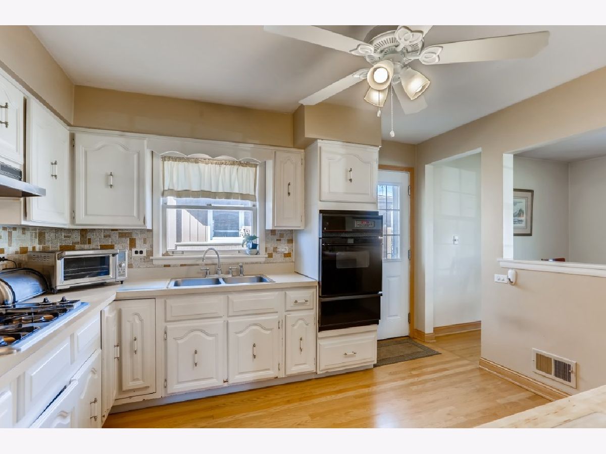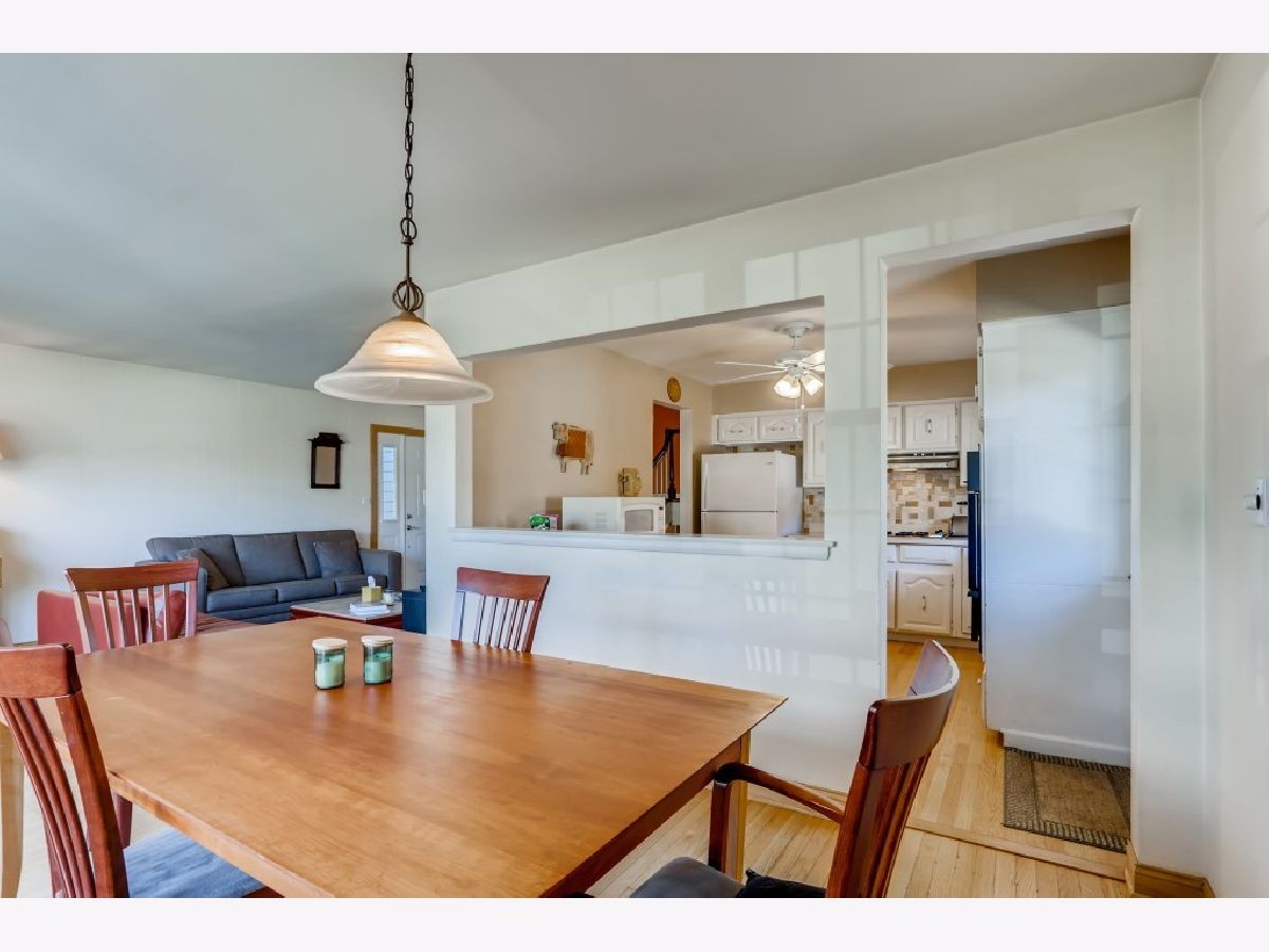 Solid 3 bedroom, 2 full bath split level in award winning school district tucked away on a private tree lined street in a great neighborhood with one-way flow from Oakton. Corner bus stop for both Carpenter and Emerson schools. Very short walk to train station, golf range, batting cages, ice rink, pool, park and dog run. Also near Des Plaines river bike trail. Many upgrades including both bathrooms newly remodeled, parks water back-up system, maintenance free Hardie board fiber cement siding, Pella windows and doors on main floor and Sears deluxe windows in lower level, newer A/C & upgraded extended life roof, hardwood floors. Plaster construction and slate basement floor. All appliances stay. Brick pavers outside with shady backyard for basketball, grilling and entertaining. Zero lot line driveway for extra space Price reduced! Property now offered for sale as is and shown by long time owner. Low taxes!