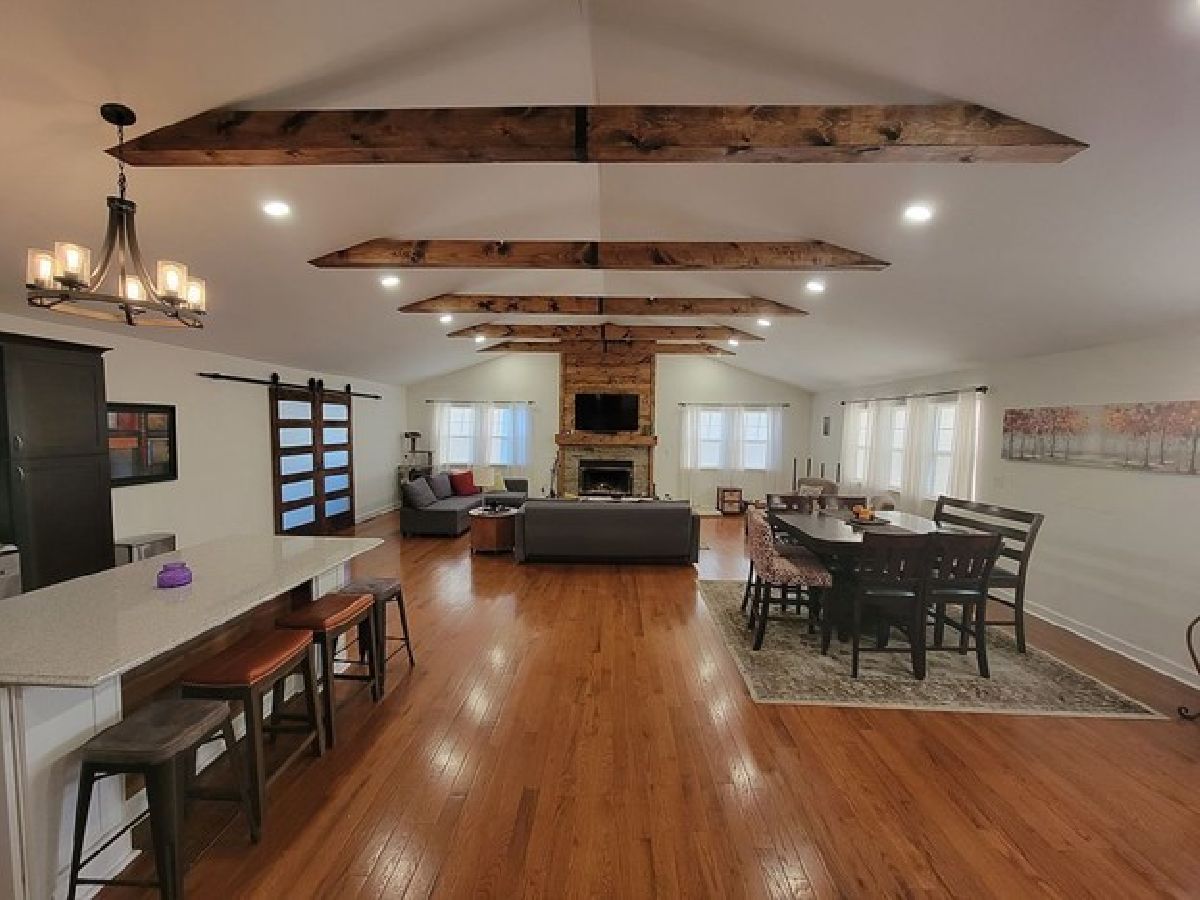 Contemporary Farmhouse Ranch Style Home on 1.39 acres - Completely renovated in 2018. Stylish great room with vaulted ceilings, hardwood floors and cool sliding barn doors. Main floor features wood burning fireplace in 2021, kitchen w/granite counters & stainless appliances, and French doors leading to huge family room addition. Extra spacious room sizes galore. The primary bedroom suite has jet tub and separate shower. Hardwood throughout the home. LL has large partially finished game/bonus room plus roughed in 3rd full bath. Home remodeled with hi-efficiency spray foam insulation, on-demand water heater, gas forced air, April Aire humidifier and central air. Walk in canning cellar. Lots of storage. Almost everything new in 2018 including mechanicals, roof, siding, windows. 2 car attached garage has overhead door to additional 2 car heated workshop. Family room leads to huge deck and above ground pool. Forreston schools. Special home!