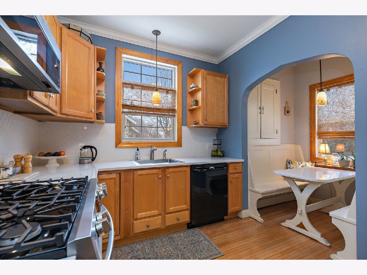 BEST and FINAL OFFER due by 7pm, Sunday, February 20th. Absolutely charming English cottage in the heart of the north end! You'll love the archways and the stunning moldings throughout...it only adds to the charm! Start outside with the amazing curb appeal! An old school brick paver walkway leads to this lovely home with it's distinctive cross-gables and steep pitched roof, characteristic of English cottages. The gorgeous, arched front door will welcome your guests in style with brick and iron details! Then, when you walk in, you'll immediately notice the gorgeous hardwood floors that were refinished in 2021! Note the woodwork and it's lovely details throughout as well...from the floors to the doors to the windows to the crown moldings! The Living Room is ready to greet your guests and it's wide open to the Dining Room....these are great spaces to entertain! Walk through the cafe door to the remodeled kitchen....refreshed again in 2021! Lovely maple cabinets give you TONS of storage! The stainless steel appliances are newer and the quartz counters are sturdy! And the amazing breakfast nook comes complete with the built-in quartz table and booth seats as well as storage above the table! There is a bedroom on the main floor (we're calling it the Master) with a large closet and a built linen closet outside it! Lastly, the main floor is rounded out by a full bath that was totally remodeled in 2019 with modern details that still fit in the old world style! UPSTAIRS: Upstairs are 2 more bedrooms and a half bath that they can share! The second bedroom has a sitting room as well! And don't miss out the additional attic storage behind the second bedroom closet! Another built-in linen closet and a laundry chute complete the upstairs! BASEMENT: The HUGE, unfinished basement only adds to the marvel of this home! It's wide open for TONS of storage! The high ceilings make it a great workout space! And laundry is a breeze in this wide open space! BACK YARD: But let's top this all off with an amazing back yard! Just behind the back door is a covered portico to shade you from the sun on hot days! A sturdy deck overlooks the pool that is ready for summer fun and the stone firepit is ready for gathering with family and friends! The perennial landscaping will be easy to take care of and the shed had all the room you need for your gardening tools! The 2 raised garden beds are ready for you to plant veggies this spring! COME QUICK since this charmer won't last long!