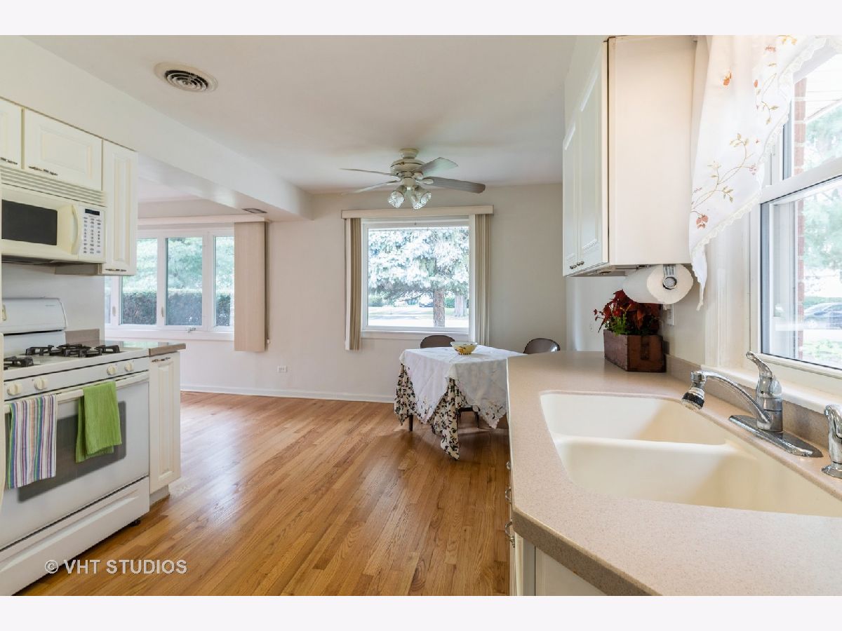 Immaculate, perfect, affordable mid-century ranch, great location. Original, iconic, classic glass block windows are intact, and stunning. Light just pours into this home. Walk to Wildwood Nature Center (a five acre wonder!), forest preserve trails...your suburban dream come true! Highly rated Park Ridge schools, plus you can walk to Dee Road Metra station. The floors have just been refinished, and are pristine. The luxury of a blank canvas, ready for you to make it your own..the perfect background to your mid-century modern collection. Efficient layout, plenty of kitchen cabinets. Pretty block, beautiful yard, side drive, two car garage. Dining area at the front corner, can be an extension of the kitchen, or use more formally when combined with the living room. The dining space measurement has been incorporated into the kitchen dimensions. Basement measures 24x19, plus a high crawl space for storage. Roof and gutters, 2012.