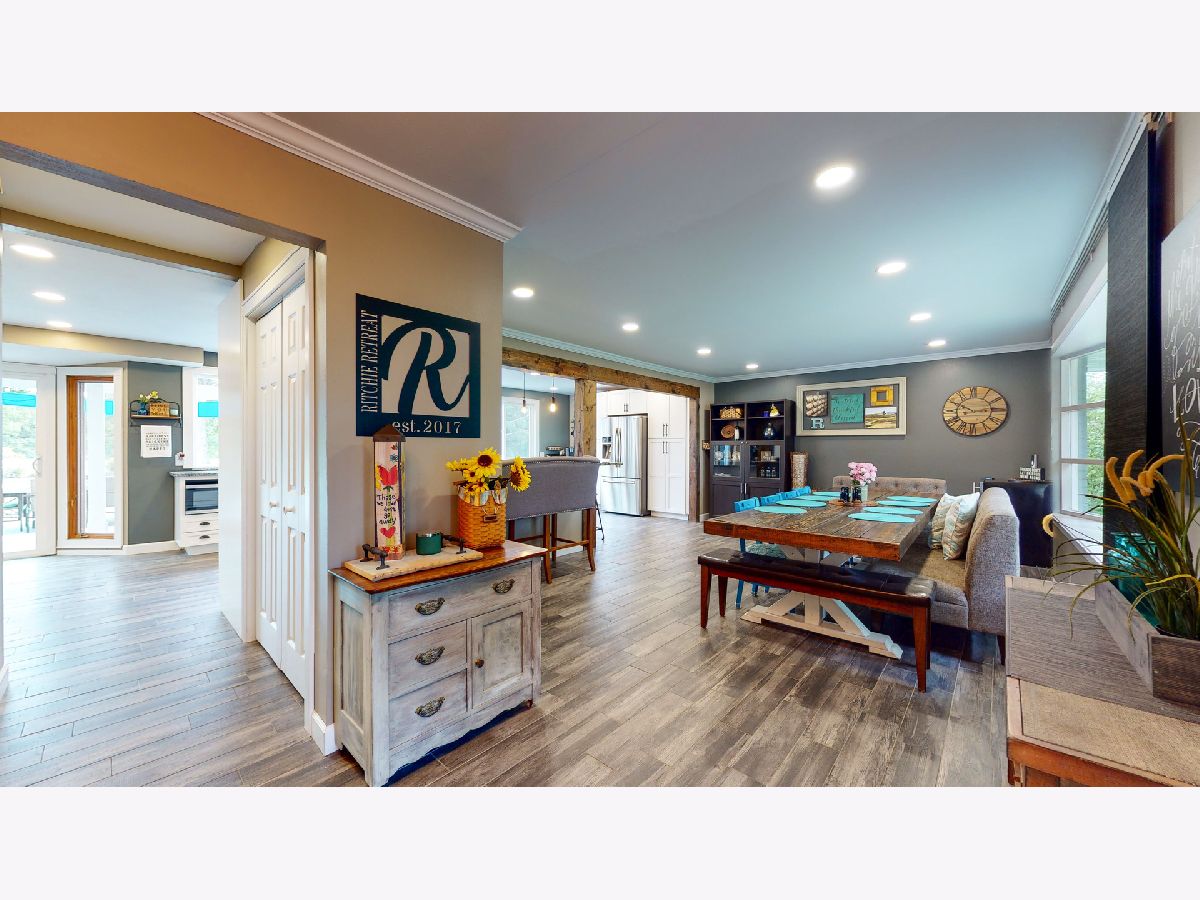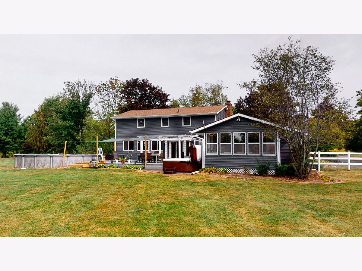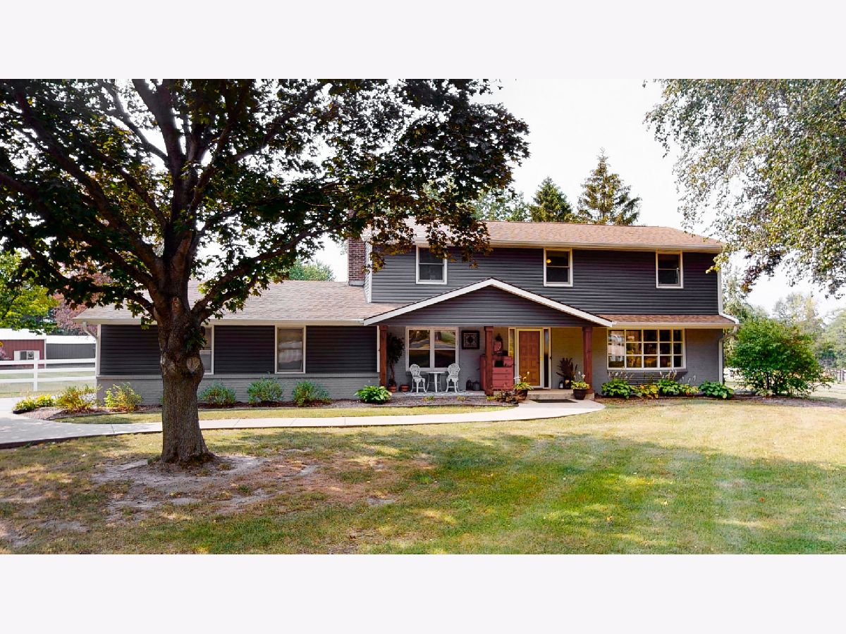 Nestled on a quiet cul-de-sac within minutes of city conveniences you will find this modern farmhouse gem! This 4 bed 2.5bath 2-story with over 3400 sq ft is perfectly situated on a sprawling 6.2 acre lot lined with mature trees with a true park-like feel. Completely renovated since 2017, this will not disappoint. Vinyl sided exterior and newly lighted soffits plus freshly painted brick entry welcomes you into the foyer and towards the open 15x18 gathering/dining space. The entire kitchen was given an overhaul beginning with opening up the floor plan, removing walls and adding support beams with reclaimed wood accent. Boasting enormous granite countertop plus 2 bar tops for extra seating, White soft-close cabinetry plus black hardware, Gas Range with and oven plus electric wall oven, custom light fixtures & LED recessed lighting, new vinyl slider, adding oversized vinyl windows overlooking backyard and about 1000sf of graphite ceramic wood-look tile flooring. Main floor laundry suite was just added plus relocation of the powder room to the opposite wall for more space plus better kitchen/living flow. Plenty of entertaining space available in the 19x25 family room complete with cathedral ceiling feature and pallet wall focal point. Continue past this space onto the 15x16 3-season room and out to the massive 27x36 deck with pergola! A 1 yr new 27' heated (200,000 BTU) above ground pool and 6 person hot tub are ready for you! All bedrooms on the upper level have been painted, ceiling fans installed plus white trim and doors added. Both the owner's and hall bath have been renewed plus sliding barn doors installed. Separate gravel drive off of the paved drive behind white vinyl gate leads to 2 barns-25x20 & 20x40, one with a chicken coop and one horse stall. The grounds are set for 2 pastures and could be horse-ready very easily. There is a .25mi bridle path around the pasture and 3mi bridle path around the neighborhood.