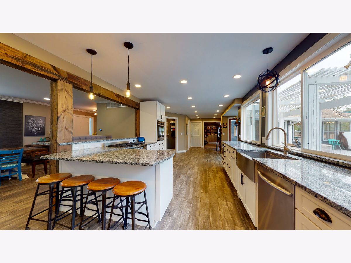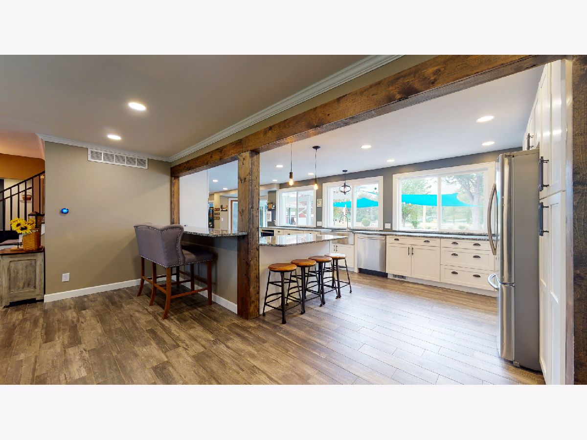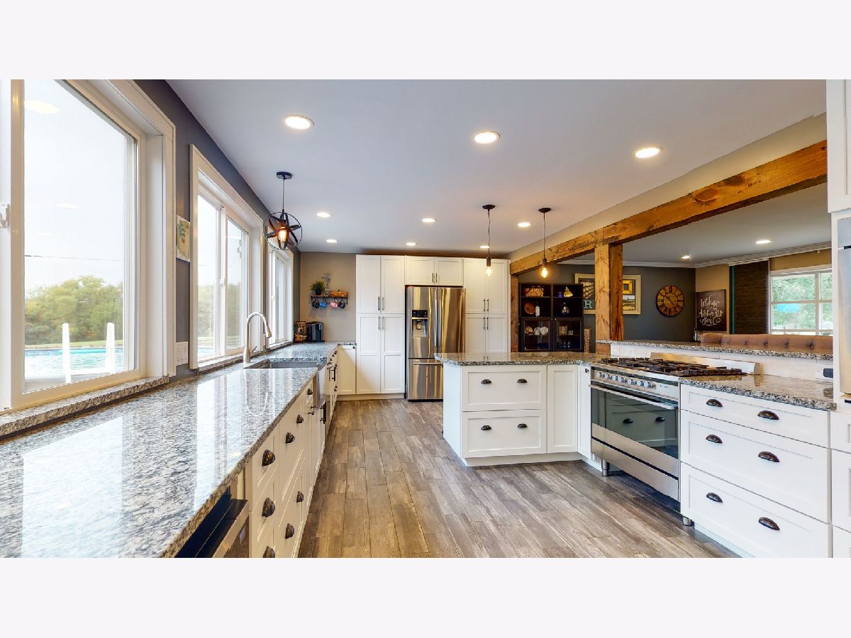 Nestled on a quiet cul-de-sac within minutes of city conveniences you will find this modern farmhouse gem! This 4 bed 2.5bath 2-story with over 3400 sq ft is perfectly situated on a sprawling 6.2 acre lot lined with mature trees with a true park-like feel. Completely renovated since 2017, this will not disappoint. Vinyl sided exterior and newly lighted soffits plus freshly painted brick entry welcomes you into the foyer and towards the open 15x18 gathering/dining space. The entire kitchen was given an overhaul beginning with opening up the floor plan, removing walls and adding support beams with reclaimed wood accent. Boasting enormous granite countertop plus 2 bar tops for extra seating, White soft-close cabinetry plus black hardware, Gas Range with and oven plus electric wall oven, custom light fixtures & LED recessed lighting, new vinyl slider, adding oversized vinyl windows overlooking backyard and about 1000sf of graphite ceramic wood-look tile flooring. Main floor laundry suite was just added plus relocation of the powder room to the opposite wall for more space plus better kitchen/living flow. Plenty of entertaining space available in the 19x25 family room complete with cathedral ceiling feature and pallet wall focal point. Continue past this space onto the 15x16 3-season room and out to the massive 27x36 deck with pergola! A 1 yr new 27' heated (200,000 BTU) above ground pool and 6 person hot tub are ready for you! All bedrooms on the upper level have been painted, ceiling fans installed plus white trim and doors added. Both the owner's and hall bath have been renewed plus sliding barn doors installed. Separate gravel drive off of the paved drive behind white vinyl gate leads to 2 barns-25x20 & 20x40, one with a chicken coop and one horse stall. The grounds are set for 2 pastures and could be horse-ready very easily. There is a .25mi bridle path around the pasture and 3mi bridle path around the neighborhood.