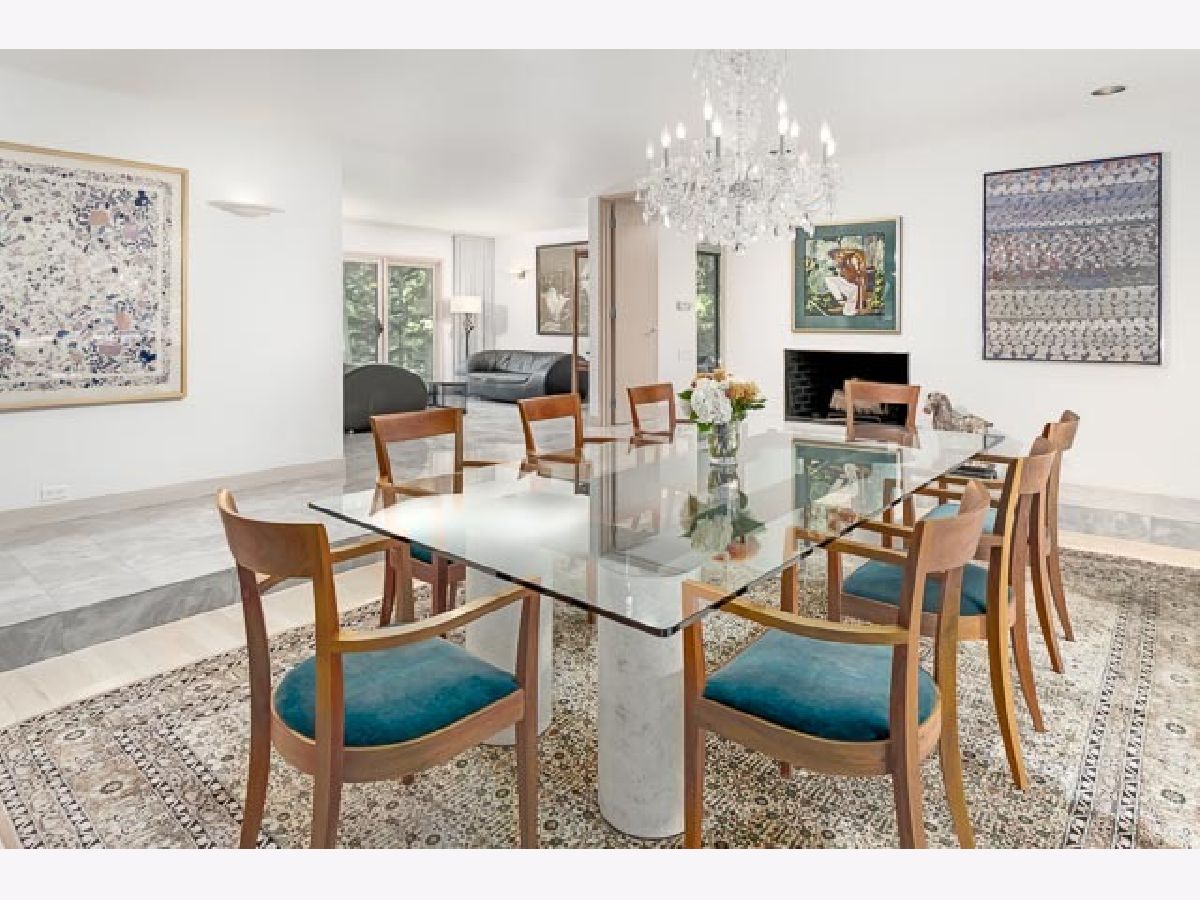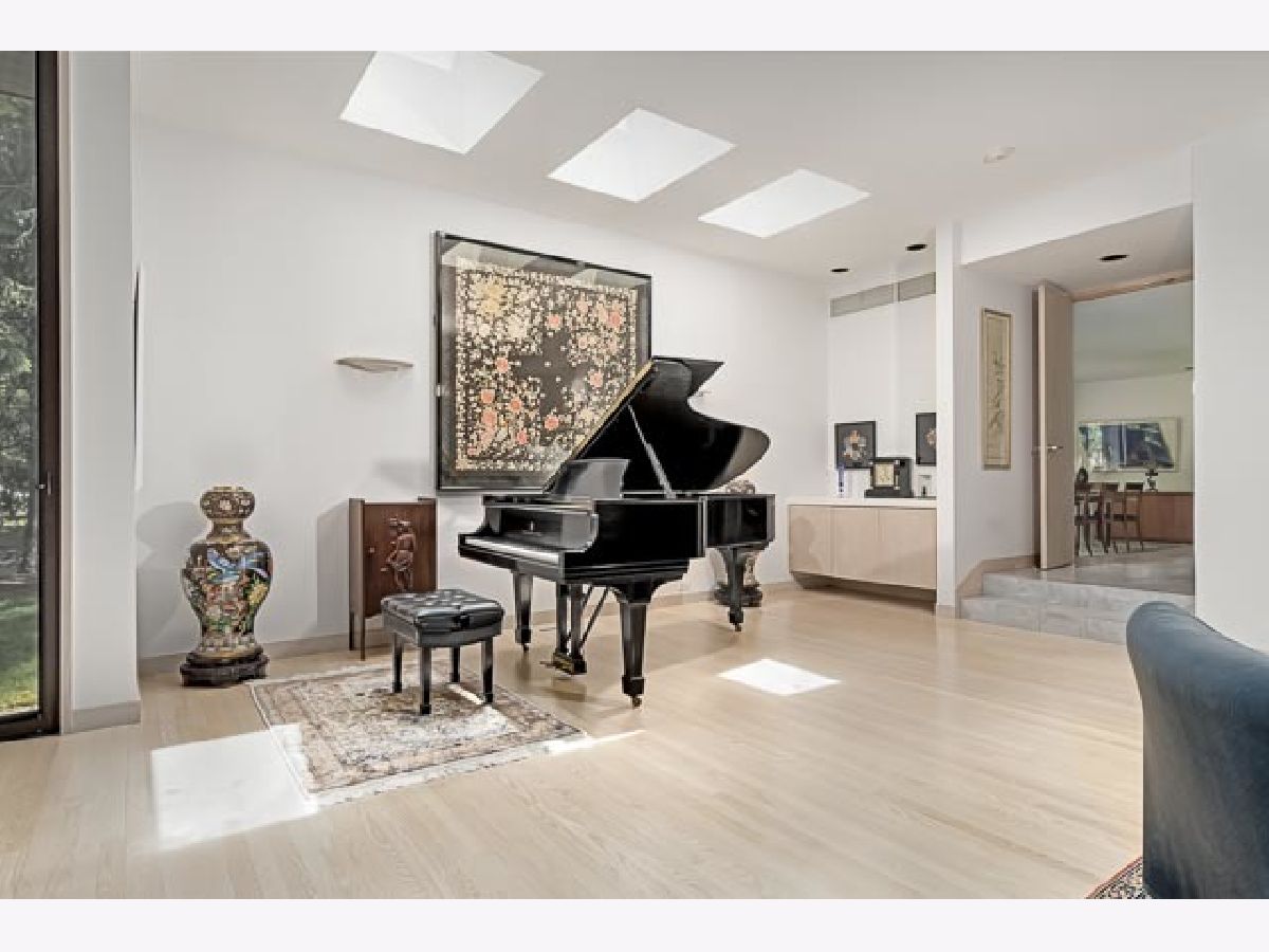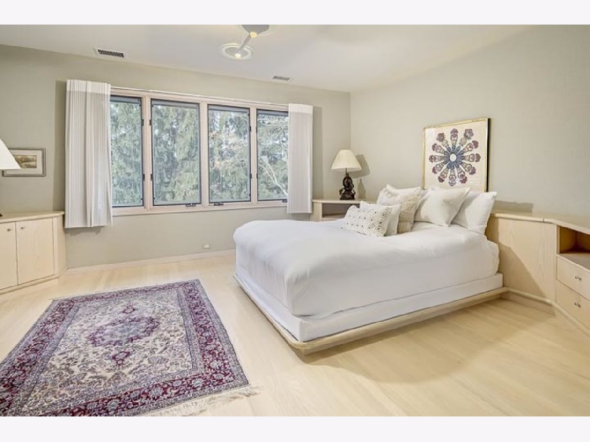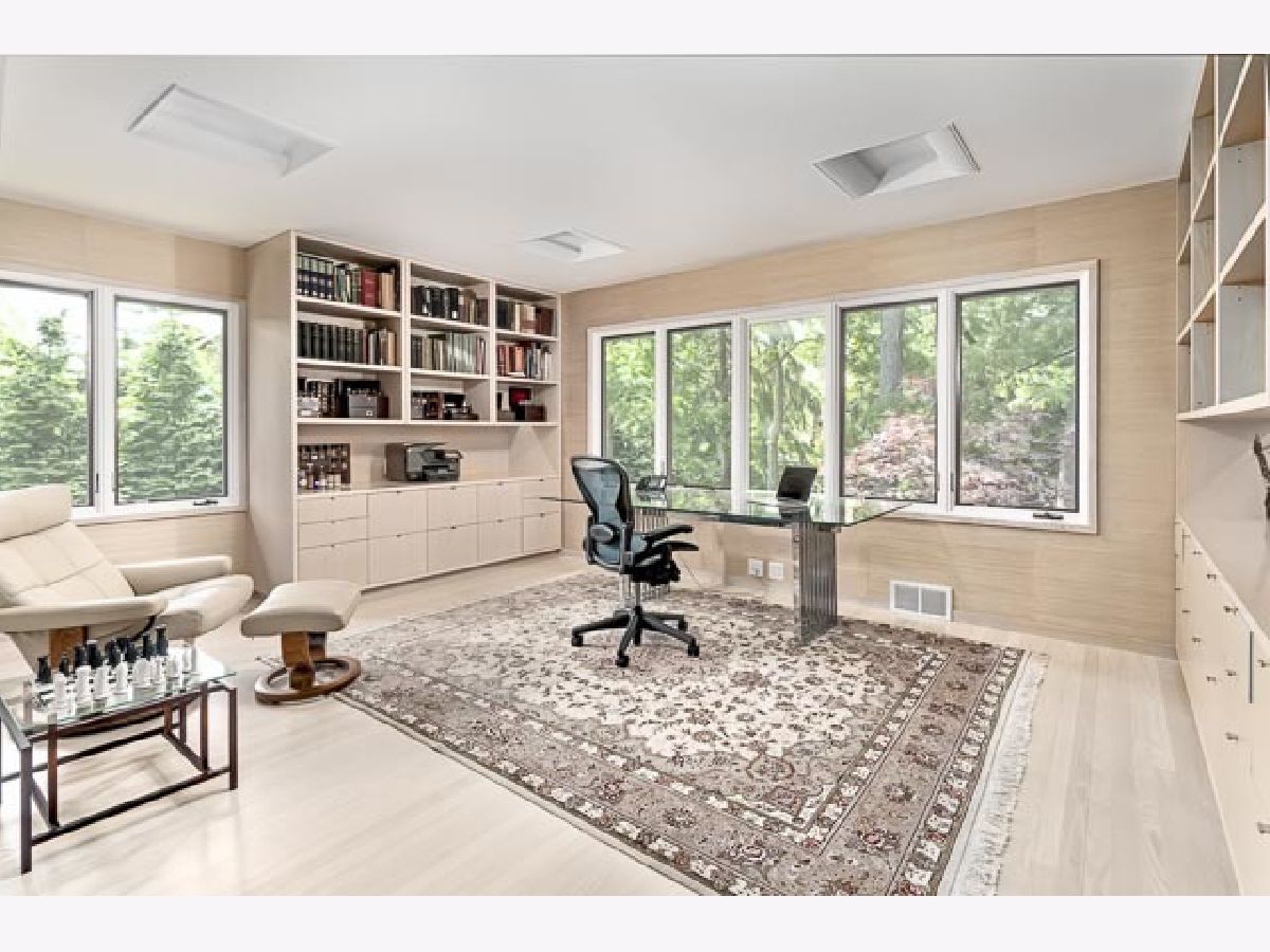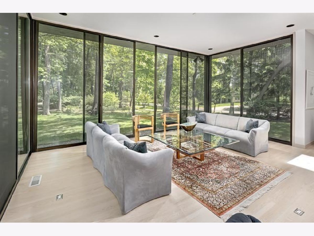 Find yourself surrounded by nature on a private road steps to Lake Michigan. Natural light abounds with floor to ceiling windows throughout the spacious and open main level. Masterfully reimagined by renowned architect, Tony Grunsfeld, gives the home a sleek mid century modern feel. Well-appointed kitchen features an all-window enclosed breakfast room surrounded by lush landscaping. Step into a family room and feel like you are overlooking a forest with soaring ceilings and sliding glass doors throughout. Ample opportunity for work from home office spaces on multiple floors. Second floor boasts three bedrooms and library as well as two newer bathrooms. Retreat to the primary suite and enjoy a relaxing steam shower in the newly renovated bath. Spacious sitting room adjoins the bedroom for the ultimate private space. A generous and thoughtful his/her closet completes the master level. Lower level provides en suite bedroom ideal for in-laws or aupair. The perfect blend of midcentury modern, luxurious European and Scandinavian designs brings this home to the next level of luxury.