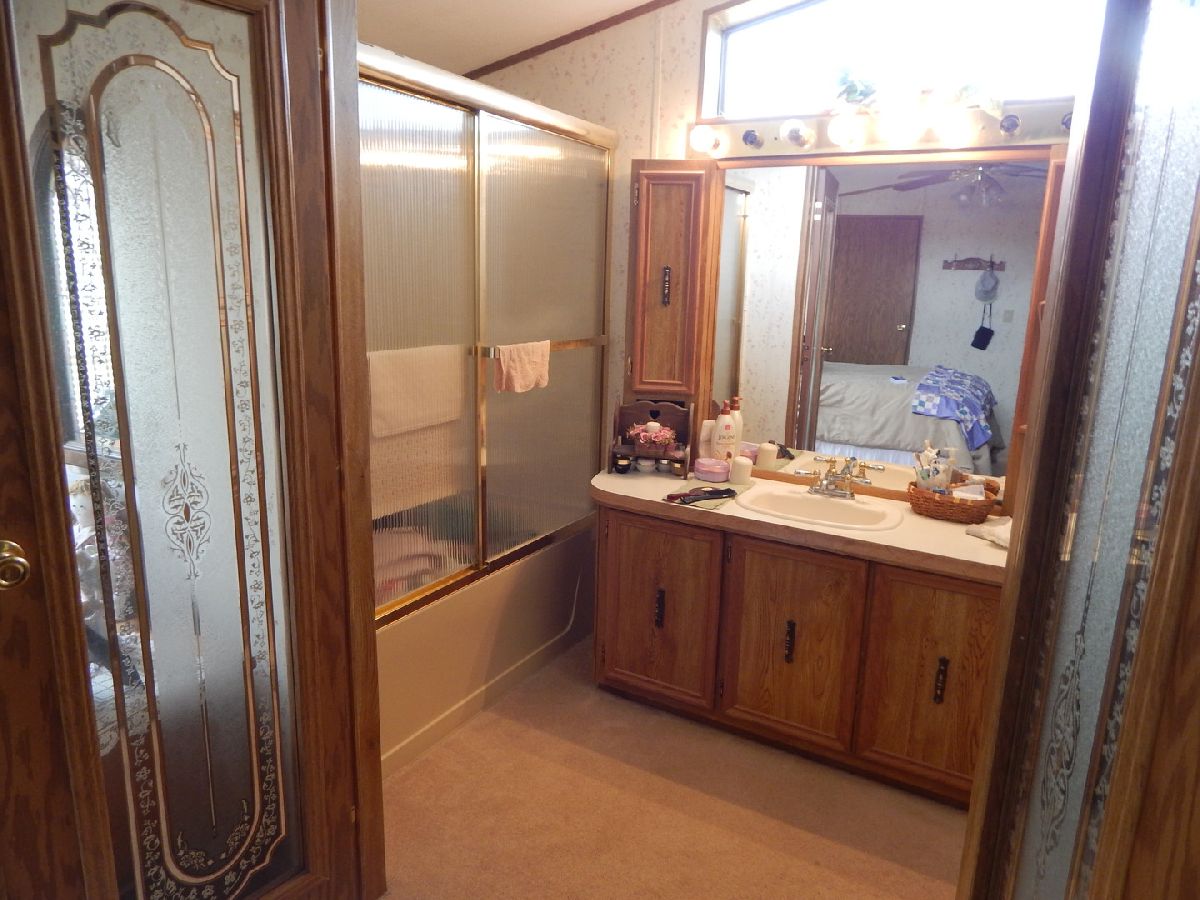 2 bedroom mobile home with 2 full baths! Island kitchen with built-in closet & pantry and eating area. Spacious living room features a corner gas fireplace. Master has it's own spacious full bath and walk-in closet. Convenient laundry nook with washer and dryer. Expansive enclosed porch/patio provides 3-Season extra living space, shed, and carport. All appliances stay!