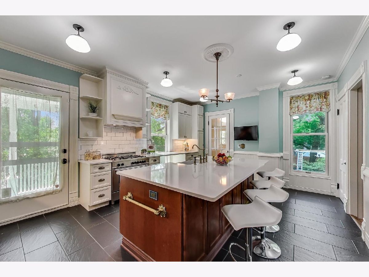 Situated along the historic Ridge Historic District in Evanston, this gorgeous Victorian home is the perfect mix of vintage charm and modern day conveniences. Every inch is oozing with original details and character including hardwood floors, light fixtures, hardware and beautiful wrap around porches. This home is large with many flexible spaces to accommodate working from home, e-learning and extended family. The first floor features a grand foyer with a beautiful hand carved staircase, large family room/living room, separate dining room and the new kitchen. The kitchen was gutted in 2019 and features high-end appliances, oversized island, heated floors and storage galore. 4 bdrms on the second floor with large master suite and dressing room. The expansive third floor has a full bathroom and is plumbed should you want to add a kitchenette, it's the perfect space to work from home or set-up as an apartment! The basement is finished, has heated floors, nice light and is flexible space for playroom, office, studio etc. The home is in great condition with opportunities to customize further should the next owner desire. Extra large lot, gorgeous landscaping, brand new roof and fence. 2 car detached garage, walk to the metra, CTA and all downtown Evanston has to offer!