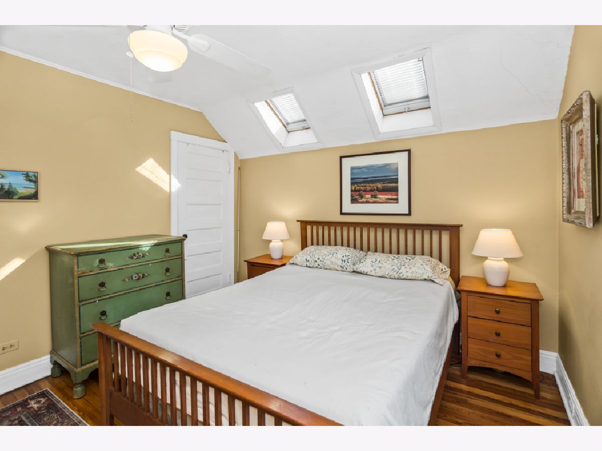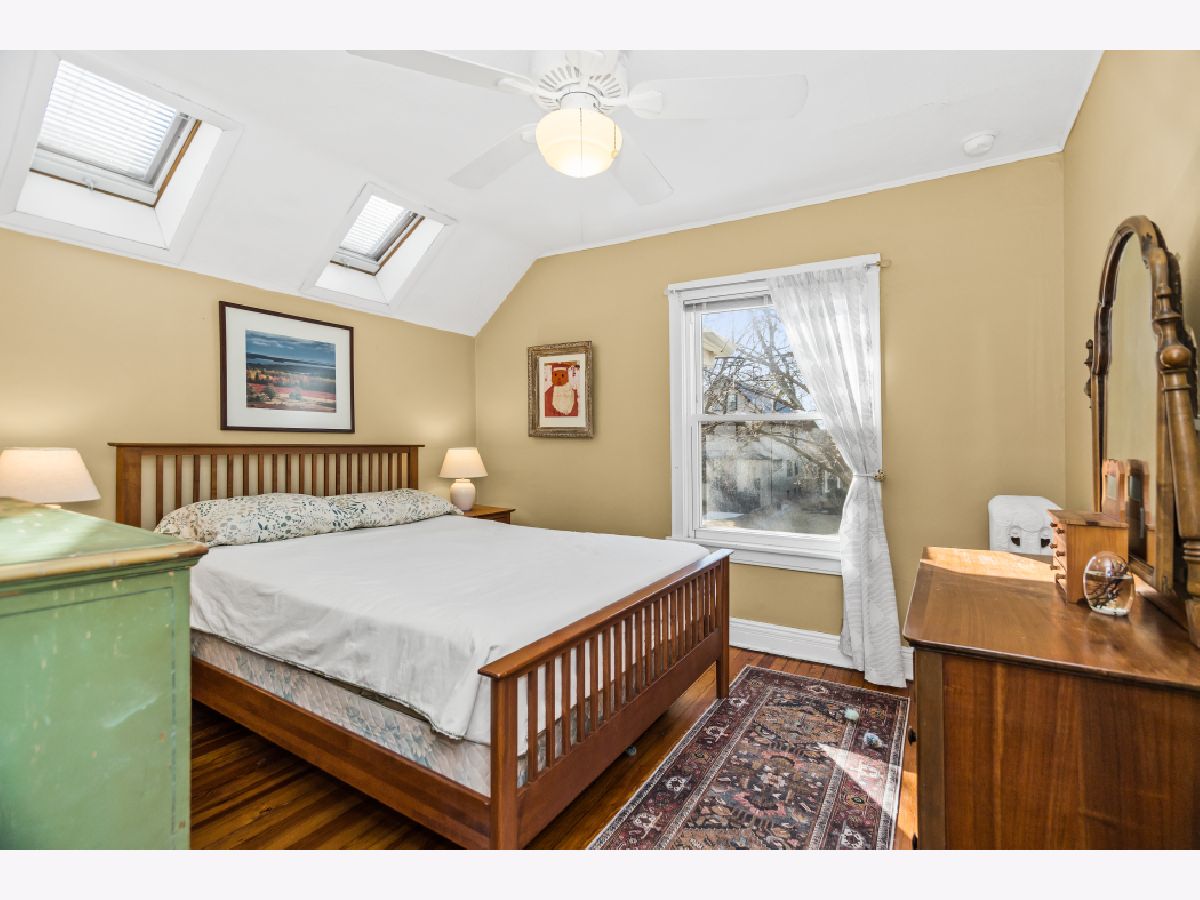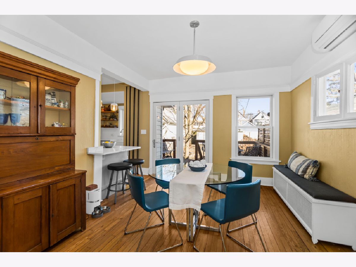 Welcome to this classic farmhouse in the heart of Evanston, within the sought-after Washington Elementary School district. A charming enclosed screened porch invites you inside, where the foyer showcases the original staircase and a spacious coat closet. The sun-filled living room features a beautiful bay window, a gas fireplace, and original built-in shelving, creating a warm and inviting gathering space. It flows seamlessly into the dining room, where French doors lead to a fantastic deck and expansive backyard-perfect for entertaining. The beautifully updated kitchen blends style and function with high-end cabinetry, quartz countertops, exposed brick, a breakfast bar, and stainless steel appliances. A convenient powder room completes the main level. Upstairs, the primary bedroom is bathed in natural light from skylights, enhancing its welcoming atmosphere. Three additional bedrooms and a full hall bath complete this level. The lower level expands the living space with a large family room, an office, and a laundry room with ample storage. Additional updates include a tear-off roof and siding (2020), a mini-split A/C system, upgraded electrical, and a 2.5-car garage (2013). Situated on an in-demand area, this home is conveniently located near Main Street Metra, the CTA Purple Line, Trader Joe's, Robert Crown Community Center and Library, and some of Evanston's most popular restaurants, shops, cafes, and Lee Street Beach. Offering the perfect blend of character, convenience and modern living.