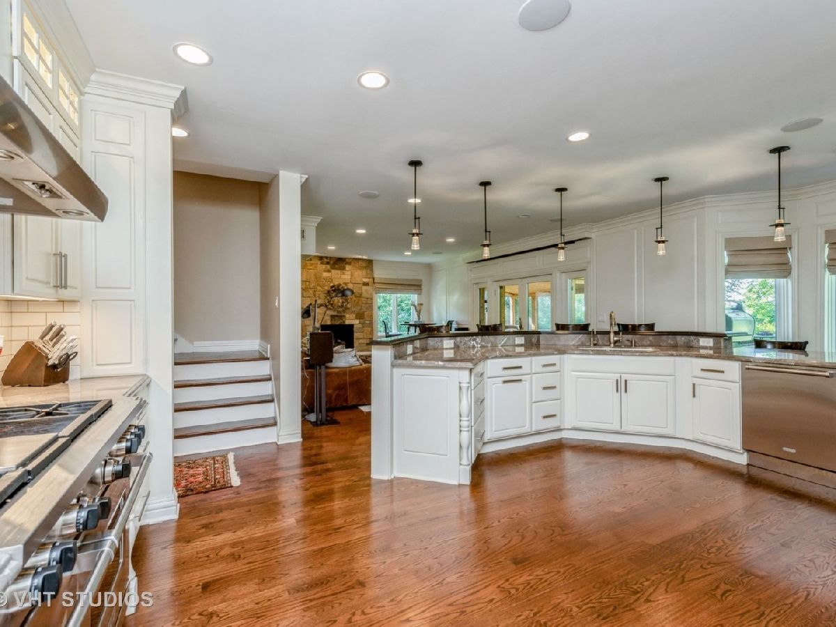 This is the Bull Valley home you have been searching for! Upon entering this pristine home, one can automatically sense the level of expertise and care that has been taken in building and maintaining this house. The stunning chandelier gracing the entryway is motorized and can be lowered for cleaning purposes. The kitchen is breathtaking and will please the most discerning gourmand. Custom built mahogany and marble countertops and matching stools grace the large island and high~end cabinetry provides extensive space for storage. The appliances are spectacular and boast all the top brands of the industry ~ Wolf stove, wine cooler, microwave, warming drawer; Sub-Zero freezer/refrigerator and refrigerator; Miele built-in coffee maker; and Cove dishwasher. The kitchen and the adjoining family room is where friends and family will gather to celebrate events and reconnect with each other. There is a large electric projection screen, a gas fireplace, and an adjacent cedar screened porch affording stunning views of the spacious backyard with a natural gas fire pit table and a natural gas Weber grill. Completing the first level is a bedroom with a walk~in closet and an ensuite bath with heated floors, Kohler fixtures, and a full body shower with Grohe controls, the perfect in-law arrangement or perhaps for domestic personnel. The Breakfast Bar accompanies the kitchen area and features custom woodworking, a food pantry, Bosch dishwasher, Thermador warming drawer, under cabinet refrigerator, a smart lighting system, and a custom mirror/TV frame (a TV behind the mirror). The large office space offers relaxing views of the wooded area and certainly allows for one to complete tasks in a tranquil atmosphere. An additional Powder Room with Carrera marble tiles and Kohler fixtures is conveniently located on this floor as well. Upstairs there are three bedrooms plus a well~appointed Primary Suite with a luxurious bath with heated floors, Kohler fixtures/toilet and bidet, and dual body showers with Grohe controls. Newly installed hardwood floors and a walk~in closet complete this personal oasis in which one can relax at the end of a busy day. An easily accessible third floor provides additional storage and can be utilized as a playroom or den. The basement is awaiting your ideas for completion and is plumbed for another bathroom, a roughed out fireplace and thermally heated floors throughout. The garage floor, sidewalk and driveway also have the potential to be hot water heated but presently are not connected, no worries removing snow and ice during the Winter months! Beautifully landscaped and planted, the grounds are tended by an in ground sprinkling system installed by Waterworks. This is a home one must tour and experience to fully realize all the potential for gracious living today as well as an investment for the future. Make an appointment to see; you won't be disappointed.