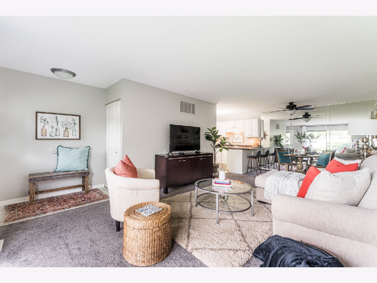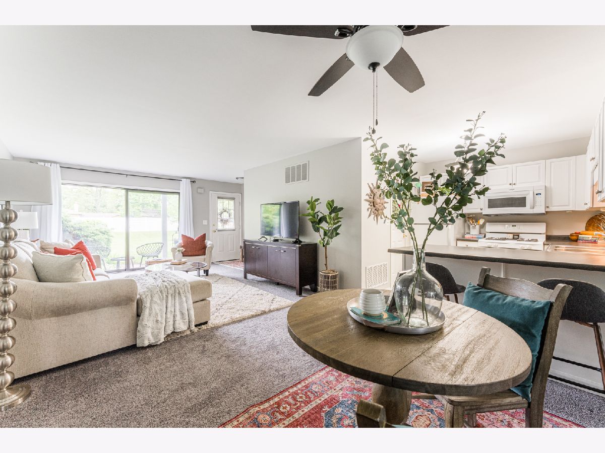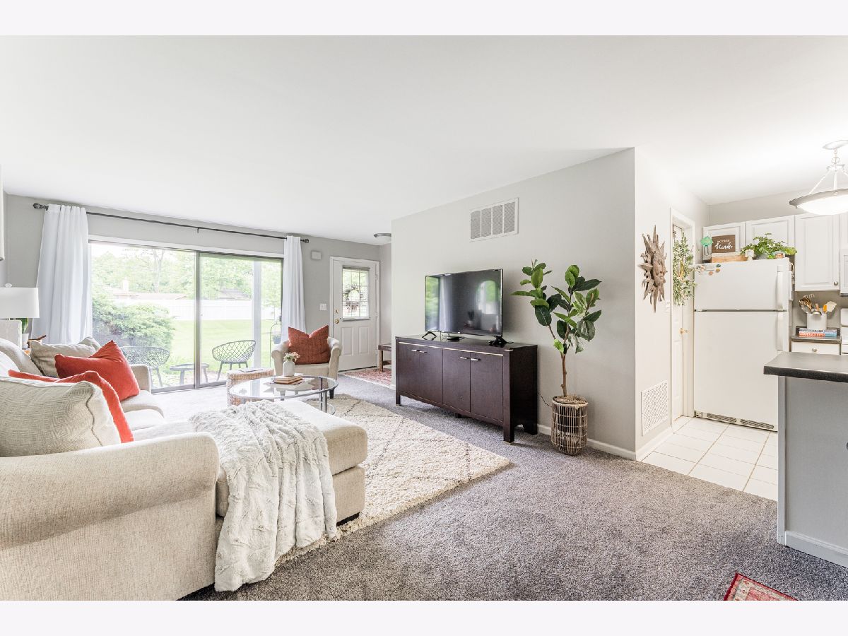 This spacious end unit offers plenty of cabinet space, closet space and a laundry room off the attached garage. It has new carpet, new HVAC (2019) and has been freshly painted throughout, making it move-in ready. The large bedroom has two closets and the large bathroom not only has an extra long vanity but an additional closet. This home also has a private patio overlooking open green space to enjoy during the beautiful weather. Most importantly, low taxes and low HOA make this place a must see. Leave your lawnmower and shovel behind because you will not be needing them!! Walking distance to McCollum Park! Close to shopping, restaurants and major highways.
