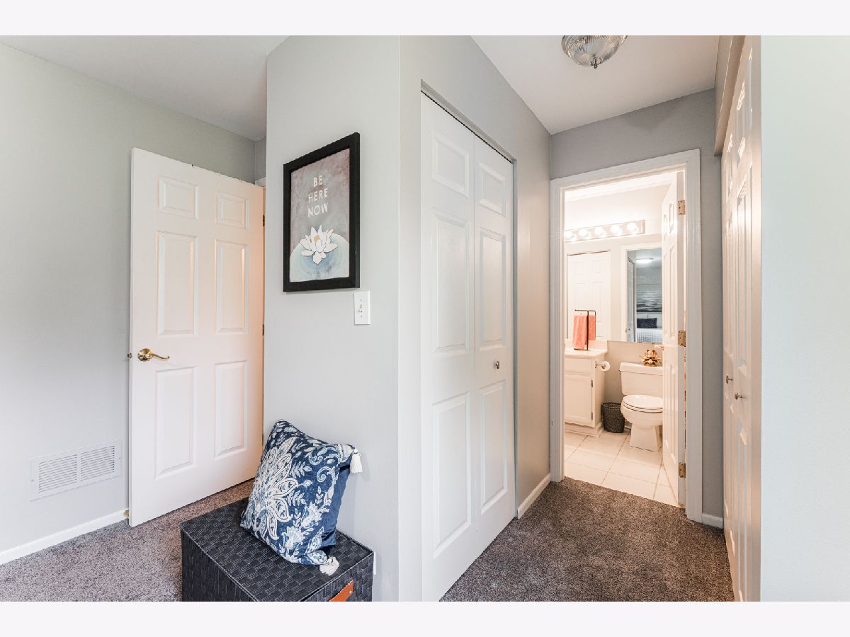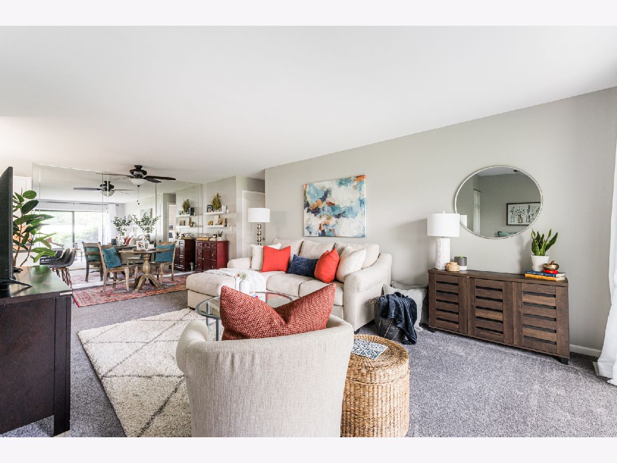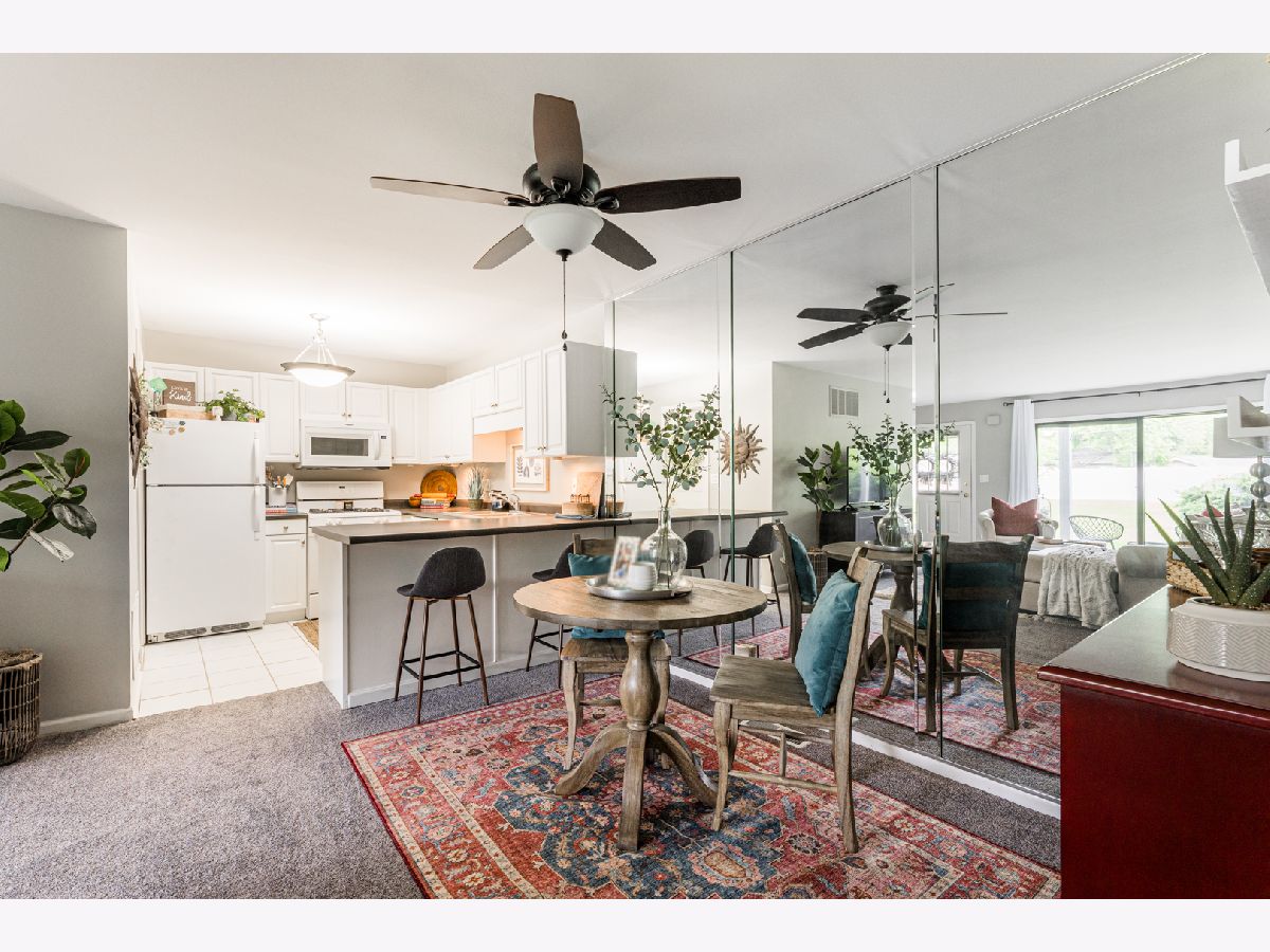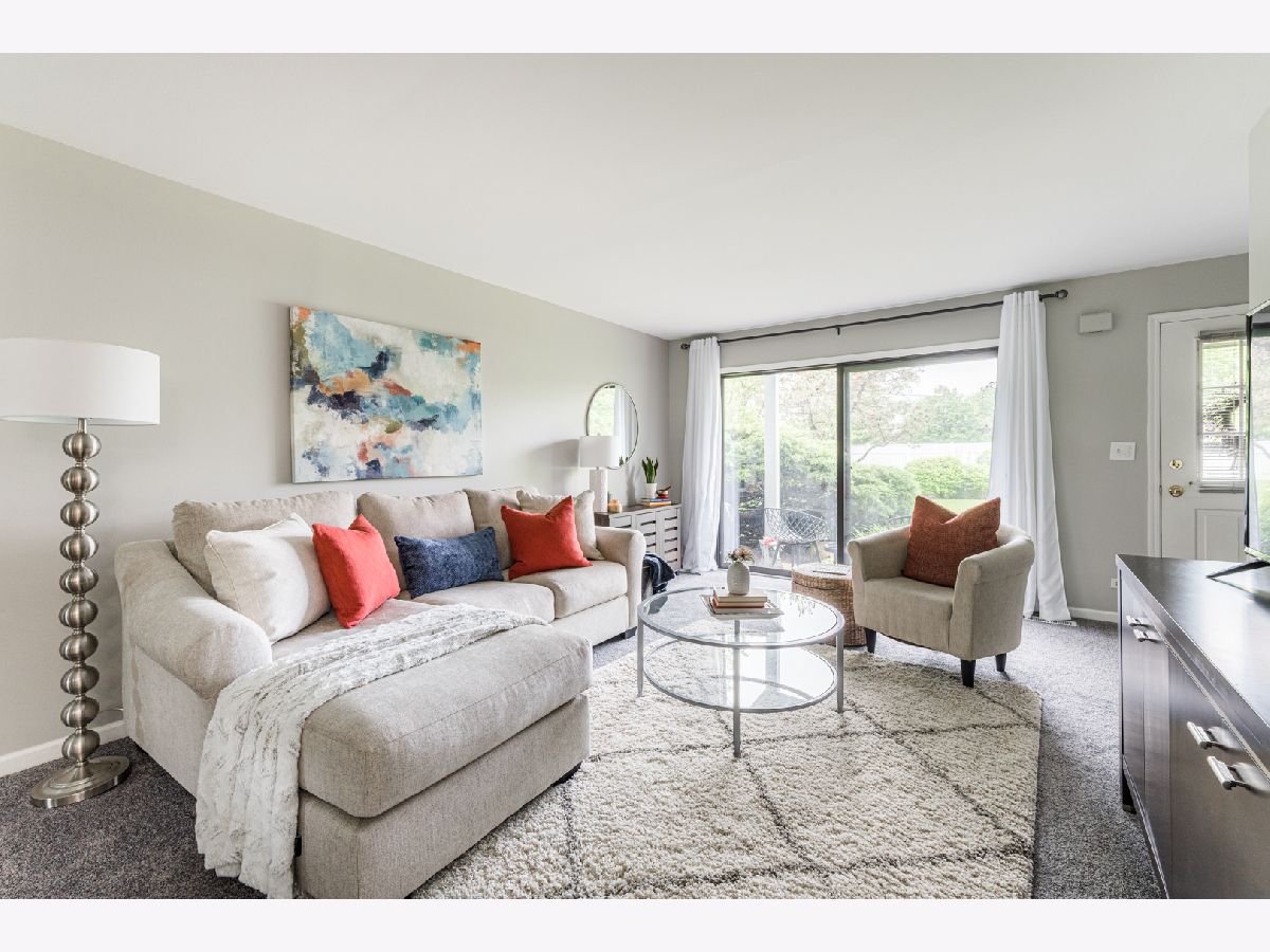 This spacious end unit offers plenty of cabinet space, closet space and a laundry room off the attached garage. It has new carpet, new HVAC (2019) and has been freshly painted throughout, making it move-in ready. The large bedroom has two closets and the large bathroom not only has an extra long vanity but an additional closet. This home also has a private patio overlooking open green space to enjoy during the beautiful weather. Most importantly, low taxes and low HOA make this place a must see. Leave your lawnmower and shovel behind because you will not be needing them!! Walking distance to McCollum Park! Close to shopping, restaurants and major highways.