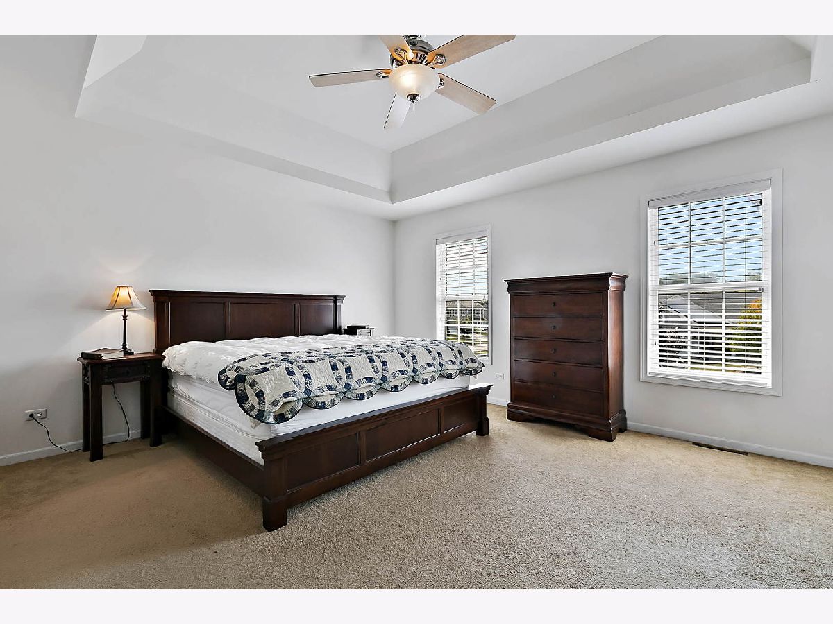 DELIGHT IN COMING HOME TO THIS CUSTOM BEAUTY in the heart of Churchill Farms! Bright and sunny, this home has been customized with miles of PREMIUM ALLERGY-FREE nylon carpet and allergy-free carpet pad. COMPARE your SAVINGS to NEW CONSTRUCTION with all the upgrades this home has to offer including 18 month new Furnace with humidifier and A/C, fireplace, paver patio, privacy fenced yard, bay windows, french door to back yard. Added personality and charm with two tray ceilings, and a two story foyer basking in sunlight. The Bonus room, tandem to Bedroom 2, is perfect for very quiet, private office. Primary bedroom has en suite bath and huge walk-in / walk-through closet. Even the garage is finished, with a convenient exterior door to the back yard. Enjoy the open countryside of Kendall County with scenic bike trails, farm stands, and quaint small towns. Please note that showing hours are limited, shoes MUST be removed, and please refrain from wearing perfumes or perfumed lotion when touring this home to protect highly allergic occupant.