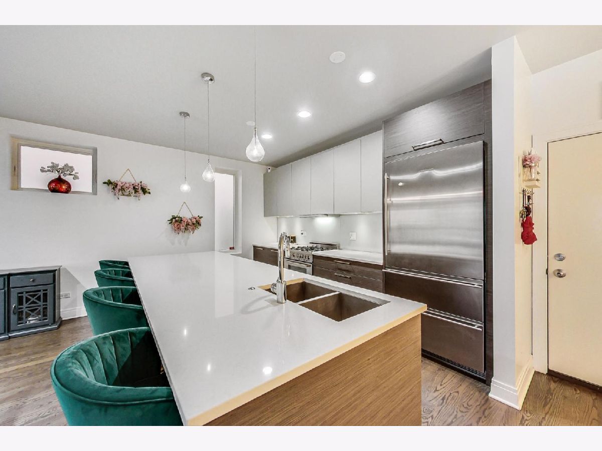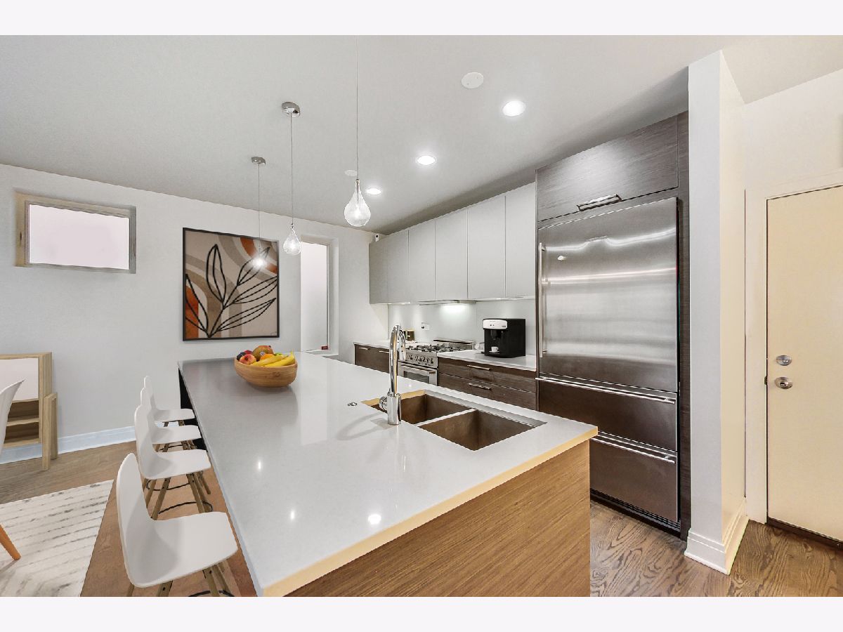 Spacious and sun-filled 3 Bedroom/2.1 Bathroom DUPLEX-DOWN condo in the heart of Lakeview, just one block from the Sheffield Corridor, with GARAGE PARKING, PRIVATE ENTRANCE, and 2 PRIVATE OUTDOOR SPACES! This modern, newer construction home offers everything you are looking for. The main level offers a massive open-concept living/dining space with a picture window overlooking the tree-lined street and beautiful hardwood floors. The kitchen boasts high-end stainless steel appliances, quartz countertops, a large island with breakfast bar, beautiful Italian cabinetry, a powder room with new lighting, and a walk-out balcony, perfect for grilling and entertaining. All three bedrooms are conveniently located on the lower level as well as 2 full baths. The generously sized primary suite has a large walk-in closet with custom shelving and a fabulous ensuite with dual vanities, an oversized soaking tub, and a separate glass steam shower. Enjoy your summers on the large walk-out brick paver patio - Also great for pets! Additional home features include additional storage space underneath stairs, stackable in-unit washer/dryer, LED lighting on the main level and all bedrooms, Definitive surround sound speakers, a security system, and intercom. 1 garage space is included. This home is ideally located on a tree-lined street in one of the best areas of East Lakeview with close proximity to CTA red/brown/purple lines, multiple bus routes, Jonquil Park, Wiggly Field, Lake Shore Drive, Belmont Harbor, Whole Foods, Jewel Osco, and all of the amazing shops, restaurants and recreation activities East Lakeview has to offer.