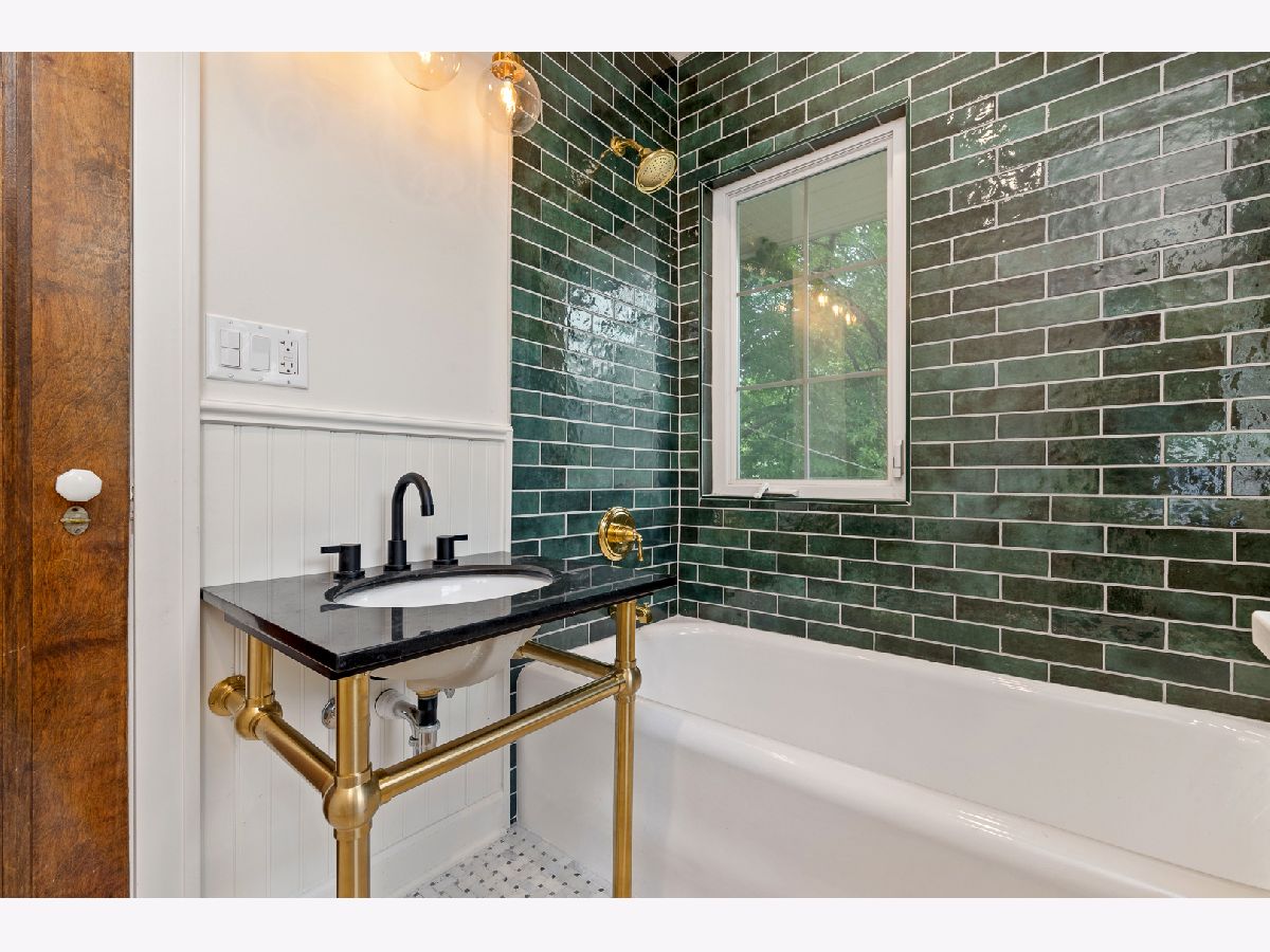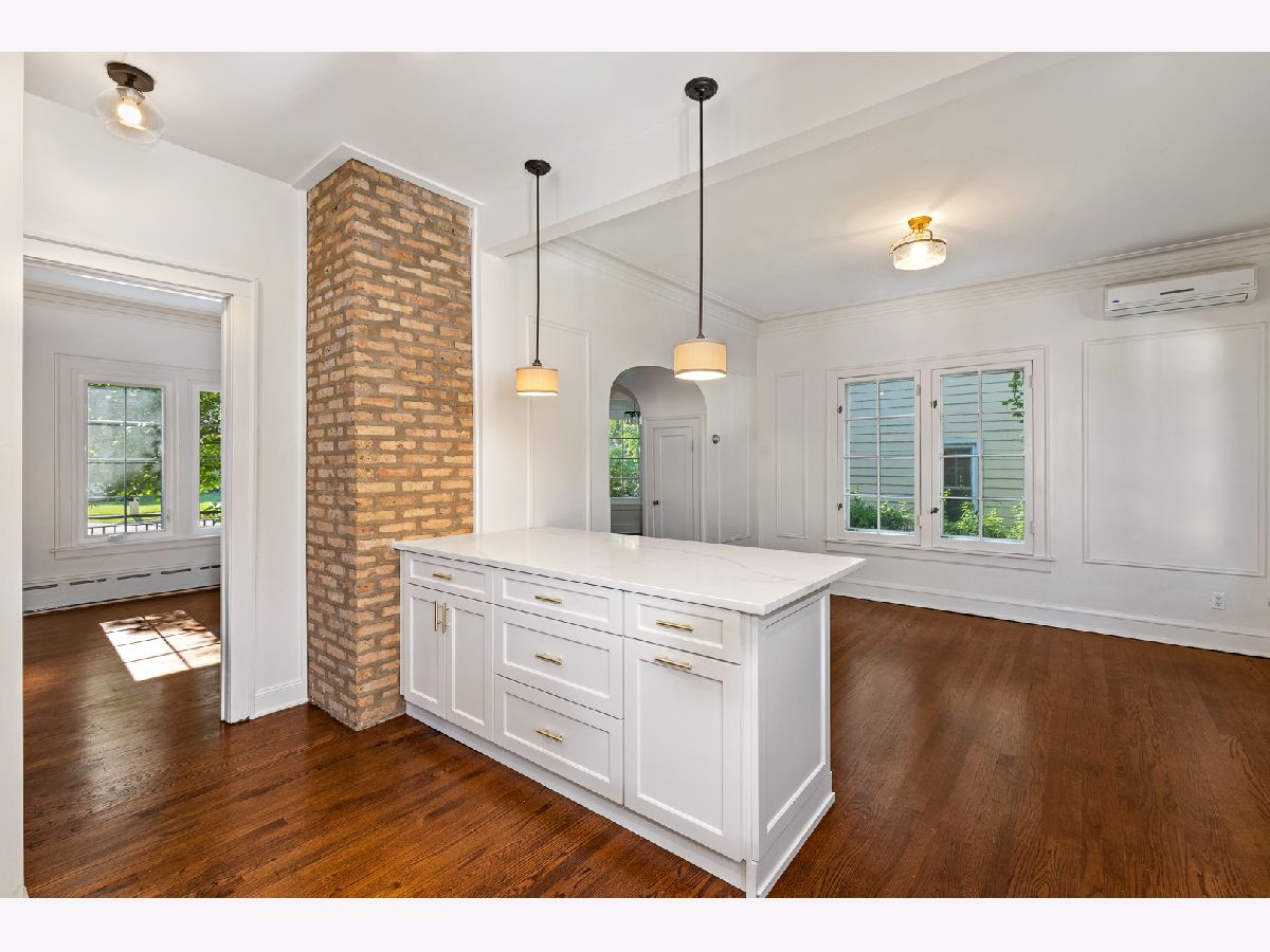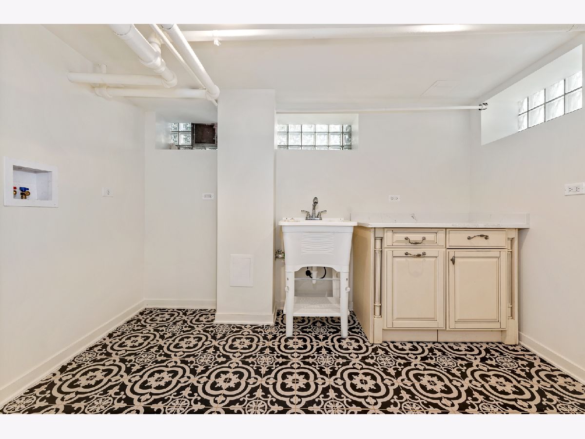 Stunningly renovated brick Georgian home. Kitchen has quartz counter tops, stainless steel appliances, Swiss Coffee custom cabinets, and Italian clay subway back splash. Powder room on main level has beautiful marble floors. Wood burning fireplace with Italian clay hearth. 3 bedrooms upstairs with two of them featuring euro-style air conditioners. Full bath has marble floors and emerald green clay tile. Finished basement room with laundry room with quartz topped cabinet. All new electric and plumbing. Large yard with 2 car garage. Short walk to grade school, downtown Oak Park and Green Line/Metra.
