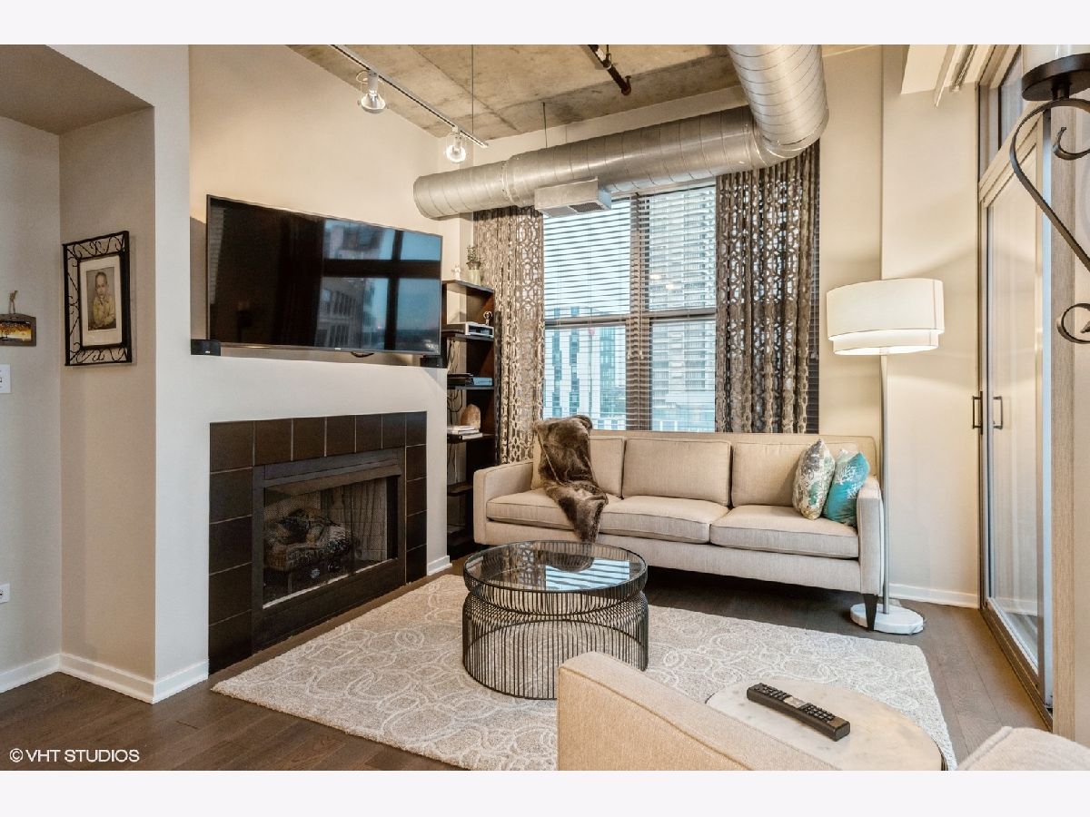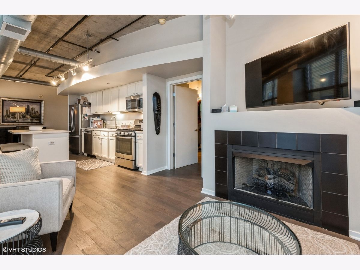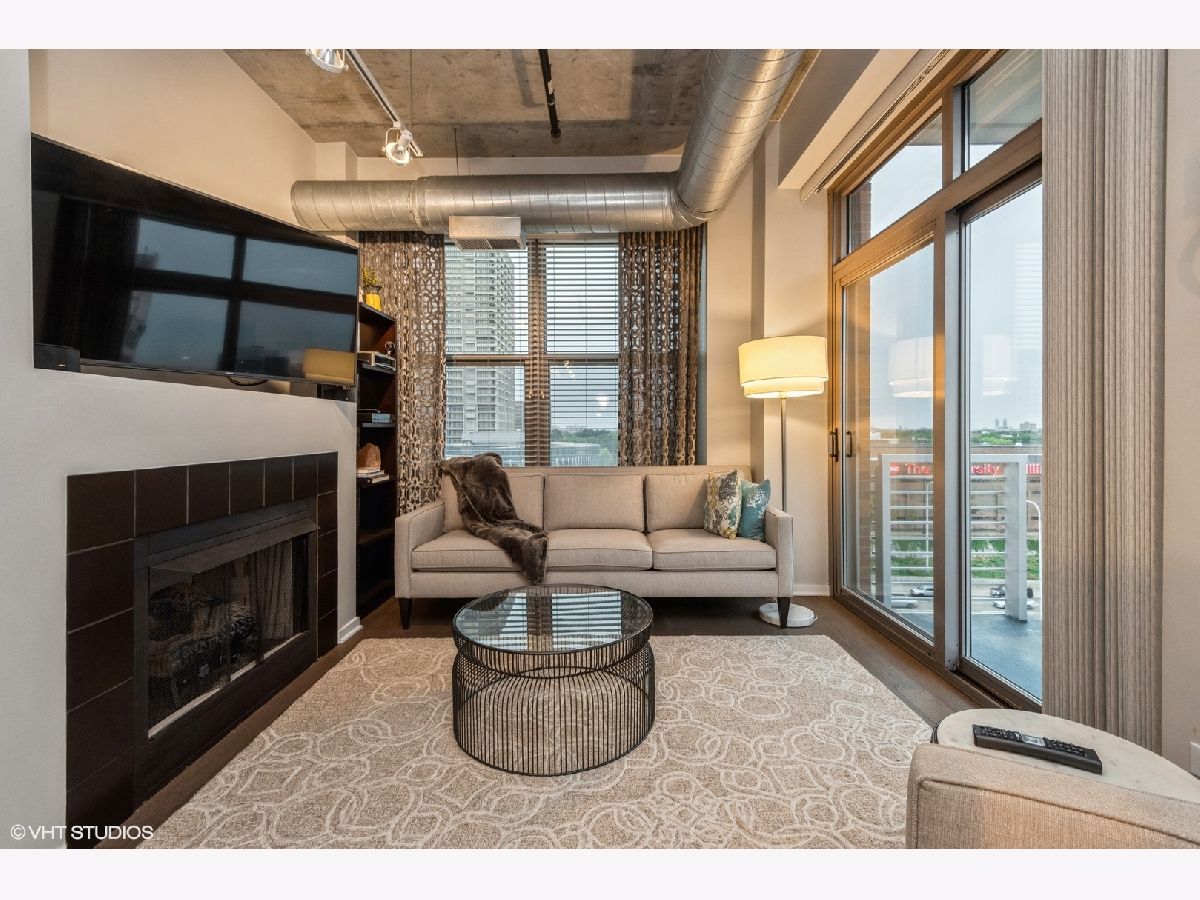 Impeccably maintained sunny corner home! This home offers newer wide plank hardwood floors, 2 fully enclosed spacious bedrooms, and a grand living room/dining room space for entertaining! Gas fireplace. Private balcony off living room. Newer (2018) stainless steel appliances including French door refrigerator and Bosch dishwasher. Huge kitchen island with breakfast bar. Primary suite includes walk in closet, accessory closet, and large bath with 4' shower. Newer washer/dryer. Huge entry closet. Prime end unit parking space P330 included. Fantastic 24-hr doorman building with gym, business center, book exchange, storage locker, press box cleaners. Beautiful rooftop deck with grills and furniture/landscaping. Close to Mary Bartelme Park, restaurants, shopping, transportation and highways!