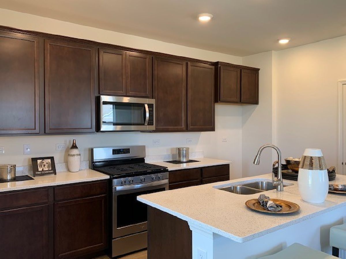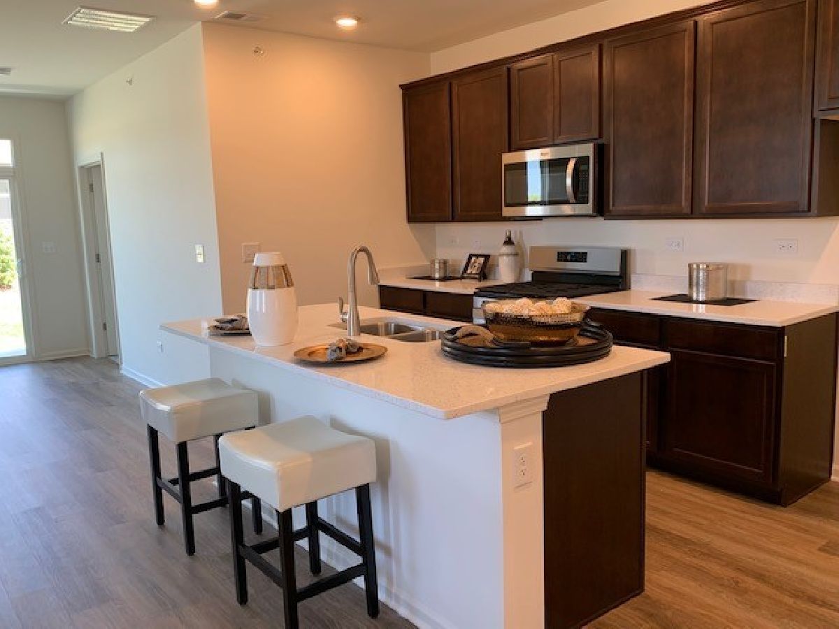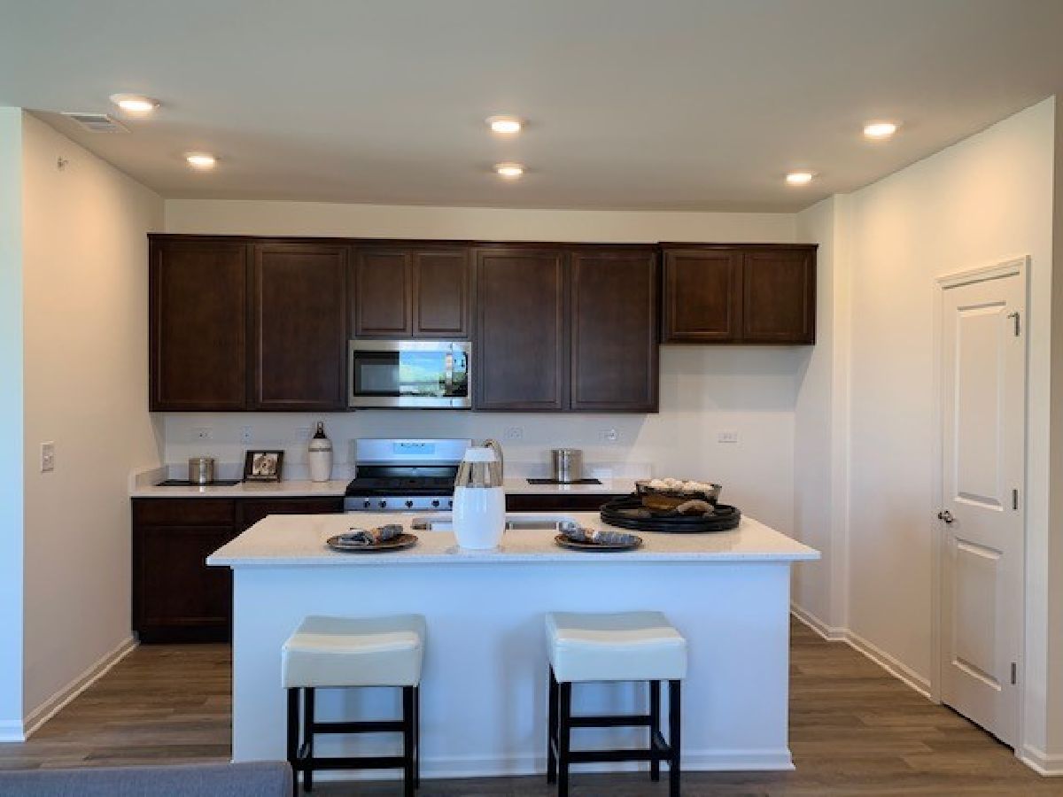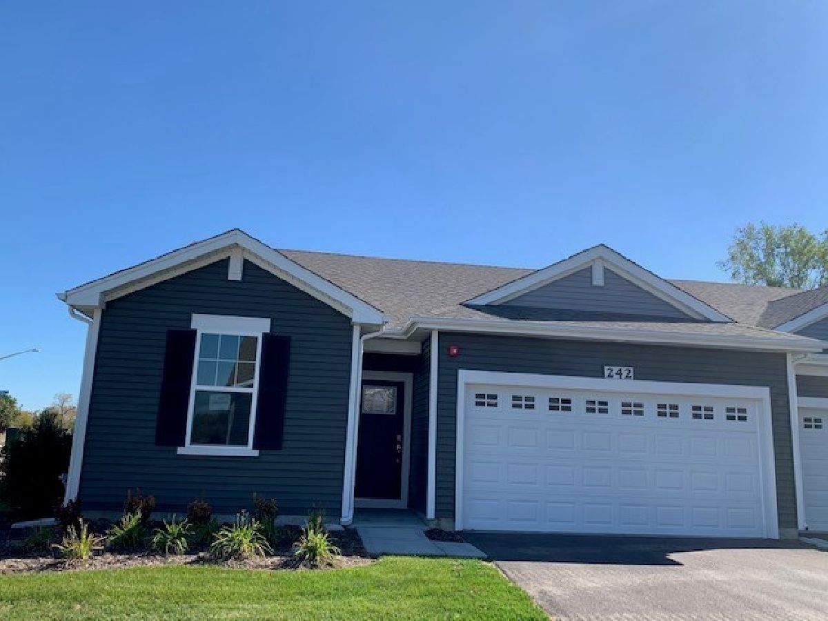 BEAUTIFUL RANCH TOWNHOME IN CLUBHOUSE COMMUNITY READY THIS WINTER! Awesome END UNIT ranch townhome on gorgeous open space homesite in North Aurora features 2 bedrooms, Den with doors, 2 bathrooms and 2-car garage. Patio looks out to beautiful scenery! Open kitchen features a large island that overhangs for stools, pantry, designer birch cabinets with crown molding, vinyl plank flooring and stainless steel appliances! Bedroom 1 includes huge a walk-in closet and private bathroom with stand up seated shower, linen closet and raised vanity. Smart Home features included. This amazing homesite is low-maintenance and professionally landscaped! Lincoln Valley is a Clubhouse community featuring a health club, fitness studio, pool, bocce ball courts, pickle ball court & walking trails! Steps away from the Red Oak Nature Center & the Fox River Trail! All D.R. Horton Chicago homes include our America's Smart Home Technology which allows you to monitor and control your home from your couch or from 500 miles away and connect to your home with your smartphone, tablet or computer. Home life can be hands-free. It's never been easier to settle into a new routine. Set the scene with your voice, from your phone, through the Qolsys panel - or schedule it and forget it. Your home will always be there for you. Our priority is to make sure you have the right smart home system to grow with you. Our homes speak to Bluetooth, Wi-Fi, Z-Wave and cellular devices so you can sync with almost any smart device. Photos are of a similar staged home with furniture.