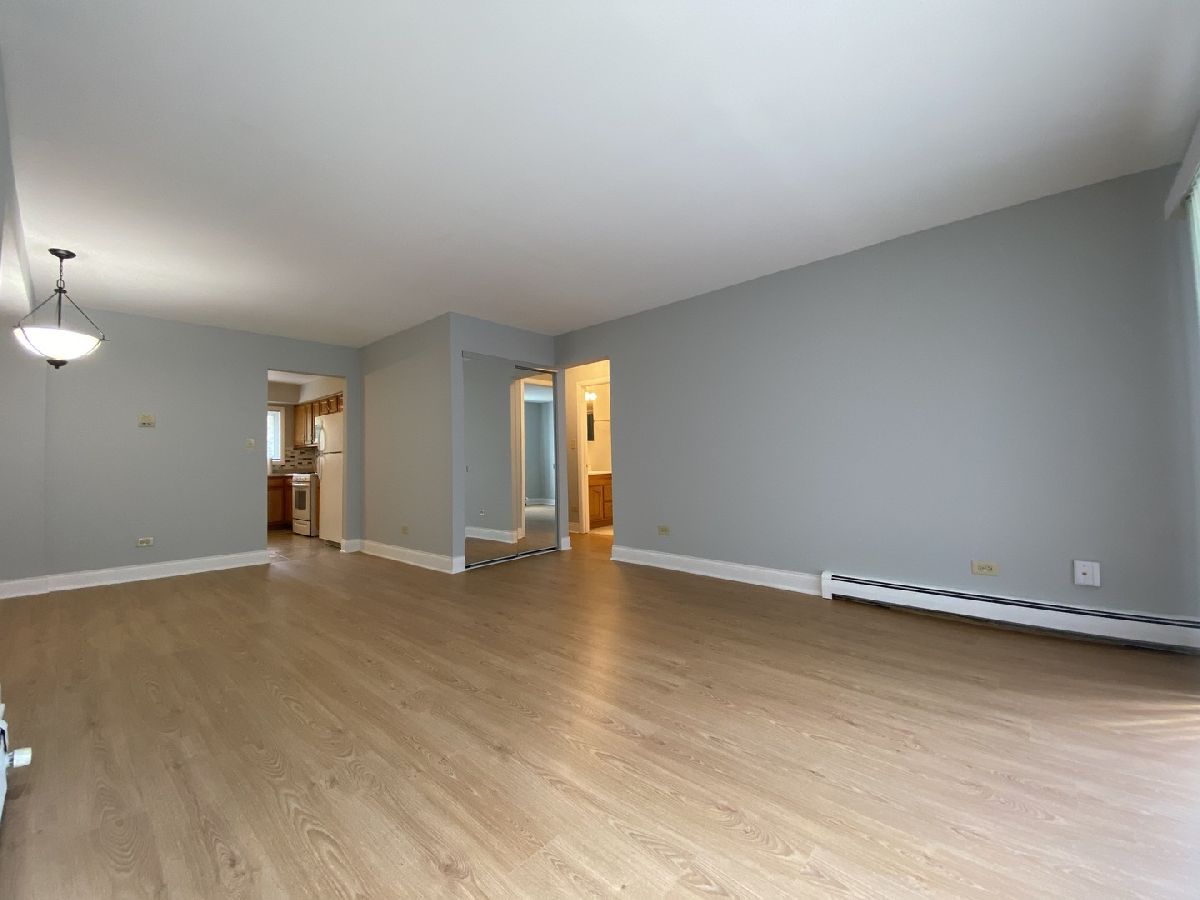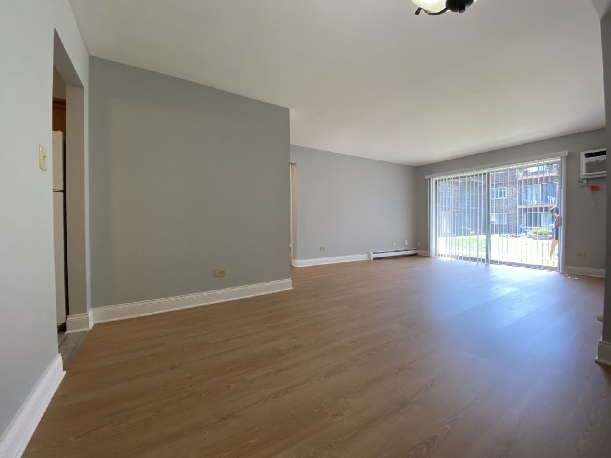 READY TO MOVE-IN 1ST FLOOR SPACIOUS AND SUNNYY 2-BR 1-BA UNIT. LARGE & BRIGHT EAT-IN KITCHEN W/ TABLE SPACE, CERAMIC FLOOR AND WINDOW OVERLOOKING COURTYARD. FORMAL DINING/LIVING ROOM W/ SLIDERS TO BALCONY. LOTS OF CLOSETS SPACE AND BRAND NEW PERGO FLOORING IN ENTIRE UNIT. ADDITIONAL STORAGE & LAUNDRY ON THE MAIN LEVEL. LOW ASSESSMENT INCLUDES: HEAT, COOKING GAS, WATER & MORE. ONLY ONE PET ALLOWED. INVESTORS FRIENDLY COMPLEX, EASY TO RENT! CONVENIENT LOCATION NEAR PARK, SCHOOLS, GOLF MILL MALL, I-294, O'HARE, HOSPITAL, OAKTON COMMUNITY COLLEGE, PACE BUS STOP #208 AND MORE
