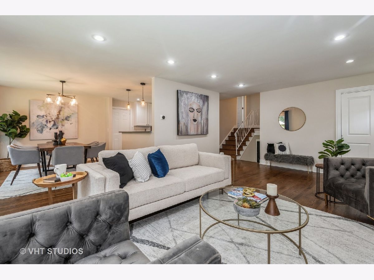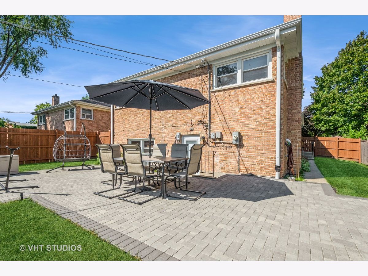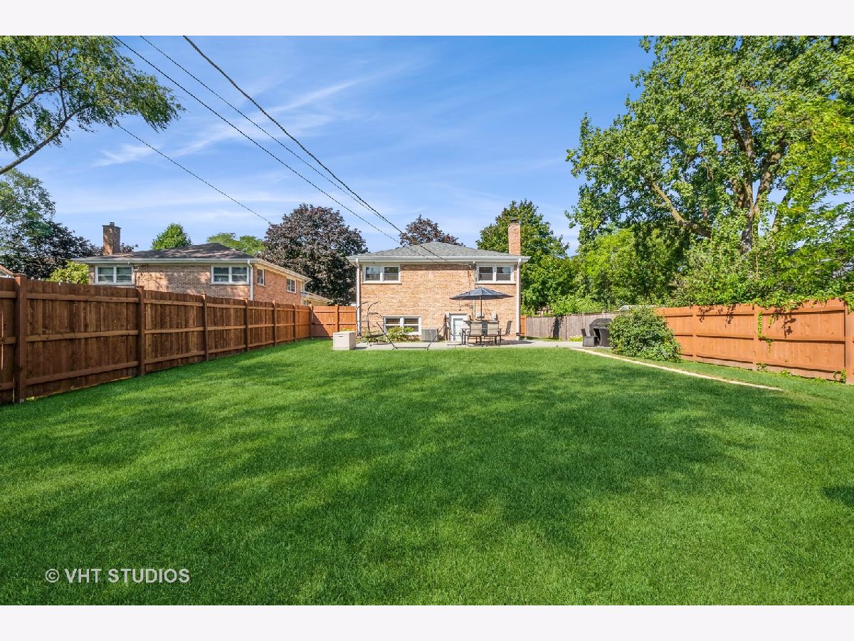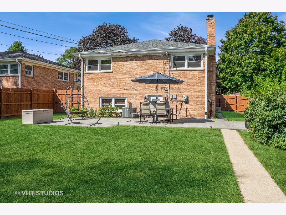 Fantastic, brick, tri-level home located on a quiet, tree-lined cul-de-sac with a new oversized patio deck on the huge gorgeous fenced-in backyard. Rehabbed throughout in 2018 using top-notch, tasteful finishes. Gorgeous kitchen with quartz countertops, breakfast bar with pendant lighting, subway tile backsplash, and stainless steel appliances. white modern, soft-close, shaker-style cabinetry. Spacious bedrooms make it easy to unwind and come with oversized closets. Soothing bathrooms feature newer vanities, tubs, tile, and toilets. Dark hardwood floors throughout this home's interior. This is truly an entertainer's home with an open floor plan, and large lot size, all designed to complement an indoor/outdoor lifestyle. Lots of parking in the 2.5-car garage and the street in front of the home. Conveniently located near food, shopping, schools, several parks, Lake Michigan, the beach and all the conveniences Dempster St & Main St have to offer. Ice Cream Truck at from 12:00 to 12:30