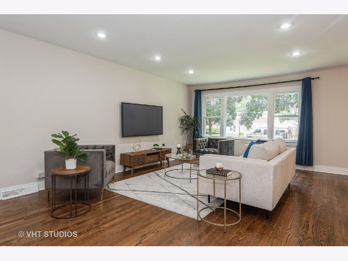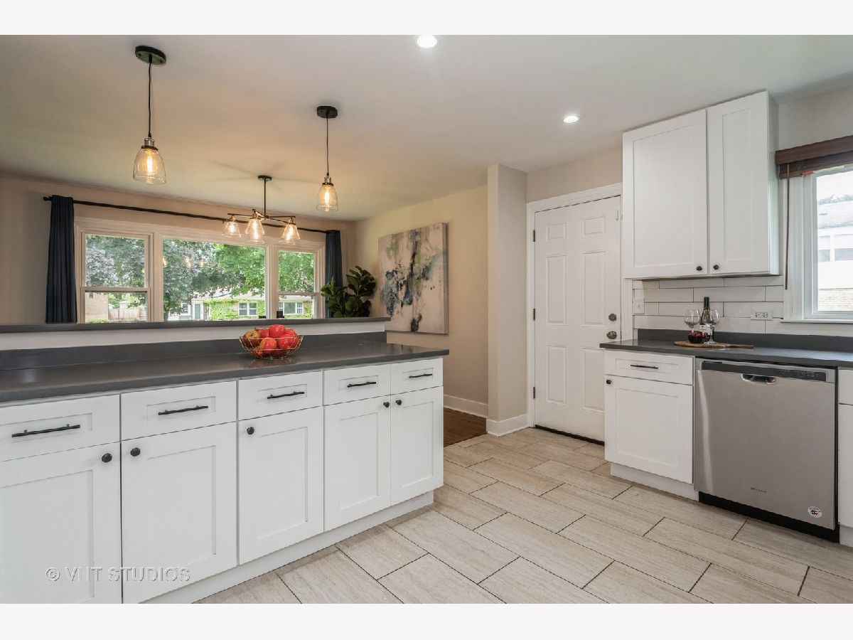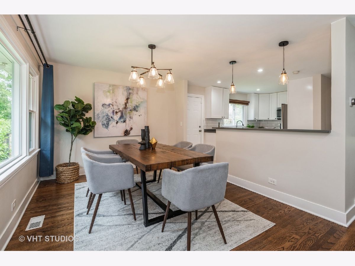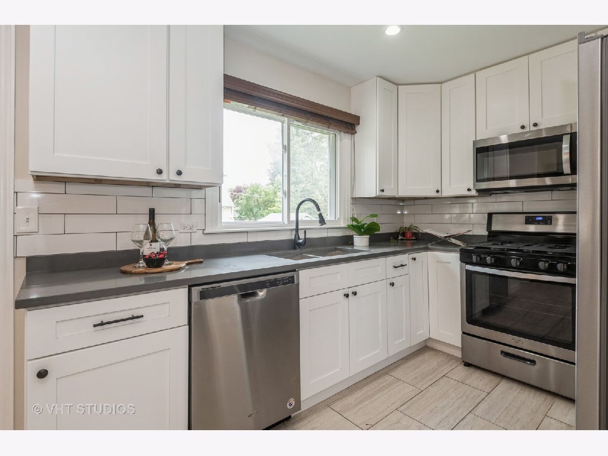 Fantastic, brick, tri-level home located on a quiet, tree-lined cul-de-sac with a new oversized patio deck on the huge gorgeous fenced-in backyard. Rehabbed throughout in 2018 using top-notch, tasteful finishes. Gorgeous kitchen with quartz countertops, breakfast bar with pendant lighting, subway tile backsplash, and stainless steel appliances. white modern, soft-close, shaker-style cabinetry. Spacious bedrooms make it easy to unwind and come with oversized closets. Soothing bathrooms feature newer vanities, tubs, tile, and toilets. Dark hardwood floors throughout this home's interior. This is truly an entertainer's home with an open floor plan, and large lot size, all designed to complement an indoor/outdoor lifestyle. Lots of parking in the 2.5-car garage and the street in front of the home. Conveniently located near food, shopping, schools, several parks, Lake Michigan, the beach and all the conveniences Dempster St & Main St have to offer. Ice Cream Truck at from 12:00 to 12:30