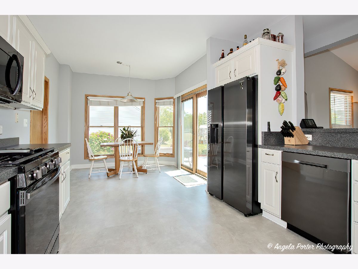 This stunning 3-bedroom, 2.5-bathroom home is on a cul-du-sec in the desirable Woodland Ridge subdivision at Hebron Harbor. Boasting a spacious layout and tasteful finishes throughout. The main level features a bright and airy living room, perfect for relaxing or entertaining guests. The dining area offers ample space for family meals and gatherings, with large windows that bathe the room in natural light. The kitchen has new stainless steel appliances, plenty of counter space, and an abundance of storage in the cabinets. Enjoy the convenience of an eat-in kitchen or the breakfast bar, ideal for quick bites or casual dining. The kitchen opens to the spacious family room. Upstairs, you'll discover the spacious primary suite, complete with a walk-in closet and a private en-suite bathroom. Two additional nice size bedrooms provide comfortable accommodations for family members or guests. The bonus loft can be used as a playroom or office. The full basement has endless possibilities. The 3 1/2 car garage is 28 feet deep. Outside, the home features a beautifully landscaped large yard, offering a tranquil space to relax and enjoy the outdoors. Host barbecues on the 725 sf stamped concrete patio. This home enjoys proximity to a variety of amenities, including shopping, restaurants, parks, and the Chain O'Lakes. Emmons schools. Freshly painted and New roof and siding 2020.