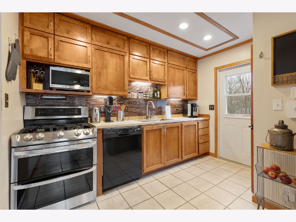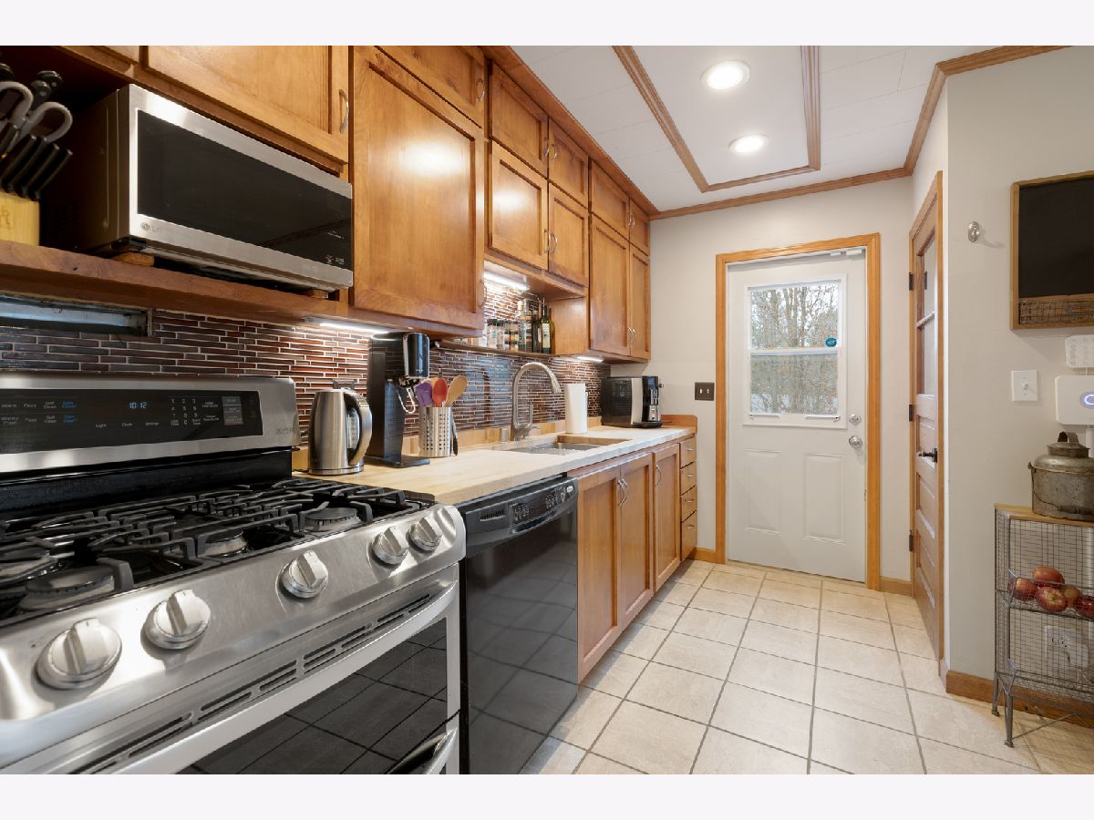 Get away to this upper level oasis. Enter on ground level to a fantastic Living Room made inviting with lots of windows and a gas powered, auto light franklin-style stove. Very cozy! The laundry (washer & dryer are about 12 years old) is conveniently located in the large 2 car attached garage. Surprise! A private 1/4 bath for all you guys is on this level, as well. Upstairs, the views are tranquil from the picture window & the living space is perfect. The central room can be a dining or living room. L shaped kitchen is efficient & pretty with a deep sink & butcher block counters. The range was new in 2017 & the fridge in 2023. A lovely composite deck (new in 2023) has a lockable storage area beneath. Roof was a tear off replacement in 2020. This is a solid home and the most affordable in Lake Geneva. New airbox in furnace was installed in 2023. Septic has been pumped and inspected every 2 years. Wardrobe stays in 3rd bedroom - there is no built in closet. Water heater new in 2023. House is wired for ADT. Ring camera stays. There is a water softener. Both garage doors had openers with 1 remote - units are about 8 years old.