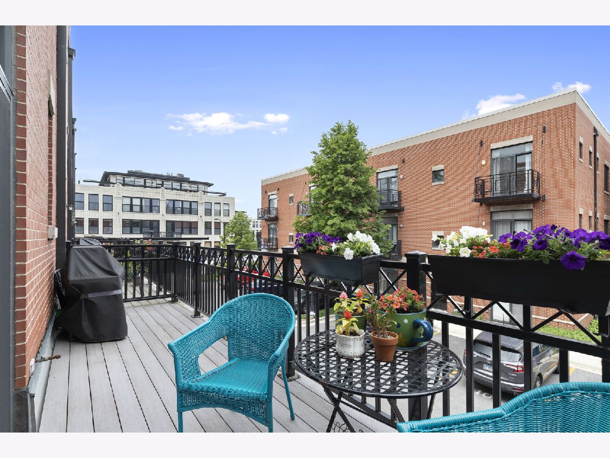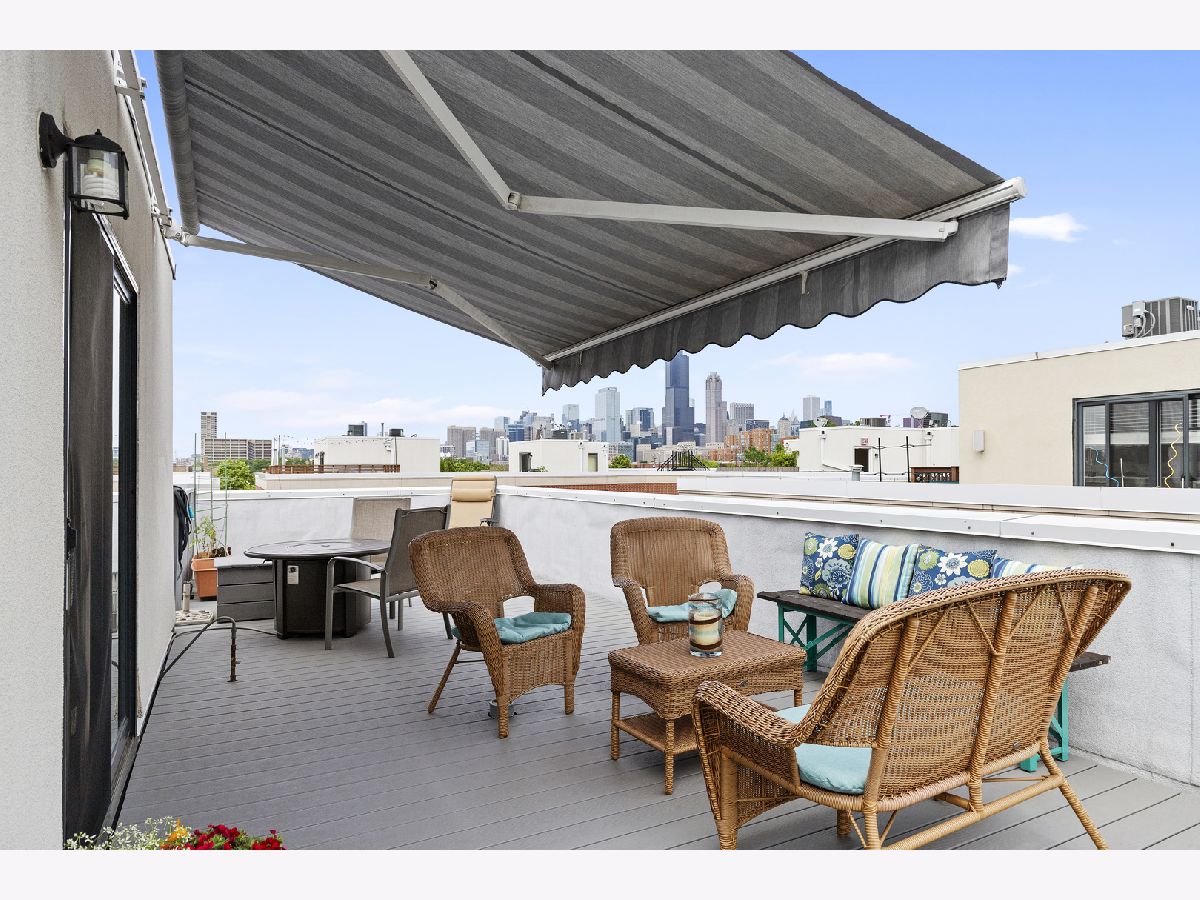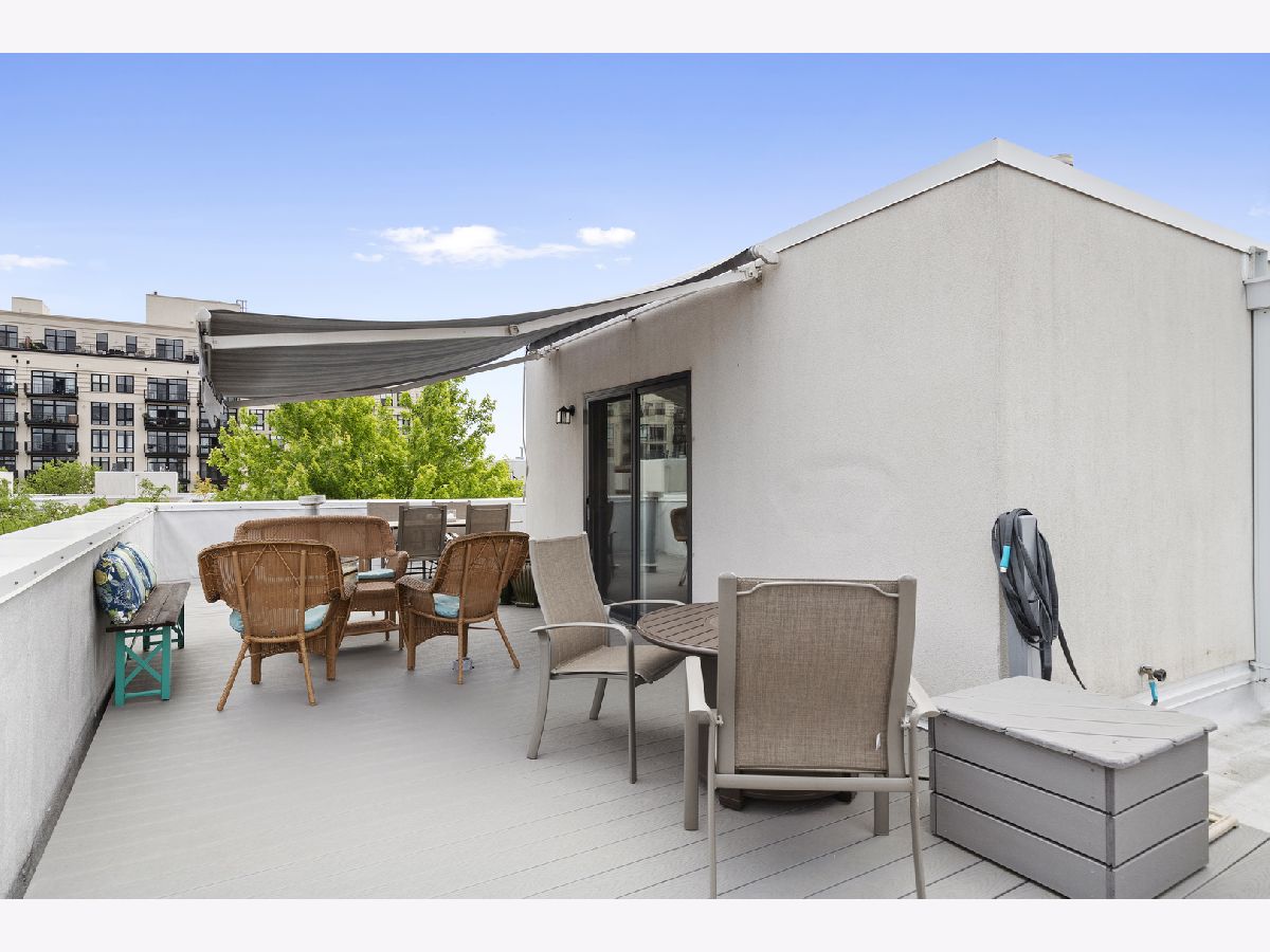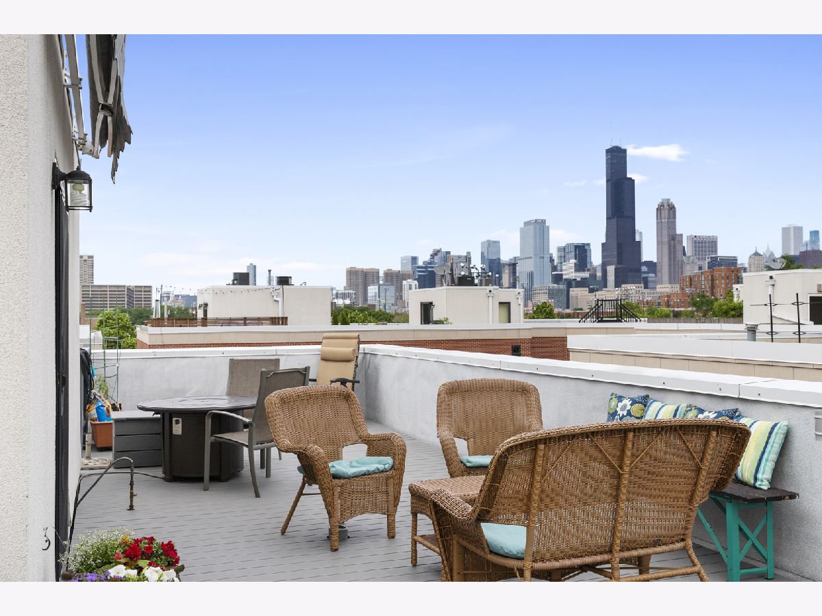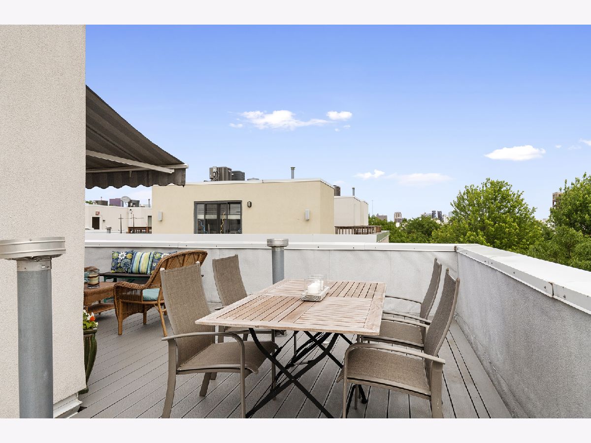 ***SELLERS ARE ASKING FOR HIGHEST/BEST OFFERS BY 5:00 PM MONDAY THE 13TH***This sun-filled corner unit town home, located in University Village, is set in a mature tree-lined courtyard which gives the window views a "tree house" like feeling. SPEAKING OF VIEWS, the huge (38' x 22') wrap around roof top deck gives an unparalleled view of the Chicago Skyline. A newly installed serving kitchen in the "dog house" landing area on the interior top floor (cabinets, a dishwasher, and stainless steel sink) means that there is no need to run down two flights of stairs when the roof-top entertaining has begun. The main level has a large open living room/dining room combination. Custom built-ins surround the gas fireplace and TV wall. Pristine medium walnut-stained Oak Flooring runs throughout the first floor, staircase to the second floor, and continues through the entire second floor. The chef's kitchen has dark granite countertops and a center island for food prep and pull up dining. There is also a large space for a cozy kitchen dining table. A 5'6" x 20'3" balcony opens off of the kitchen with a gas line for grilling. A charming 1/2 bath rounds out the main floor. The second floor has a spacious en suite primary whose spa-like bathroom has a separate shower and double sinks. Two other bedrooms, another full bath and laundry finish out the second floor. Recent updates include new Trex decking on the rooftop deck surface and the deck surface on the balcony off of the kitchen, new slider on top floor deck, sink, cabinets, dishwasher in "dog house" off of rooftop deck, rooftop retractable canvas awning, replaced HVAC system 10/21, H2O heater 2018, fibered aluminum reflective roof coating 2017, installed hardwood oak flooring on entire second floor and on the staircase, and insulated garage door.