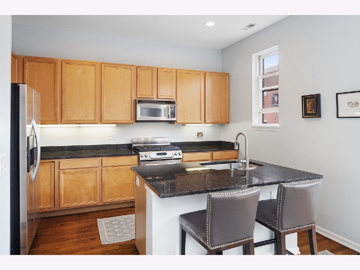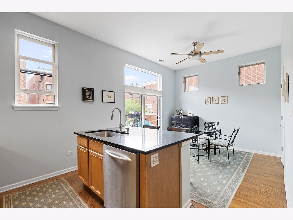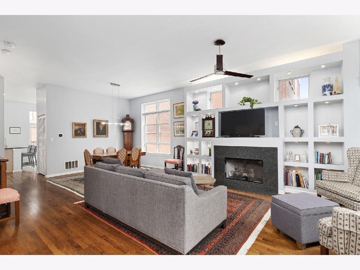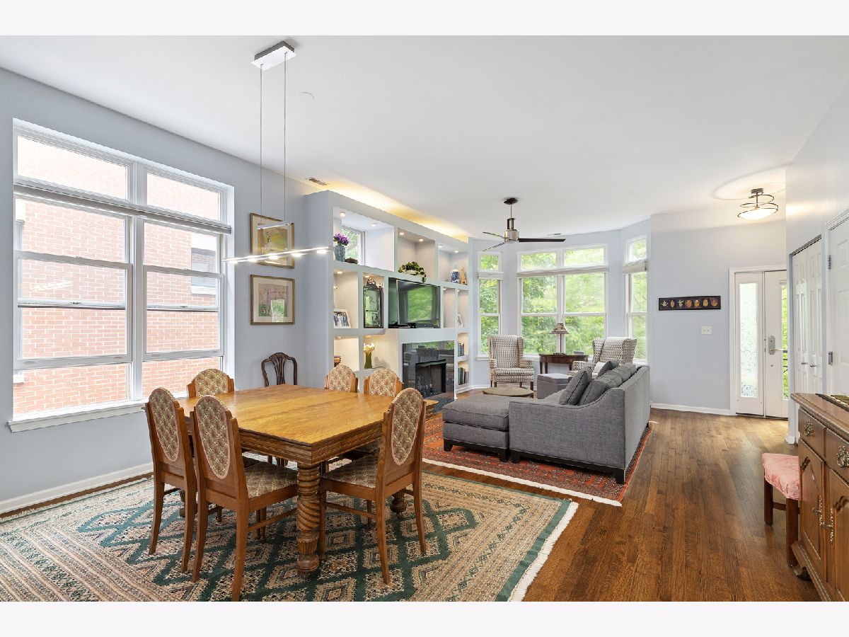 ***SELLERS ARE ASKING FOR HIGHEST/BEST OFFERS BY 5:00 PM MONDAY THE 13TH***This sun-filled corner unit town home, located in University Village, is set in a mature tree-lined courtyard which gives the window views a "tree house" like feeling. SPEAKING OF VIEWS, the huge (38' x 22') wrap around roof top deck gives an unparalleled view of the Chicago Skyline. A newly installed serving kitchen in the "dog house" landing area on the interior top floor (cabinets, a dishwasher, and stainless steel sink) means that there is no need to run down two flights of stairs when the roof-top entertaining has begun. The main level has a large open living room/dining room combination. Custom built-ins surround the gas fireplace and TV wall. Pristine medium walnut-stained Oak Flooring runs throughout the first floor, staircase to the second floor, and continues through the entire second floor. The chef's kitchen has dark granite countertops and a center island for food prep and pull up dining. There is also a large space for a cozy kitchen dining table. A 5'6" x 20'3" balcony opens off of the kitchen with a gas line for grilling. A charming 1/2 bath rounds out the main floor. The second floor has a spacious en suite primary whose spa-like bathroom has a separate shower and double sinks. Two other bedrooms, another full bath and laundry finish out the second floor. Recent updates include new Trex decking on the rooftop deck surface and the deck surface on the balcony off of the kitchen, new slider on top floor deck, sink, cabinets, dishwasher in "dog house" off of rooftop deck, rooftop retractable canvas awning, replaced HVAC system 10/21, H2O heater 2018, fibered aluminum reflective roof coating 2017, installed hardwood oak flooring on entire second floor and on the staircase, and insulated garage door.