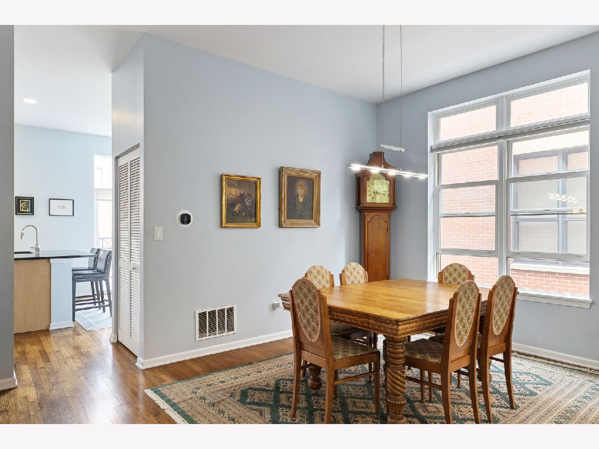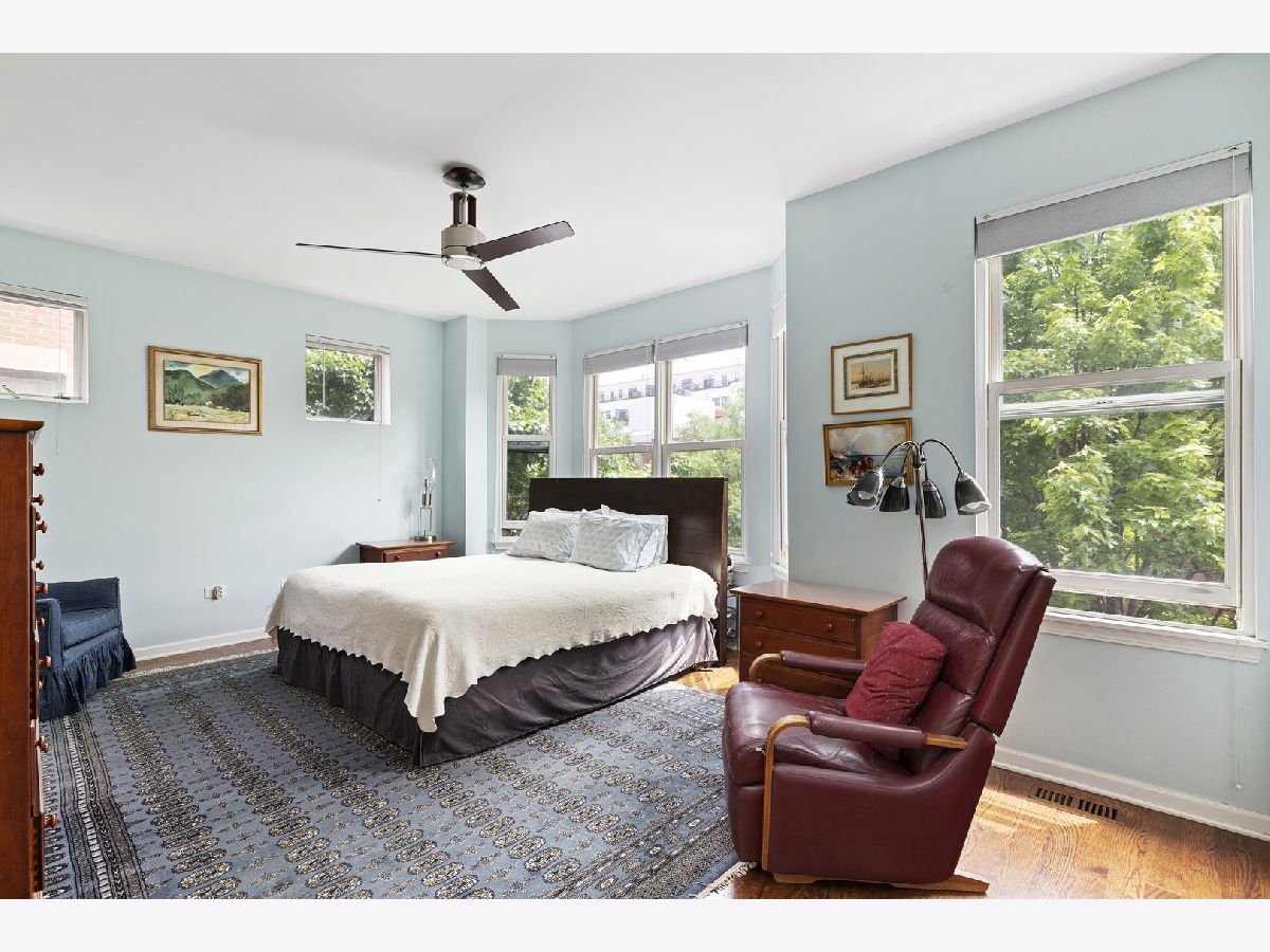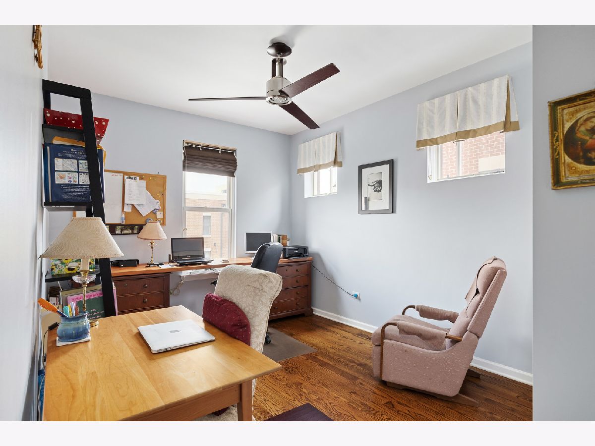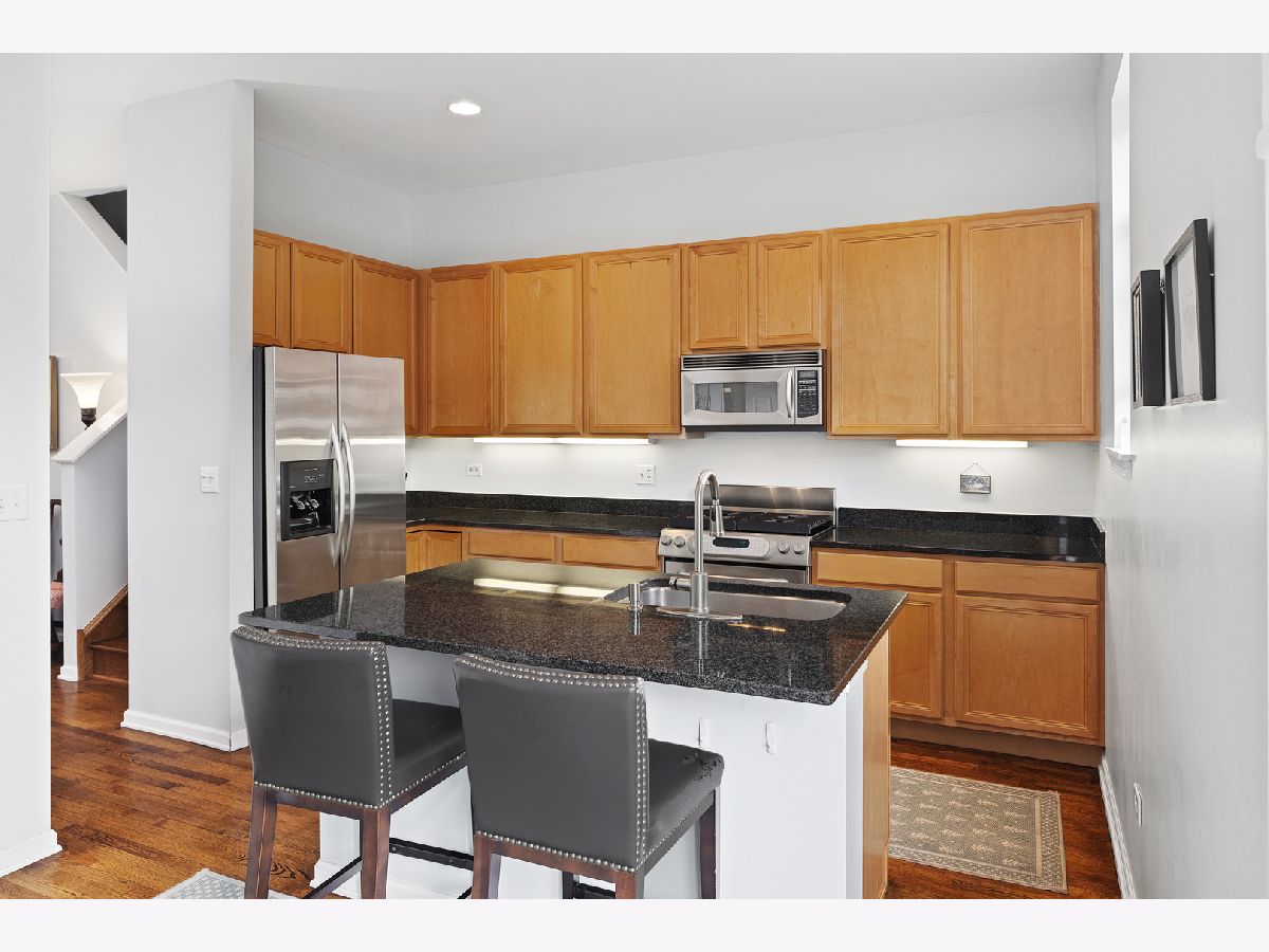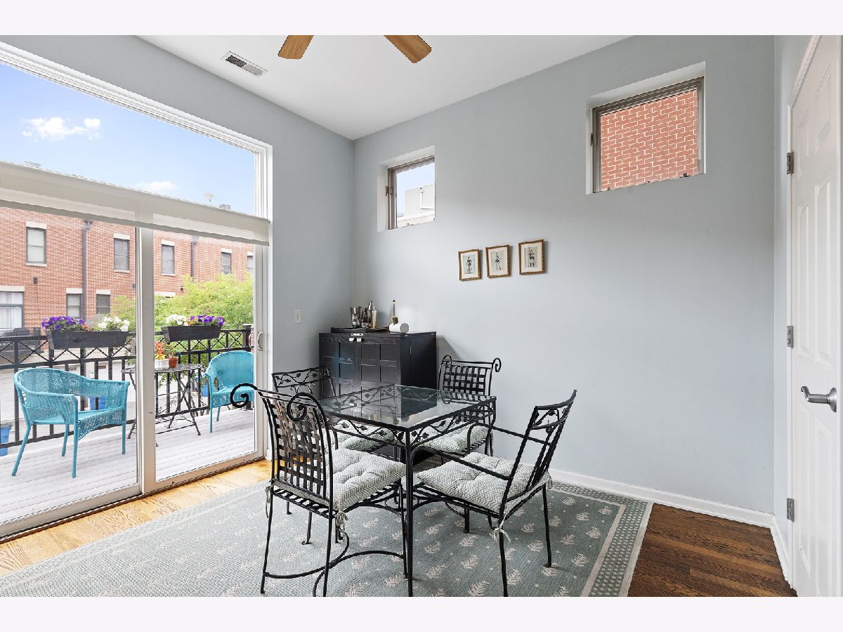 ***SELLERS ARE ASKING FOR HIGHEST/BEST OFFERS BY 5:00 PM MONDAY THE 13TH***This sun-filled corner unit town home, located in University Village, is set in a mature tree-lined courtyard which gives the window views a "tree house" like feeling. SPEAKING OF VIEWS, the huge (38' x 22') wrap around roof top deck gives an unparalleled view of the Chicago Skyline. A newly installed serving kitchen in the "dog house" landing area on the interior top floor (cabinets, a dishwasher, and stainless steel sink) means that there is no need to run down two flights of stairs when the roof-top entertaining has begun. The main level has a large open living room/dining room combination. Custom built-ins surround the gas fireplace and TV wall. Pristine medium walnut-stained Oak Flooring runs throughout the first floor, staircase to the second floor, and continues through the entire second floor. The chef's kitchen has dark granite countertops and a center island for food prep and pull up dining. There is also a large space for a cozy kitchen dining table. A 5'6" x 20'3" balcony opens off of the kitchen with a gas line for grilling. A charming 1/2 bath rounds out the main floor. The second floor has a spacious en suite primary whose spa-like bathroom has a separate shower and double sinks. Two other bedrooms, another full bath and laundry finish out the second floor. Recent updates include new Trex decking on the rooftop deck surface and the deck surface on the balcony off of the kitchen, new slider on top floor deck, sink, cabinets, dishwasher in "dog house" off of rooftop deck, rooftop retractable canvas awning, replaced HVAC system 10/21, H2O heater 2018, fibered aluminum reflective roof coating 2017, installed hardwood oak flooring on entire second floor and on the staircase, and insulated garage door.
