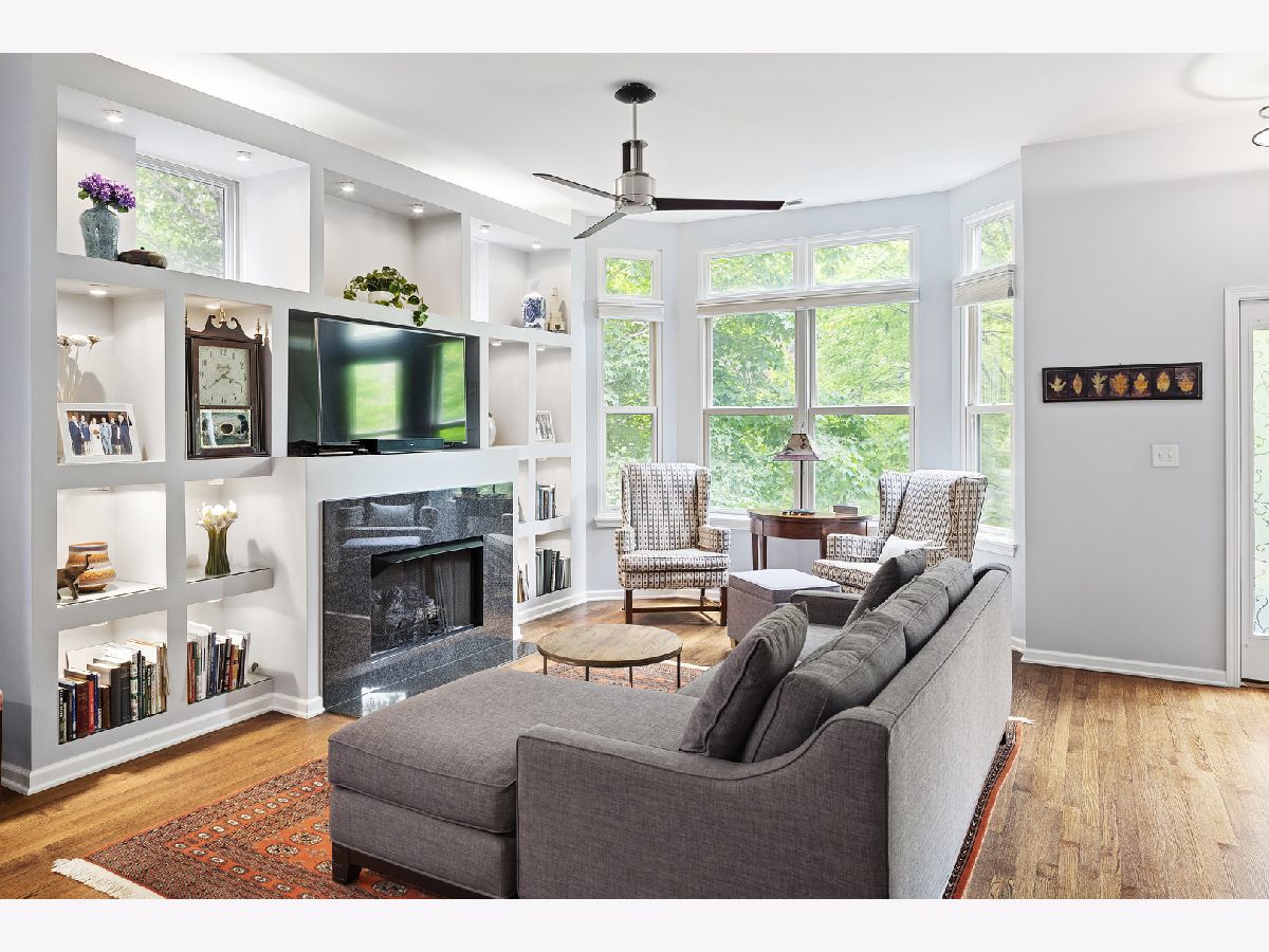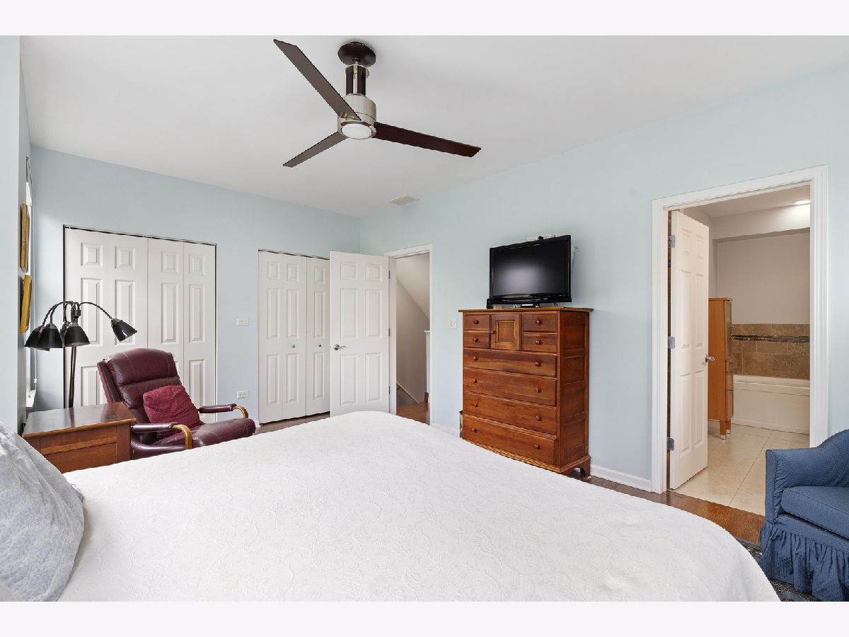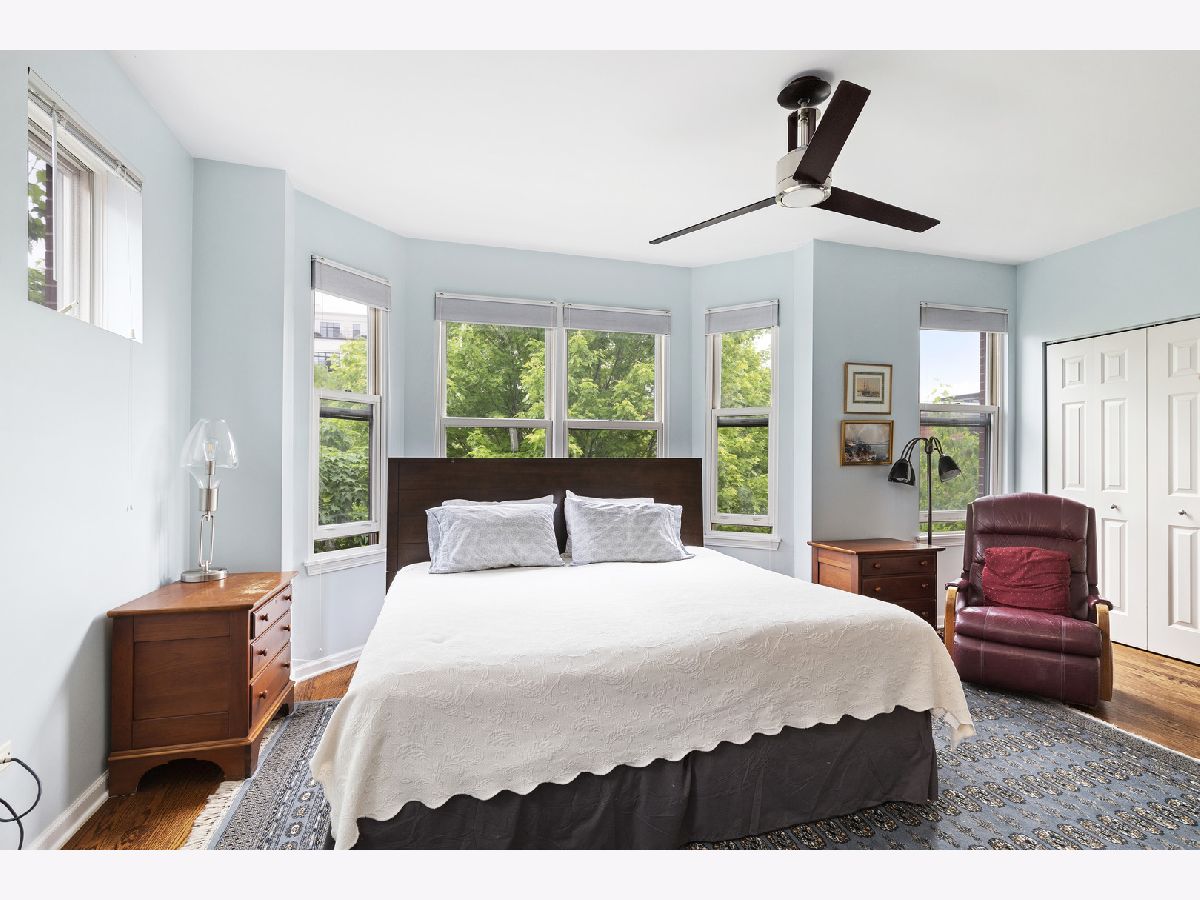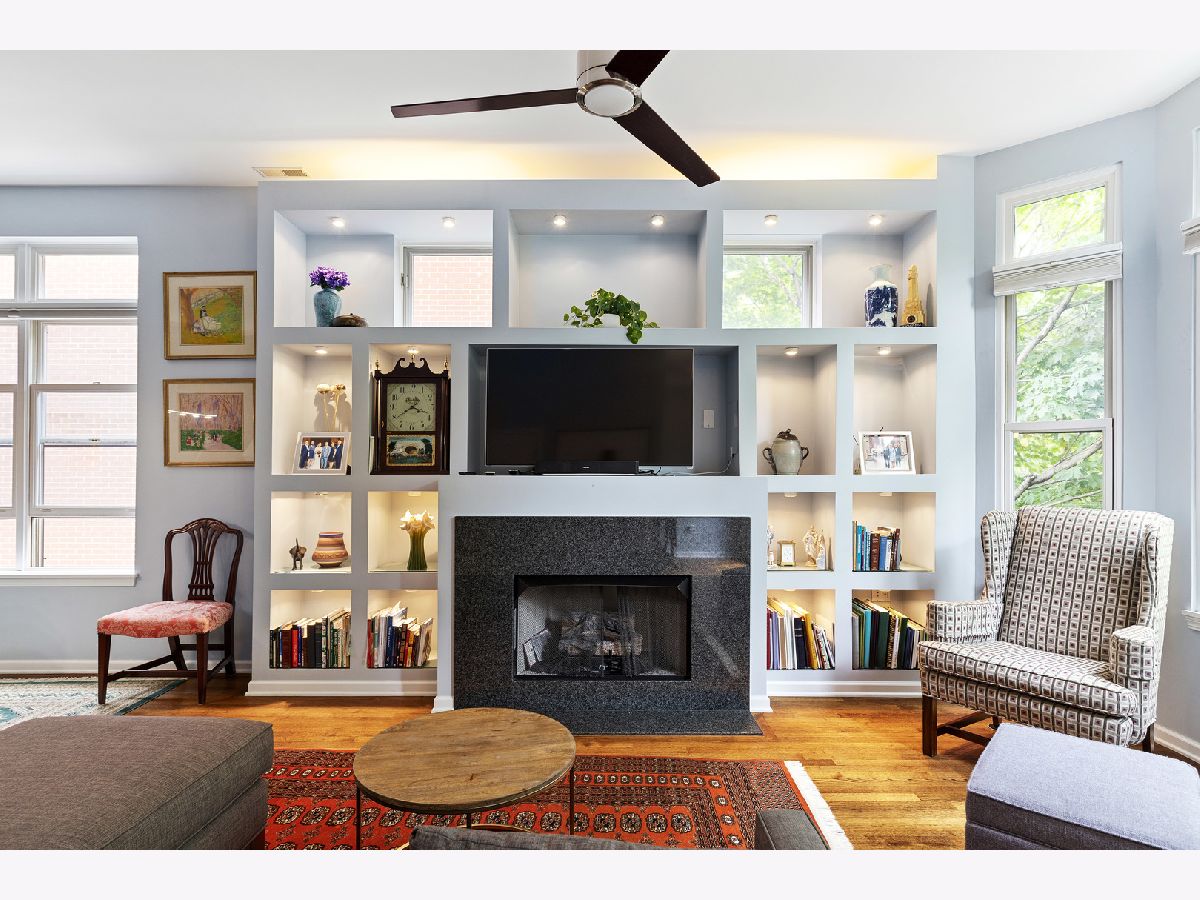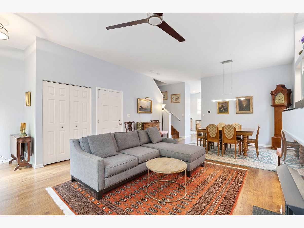 ***SELLERS ARE ASKING FOR HIGHEST/BEST OFFERS BY 5:00 PM MONDAY THE 13TH***This sun-filled corner unit town home, located in University Village, is set in a mature tree-lined courtyard which gives the window views a "tree house" like feeling. SPEAKING OF VIEWS, the huge (38' x 22') wrap around roof top deck gives an unparalleled view of the Chicago Skyline. A newly installed serving kitchen in the "dog house" landing area on the interior top floor (cabinets, a dishwasher, and stainless steel sink) means that there is no need to run down two flights of stairs when the roof-top entertaining has begun. The main level has a large open living room/dining room combination. Custom built-ins surround the gas fireplace and TV wall. Pristine medium walnut-stained Oak Flooring runs throughout the first floor, staircase to the second floor, and continues through the entire second floor. The chef's kitchen has dark granite countertops and a center island for food prep and pull up dining. There is also a large space for a cozy kitchen dining table. A 5'6" x 20'3" balcony opens off of the kitchen with a gas line for grilling. A charming 1/2 bath rounds out the main floor. The second floor has a spacious en suite primary whose spa-like bathroom has a separate shower and double sinks. Two other bedrooms, another full bath and laundry finish out the second floor. Recent updates include new Trex decking on the rooftop deck surface and the deck surface on the balcony off of the kitchen, new slider on top floor deck, sink, cabinets, dishwasher in "dog house" off of rooftop deck, rooftop retractable canvas awning, replaced HVAC system 10/21, H2O heater 2018, fibered aluminum reflective roof coating 2017, installed hardwood oak flooring on entire second floor and on the staircase, and insulated garage door.