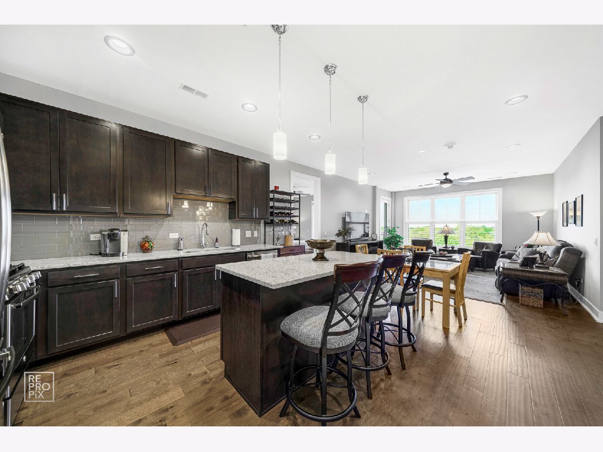 The Marquis on Maple! Stunning top floor two bedroom, two bathroom in vibrant downtown Downers Grove. 2 parking spaces. 1 indoor & 1 outdoor. This home boast 9' ceilings with solid wood doors, expansive windows w/ custom shutters, gourmet kitchen with island, 42 inch Expresso cabinets, quartz countertops with subway backsplash & SS appliances. Kohler plumbing fixtures. 5" planked engineered flooring. Private balcony facing east w/ courtyard views. Spacious master bedroom w/ walk-in closet. Master bath w/ separate tub & shower. In unit laundry/storage room. Elevator building. Magnificent lobby leading to furnished resident lounge with fireplace and television. Private club room with full kitchen. Fitness center with state of the art equipment. Landscaped courtyard offers gas grill, fire pits, social seating & dog walk area. Award winning schools! Walk to train, shopping, & restaurants! Living at it's Finest!