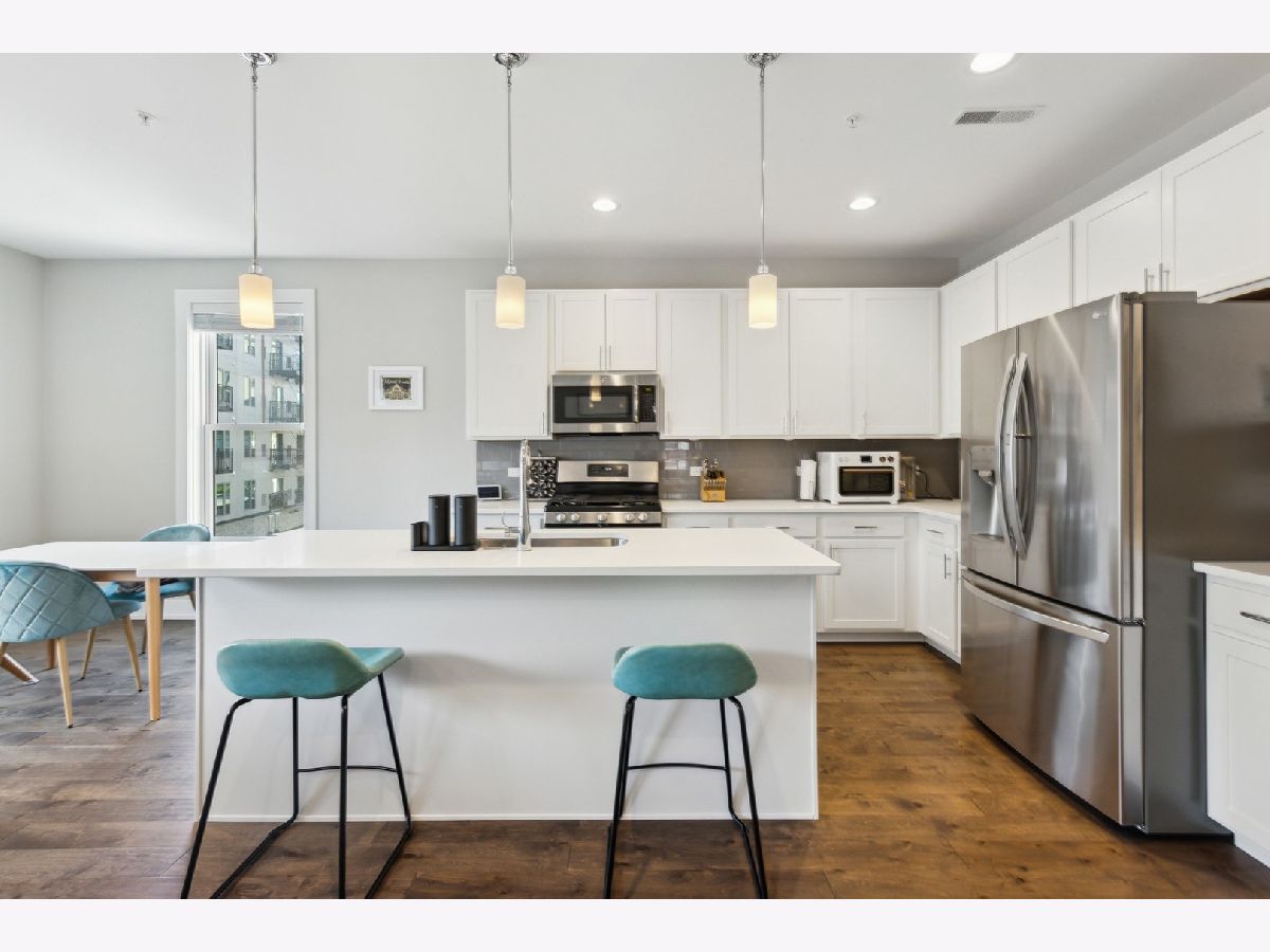 Experience the epitome of upscale living at The Marquis on Maple, an exceptional residence located in the vibrant downtown of Downers Grove. This prime location offers the convenience of walking to the Metra Train Station, restaurants, shops, parks, the bandshell, and schools. Prepare to be captivated by this beautiful two-bedroom, two-bathroom condo. As you step inside, you'll be greeted by a spacious foyer and exquisite hardwood floors that effortlessly flow throughout the condo. The kitchen is a beautiful, showcasing quartz countertops, an island with a breakfast bar, top-of-the-line stainless steel appliances, and a pantry. The open layout, seamlessly connecting the living room, dining room, and kitchen, creates the perfect environment for entertaining guests. The master bedroom is a tranquil retreat, complete with an en-suite bathroom that features a double sink vanity, separate tub and shower, and a spacious walk-in closet. Smart home technology elevates the living experience with Z-wave smart switches and a Nest thermostat. The convenience of in-unit laundry further enhances the modern appeal of this condo. Step out onto the private balcony and relish in a breath of fresh air. Ample storage space is provided with multiple closets throughout. The second bedroom and bathroom also offer generous proportions. The Marquis on Maple presents a plethora of luxury amenities on its first level. The covered Arrival Court warmly welcomes you, leading you to the Resident Lounge and Lobby. A private Club Room awaits, complete with a full Entertainment Kitchen, Bar, and TV, along with access to the Patio. Stay in shape at the Fitness Center, catering to your exercise needs. For outdoor relaxation and social gatherings, The Garden Lounge provides a Grilling area, Fire Pit, Group Seating, and an Event Lawn. Additional features of this remarkable residence include a secure building, temperature-controlled indoor parking, two elevators, ample storage space, and expansive windows. Indulge in the unrivaled luxury of living at The Marquis on Maple.