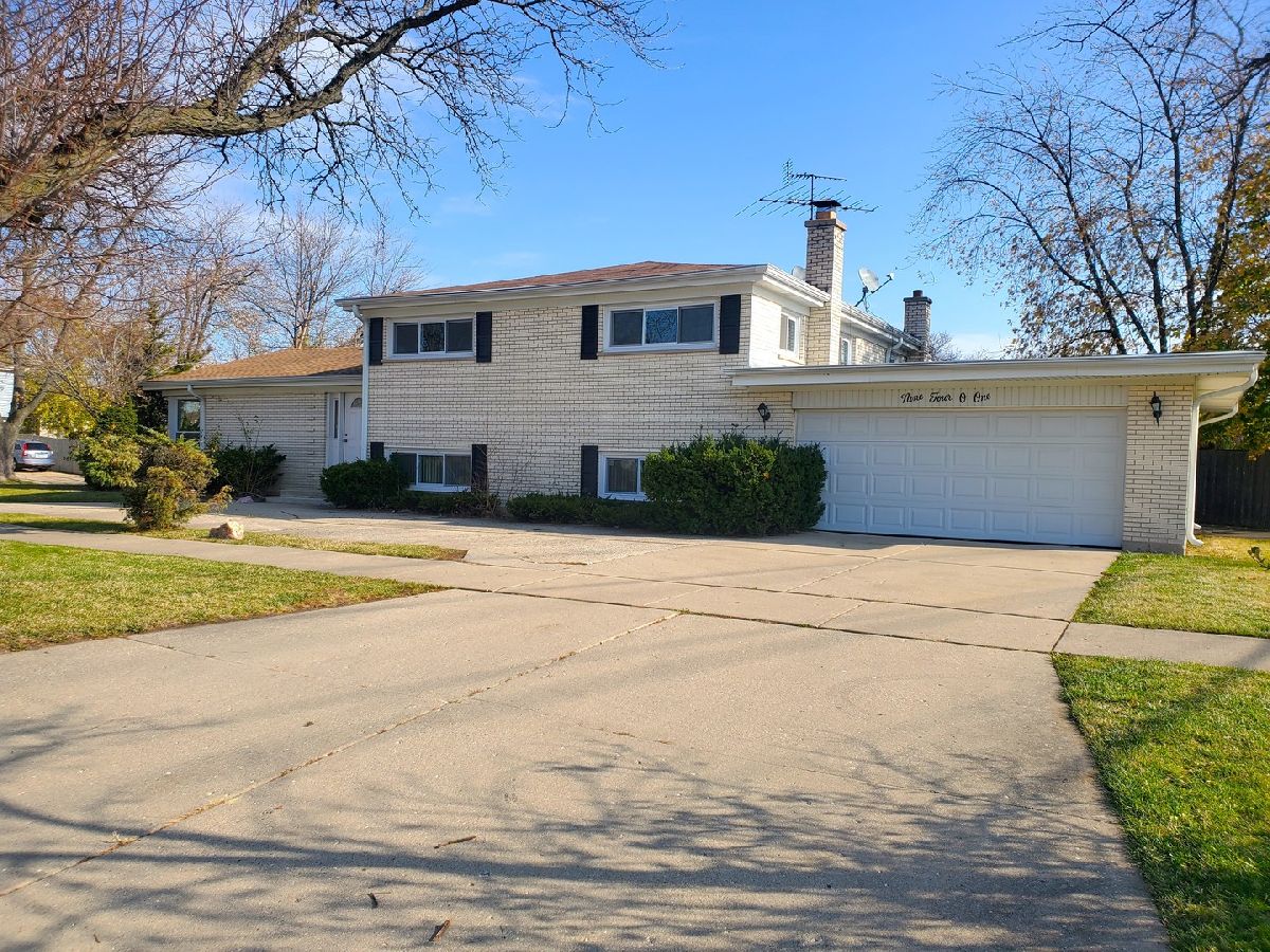 HUGE PRICE REDUCTION!!! ***KITCHEN JUST REFURBISHED!! So much space in this Jumbo brick Morton Grove split-level home! Enter into a bright and lovely foyer and enormous living room, with vaulted ceilings and hardwood floors throughout! So much beautiful natural light coming in through the floor to ceiling windows (windows new in 2019)! Full big dining room off of living room, and NEWLY UPDATED kitchen with brand new Quartz countertops and backsplash (contractor finishing up soon). Stainless steel appliances, range hood, Quartz breakfast bar and eat-in area, plus walk out to back patio for easy entertaining! Four large bedrooms upstairs with full master bath and additional full shared bath. Large bright and very spacious lower level with woodburning fireplace, additional bedroom, and half bath. 2.5 car attached garage with a ton of storage space! New furnace 2021, new roof 2020, new windows 2019. All this plus close proximity to park, transportation and highway, tons of shopping and International Market, and excellent rated schools! Come take a look today!!!