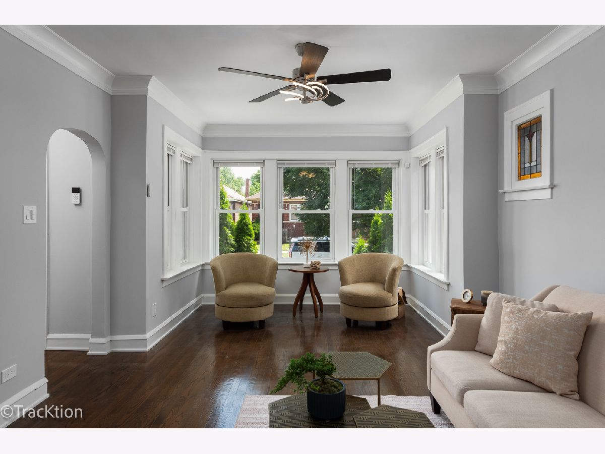 Professionally remodeled all-brick bungalow in one of Chicago's quietest neighborhoods - Burnside. Homeowner warranty included! This beautiful home boasts 4bedrooms, big private room with a spacious closet in the finished basement (easily converted into a bedroom - see seller credits) and 3 full bathrooms. Every inch of this house has been thoughtfully renovated, featuring a gorgeous staircase, up-to-date bathrooms with LED mirrors, and a light and airy kitchen with brand-new stainless steel appliances. Gleaming solid hardwood floors throughout the main floor. The basement features ceramic tile flooring, a spacious laundry area with a washer/dryer, and plenty of space for entertainment. In the back, you will find a small outdoor space with a pergola extending from the 2-car garage for rainy day grilling. Located right in front of Chicago State University, on a peaceful block away from the main street, yet less than a mile from I-94 and the CTA train, just a short 20-minute drive to downtown, this home has it all! Schedule your showing today and make this timeless beauty your new home!