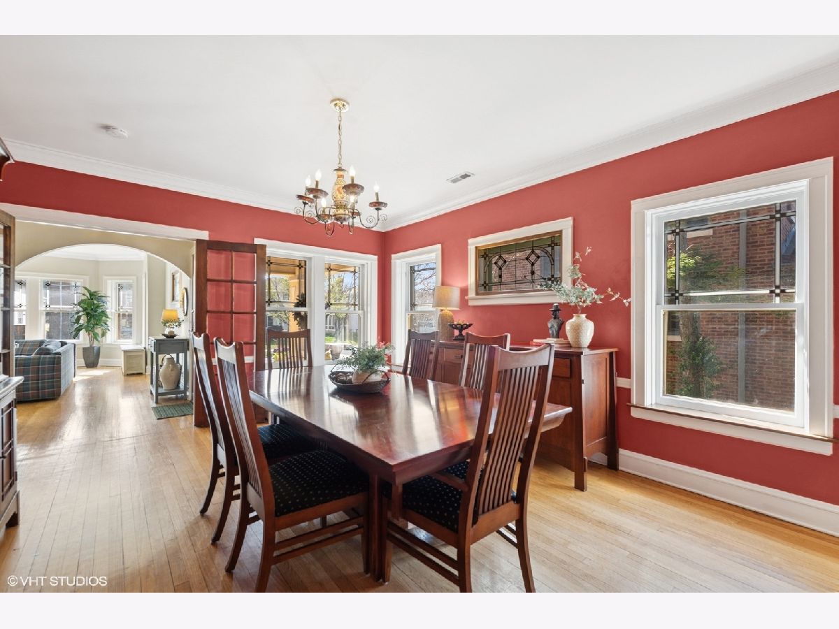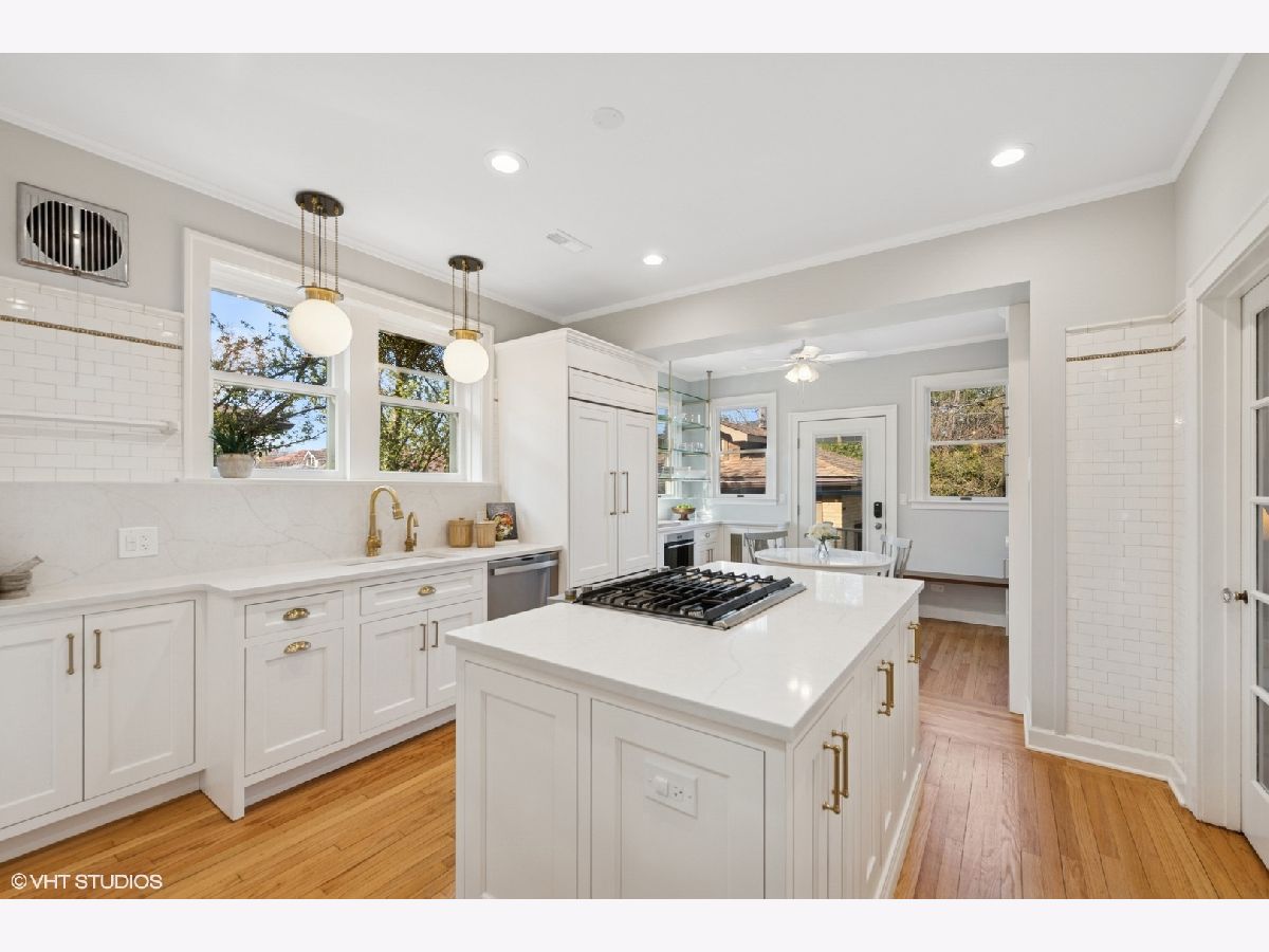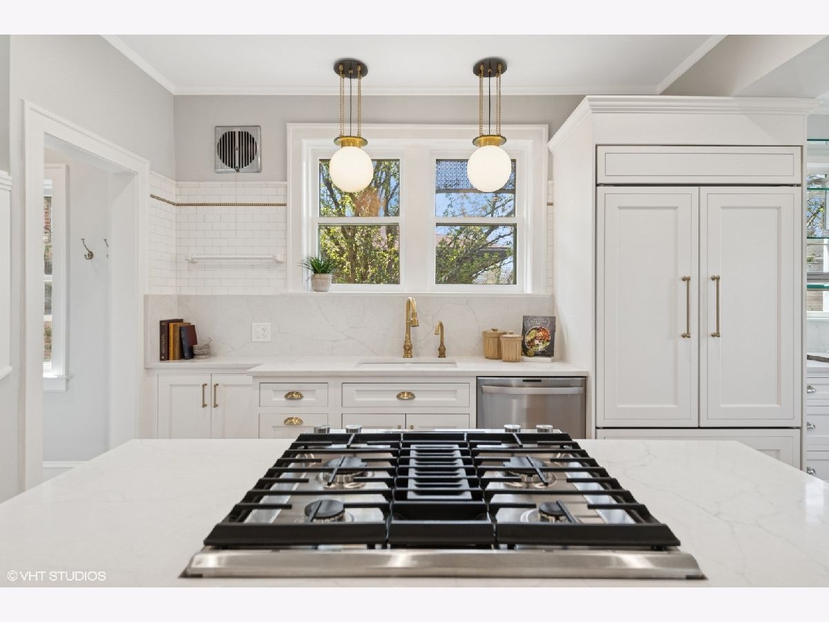 Must see stunning, jumbo brick bungalow amazing upgrades and charm. The living room is adorned with beautiful stained-glass windows and a decorative brick fireplace. The dream eat-in kitchen recently underwent a remarkable renovation in 2024, designed by Amanda Miller Design Studio. It features custom cabinets, a 42-inch Sub Zero refrigerator, a Wolf oven, and a Jenn-air downdraft range (gas/electric oven), complemented by quartz countertops, custom glass shelving, and designer lighting. The remodel also preserved the original tile, maintaining the home's classic charm, and includes a butler's pantry. 3 bedrooms conveniently on the main floor, while the second floor offers 2 additional bedrooms and an open landing. The expansive lower level includes two recreation rooms, along with immense storage space. Each floor has a full bathroom. Recent updates also include a new roof (2021), a new HVAC system (2021), and many more improvements. The outside space is lovely too! Enjoy the great paver patio, a driveway, and the front and back staircases recently rebuilt. All of this is conveniently located near Mann Elementary School, Linberg Park, and Taylor Park.