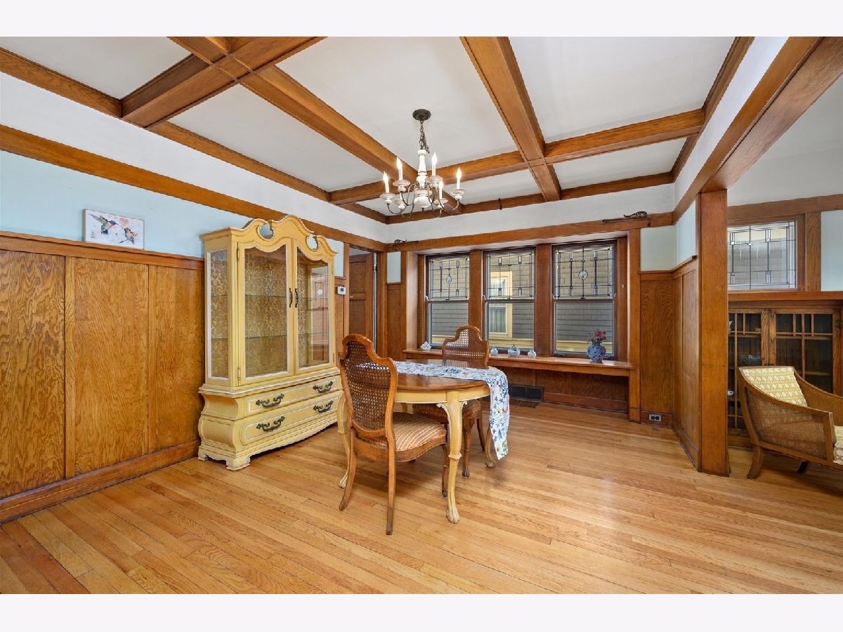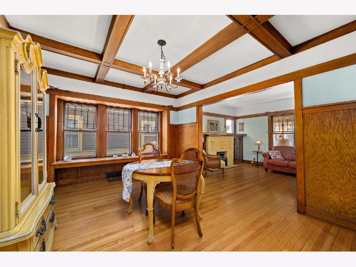 This is a quintessential Oak Park home. This 4 bedroom Craftsman Queen Ann bungalow has been meticulously maintained and is chock full of all the details you would expect in an Oak Park home. The spacious living room is highlighted by leaded glass windows, hardwood floors and beautiful wood built-ins around the decorative fireplace. The dining room has a stunning wood-beamed ceiling and leaded glass windows as well. 1st floor bedroom is great for guests or perfect for a home office. The kitchen has a lot of room to work with. Second floor has 3 very spacious bedrooms with good closet space. The basement has hosted many, many a Bears game and holiday party and is a great extra space. Both the front porch and back porch are great spaces to relax and watch the world go by. 2-car garage. This home is close to Anderson Park, Hatch School, and Taylor Park. New roof (2018). Don't miss this home.