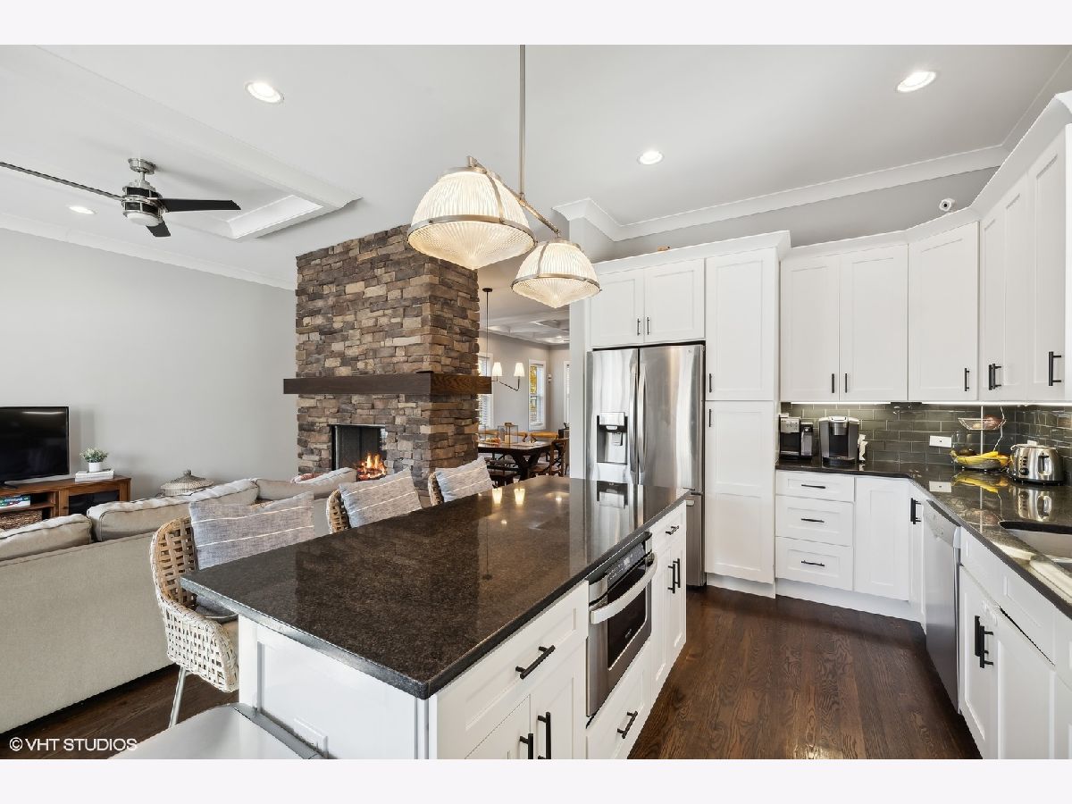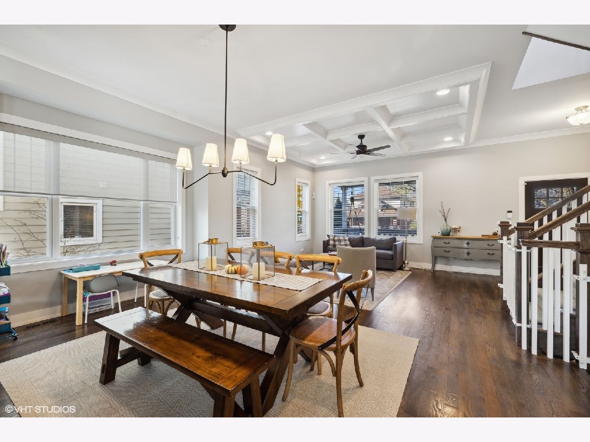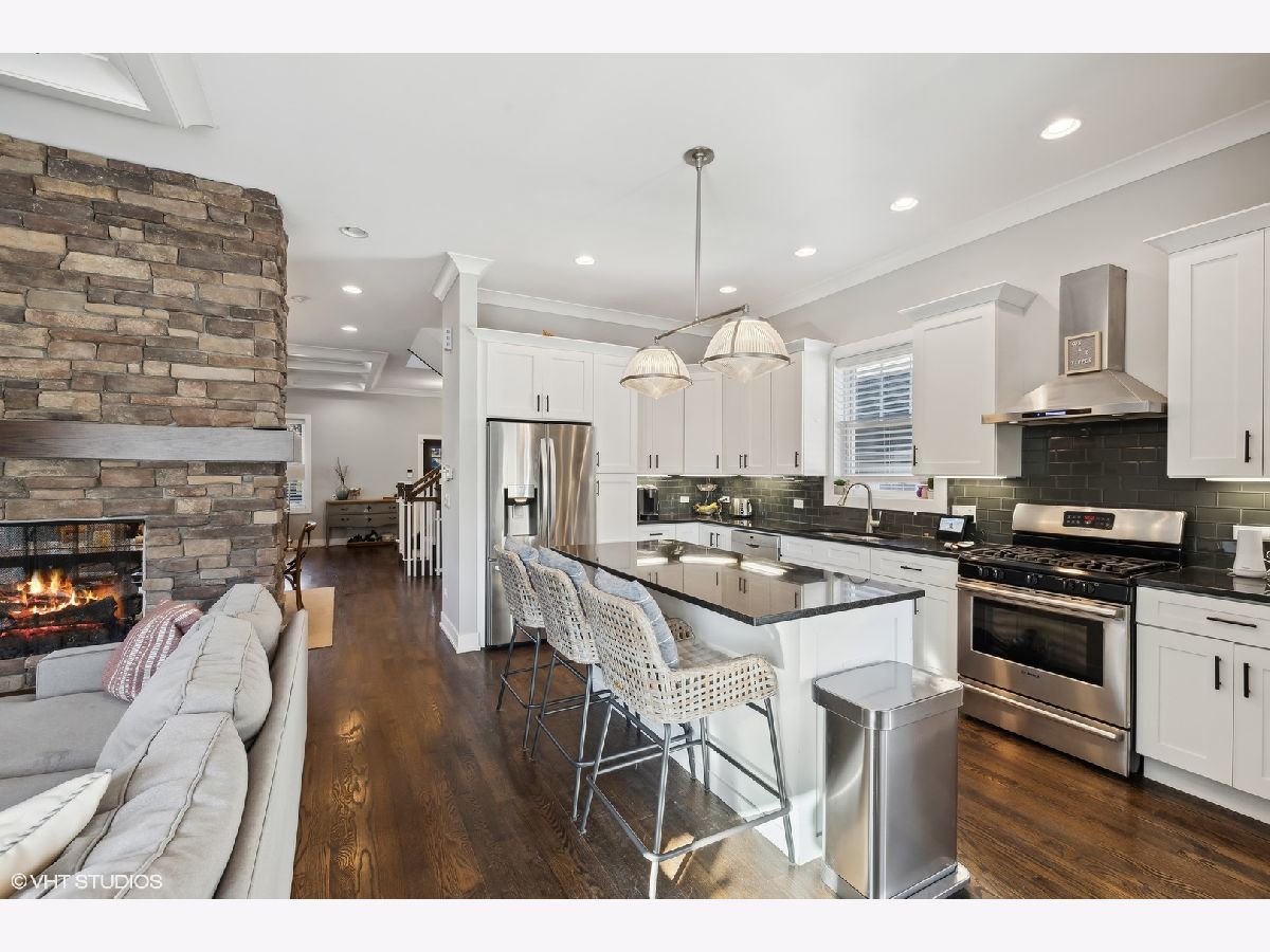 Located in beautiful NE Oak Park this amazing home features pristine wood floors, an open concept main living level, all the private space you need and so much more! The front porch greets you and the entryway flows into the beamed-ceiling living space perfect for formal entertaining. Host your favorite holidays in the large dining space. Relax at the end of your day in the gorgeous family room with double sided stately stone fireplace and large bright windows to the private back yard. The cook's kitchen with its large eat-at island can handle your best cuisine with granite countertops, custom cabinetry, and high-end stainless appliances. Three fantastic bedrooms are located on the 2nd floor including a luxurious primary suite with dual-sink vanity and walk-in closet. Don't miss the 2nd floor laundry room with more custom cabinetry and sink! Retreat to the lower-level rec room large enough for multiple game and entertainment spaces. This lower level also features a 4th bedroom/office with a custom built-in murphy bed and another full bath! Rear deck and two car garage. Walk to great schools, all forms of transportation, parks and more! Hurry!