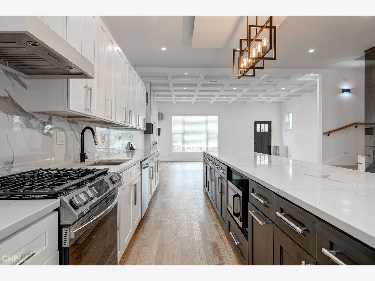 Welcome to HOT Humboldt Park! This 4 bedroom-5.5 bathroom new construction home has an abundance of amenities and luxury finishes. The main level features a wide open floor plan with exquisite quartz and a charming electric fireplace. The kitchen is full of premium touches like Samsung Smart Appliances and above the stove pasta-filler. Entertain your guests at the 12 foot long kitchen island with stunning quartz countertops or set the table in the dining room with a built in wet-bar. You can sip your morning coffee on the rear deck. Walk up the modern glass lined staircase and you'll find 3 bedrooms, each with their own walk-in closet and attached full bathroom. The master bedroom has dual walk-in closets and a show-stopper master bathroom. With floor to ceiling quartz, large dual-head shower, soaking tub, dual mirror/television and a toilet with bidet, it is a bathroom fit for royalty! Laundry on two levels! Head downstairs and enjoy movie night with the friends in the lower level family room with an included TV and wet-bar with wine fridge. Work-out in the exercise room with included treadmill and then relax in the sauna! You'll never have to worry about flooding with the drain tile system and sump-pump with battery backup. The rooftop desk offers an awe inspiring view of the Chicago skyline. You don't have to go far for drinks with the rooftop wet-bar. Relax with dual zoned HVAC with two furnaces & two ACs. You'll never run out of hot water with the tankless water heater! Save on your electric bill with its all LED lighting and dimmers. The home comes with a pre-installed full Google Nest suite including smart thermostats, door bells and security cameras. You do not want to miss this home in fast appreciating Humboldt Park!