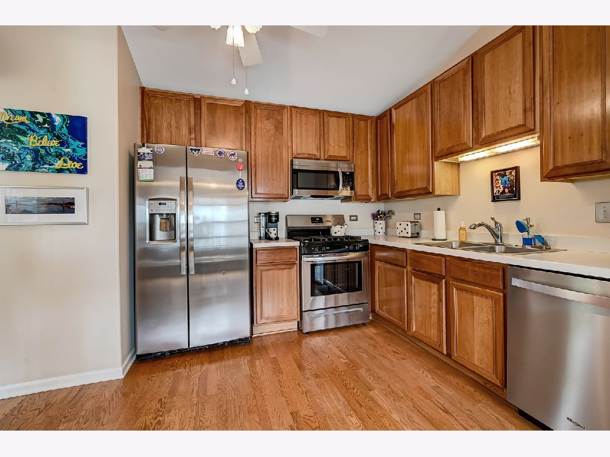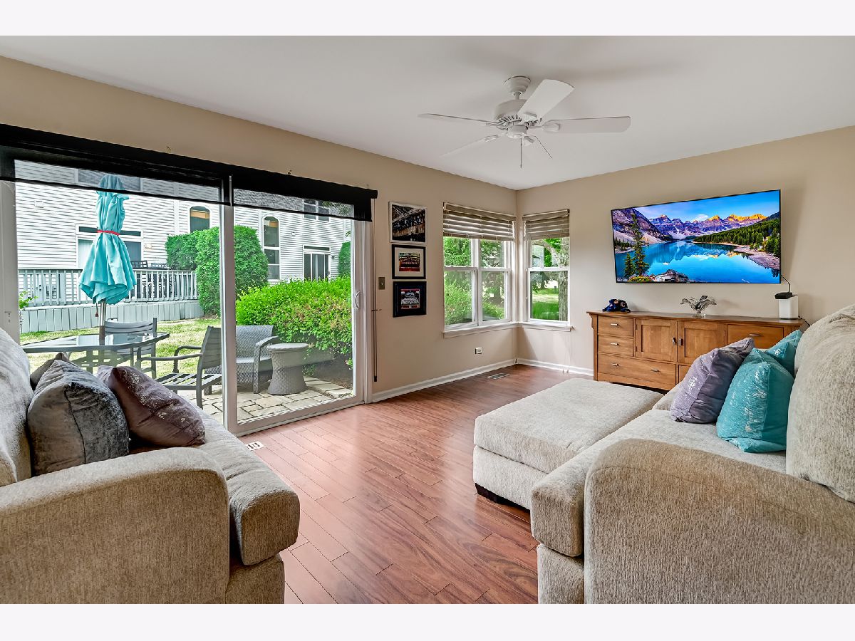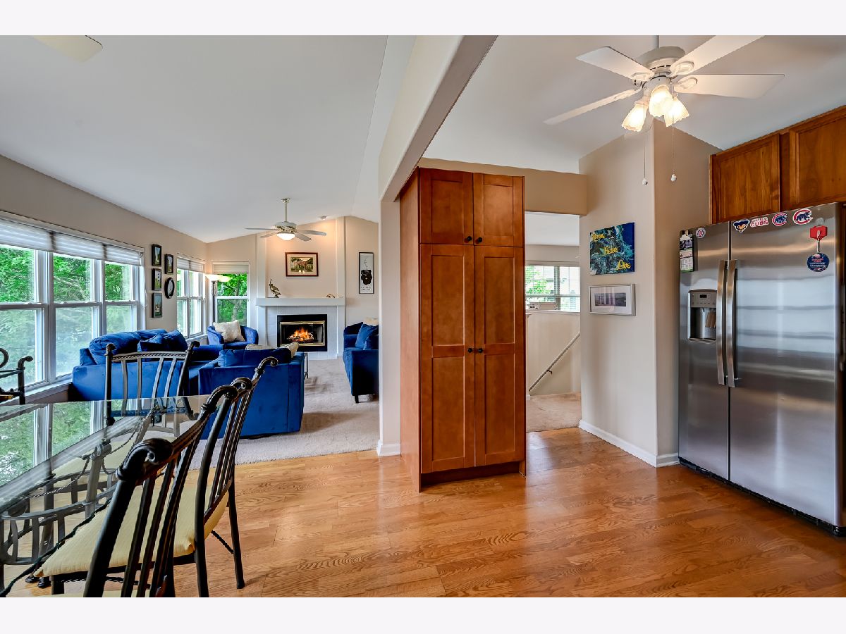 Open, airy Waterfall Glen end unit with vaulted ceilings & lots of natural light. Wood laminate floors in dining room & kitchen. * Kitchen has 42" cherry cabinetry & custom built pantry cabinet for easy storage. NEWER Stainless Steel Appliances-Refrig (12/2020), DW (2021), O/R & Microwave (2021). Living room has gas fireplace. Custom Hunter Douglas blinds in LR/DR area. Loft area perfect for office * Upgraded with California Closets in 3 bedrooms * Ground level family room has beautiful wood laminate flooring, NEWER glass sliding door to patio and Newer Smith & Noble sun blocking shades. 4 NEW light fixtures. Ceiling fans in most rooms. Koshgarian cleaned and sealed all tile in the home. 2 Car attached garage ** Beautifully maintained ** Move right in. Convenient to expressways. Close to Forest Preserve walking & biking trails.