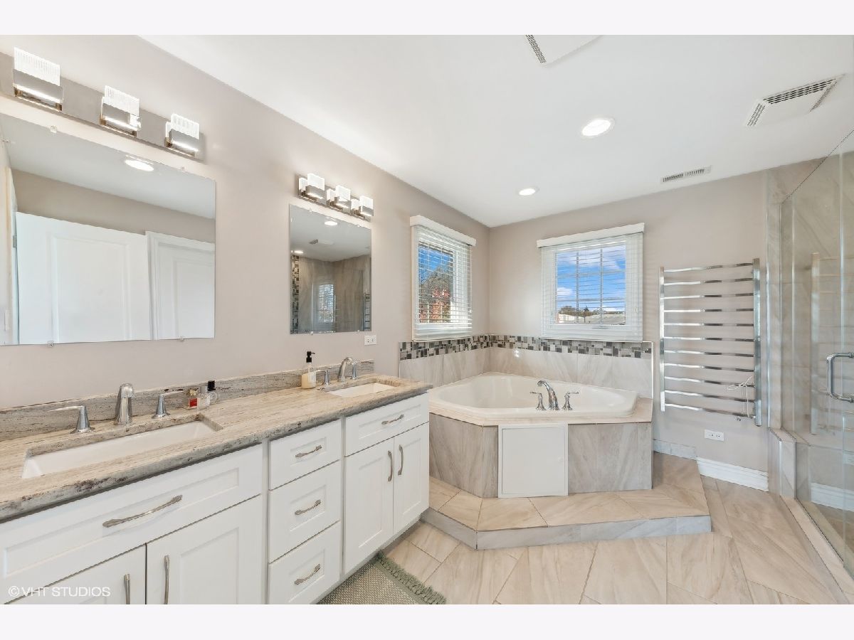 Welcome to this exquisite newer-construction home, offering 3,460 sq. ft. of luxurious living space. With 5 bedrooms, 3.1 bathrooms, and exceptional finishes throughout, this home effortlessly blends comfort and elegance. Unlike many homes with basements, this home maximizes every square foot of its above-ground space, providing a larger and more accessible living area. The open floor plan features 10' ceilings, beautiful hardwood floors, crown moldings, a cozy fireplace, an office, and a 5th bedroom/guest suite on the main level. The gourmet kitchen is a chef's dream, complete with granite countertops, an island/breakfast bar, energy-efficient stainless-steel appliances, and custom cabinetry. The expansive master suite offers a spa-like bath with a separate shower, body sprays, a jetted tub, and a walk-in closet. Additional highlights include a second-floor laundry room, fire sprinkler system, and generously sized bedrooms. The exterior is finished with durable Hardie board and original brick, providing superior thermal and noise insulation. Ideally located just 3 blocks from the Metra station and within walking distance to top-rated schools, the Park Ridge Community Center, a park with a driving range, dog park, ice arena, and a nearby forest preserve with golf, jogging, and bike trails.
