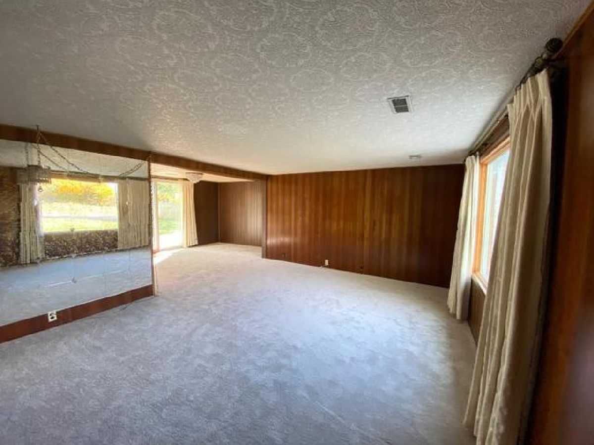 Sprawling ranch on almost a full acre lot with 16 trees, brand new carpet in the living room, dining room, & hallway, large picture window for bright and natural light in the living room, enjoy those cozy nights in the family room with wood burning fireplace, full wall natural brick fireplace, skylight in the family room, galley kitchen with newer cabinets and trim, pantry closet, dining room with sliding doors to huge backyard, 3 bedrooms, updated full bath, furnace 2019, 50 gallon hot water heater, central air, all double hung vinyl clad windows, large and bright laundry room complete with washer and dryer, bring your outdoor toys, lots of storage in the 3 car attached garage, second garage door off the back of the garage for drive thru, two storage sheds ( 12' x 16' and 8' x 16'), you wont run out of parking with the HUGE oval driveway. Property sold "AS IS"