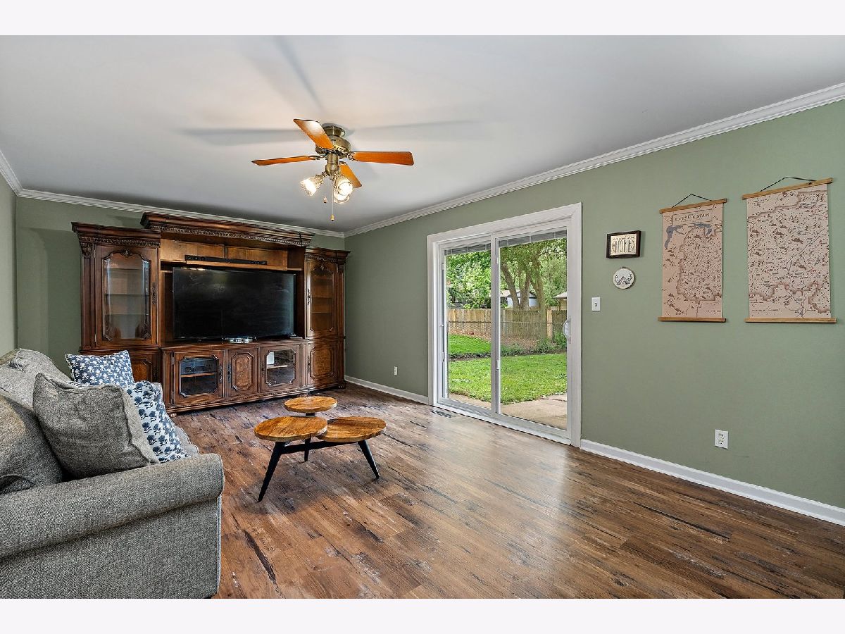 Lovely ranch home located in highly sought-after Coventry subdivision! This home offers many features: Foyer with coat closet ~ Large living room with vaulted ceiling, decorative beams, a wall of windows and opens to casual eating area ~ Family room with crown moulding, electric fireplace, newer vinyl hardwood floors, access to garage and has slider (with mini blinds) that opens to patio and fenced back yard ~ Laundry closet set up for for stackable washer/dryer ~ Galley style kitchen opens to dining room with large pantry ~ Beautiful hardwood floors in majority of first floor and so much more! Numerous improvements in past few years include: additional attic insulation 2008/powder room re-fresh 2010/windows 2015/high efficiency furnace, AC, humidifier 2016/exterior doors, siding, shingles, gutters with guards & downspouts 2018/water heater 2020 and most recently the family room flooring. Crystal Lake offers a Metra commuter line, charming downtown area and acres of parks and open spaces.