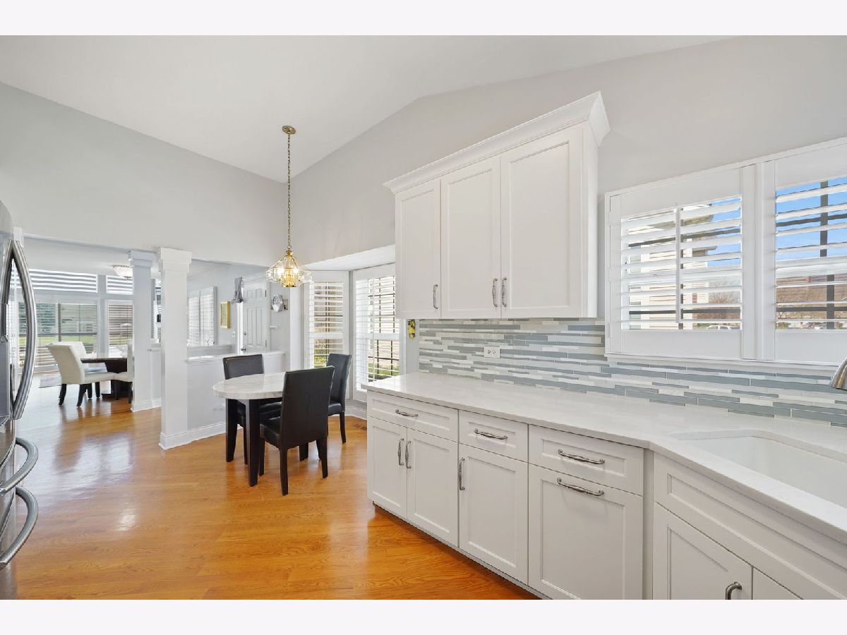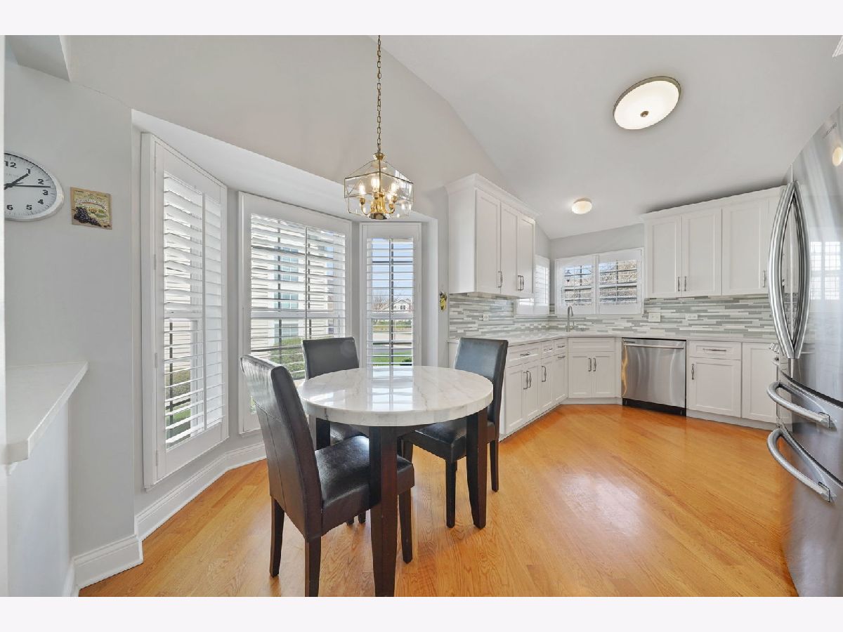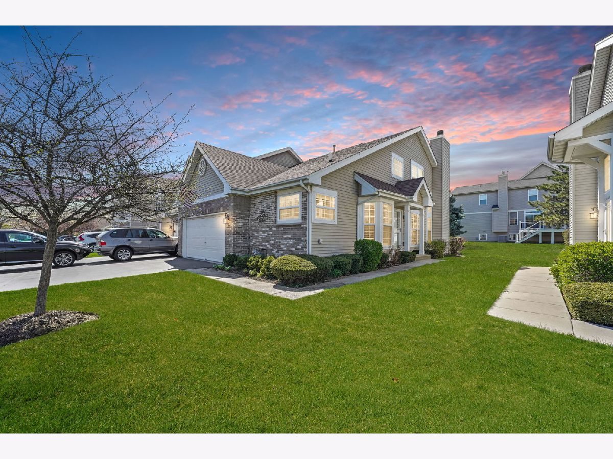 Welcome to this impeccably renovated end-unit townhome offering unparalleled comfort and modern finishes. Upon entering, you're greeted by the inviting ambiance of the open-concept main floor showcasing a two-story foyer and family room, engulfed with natural light from floor-to-ceiling windows enhanced with high-end plantation shutters. Flawless hardwood floors guide you as you make your way to the spacious kitchen featuring a breakfast nook, top-of-the-line appliances, soft close cabinets, sleek quartz countertops, and on-trend backsplash making meal preparation a joy. Explore the first-floor suite, complete with a spacious walk-in closet, a full bathroom with a double-sink vanity, and an expansive shower. Ascend to the second floor to discover yet another impressive suite with an attached bathroom and a generously sized walk-in closet, giving you the option of which room to make your primary! The second floor also presents an oversized den, providing versatility as a flex space, office, or potential to make an additional bedroom. Fully finished basement including luxury laminate flooring throughout, a bonus kitchen, and a convenient half bathroom, ideal for entertaining or accommodating guests. Ample storage space ensures that organization is effortless. Convenient first-floor laundry room with extra cabinetry and storage. Attached two-car garage. Outdoor entertaining is a pleasure on the extended concrete patio, offering the privacy you desire within the townhome community setting. Some 2019 updates include: Completely renovated kitchen, bathrooms, hardwood floors, carpeting, high-end shutters, laundry room and a sump pump backup battery. AC & HWH, and extended backyard patio installed (2023). So much more! With low HOA fees, top-rated schools, and proximity to the Metra & I-390, as well as restaurants, grocery stores, and local parks, this home offers the perfect blend of features and location!