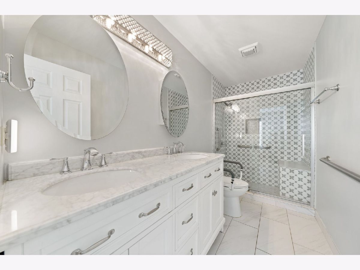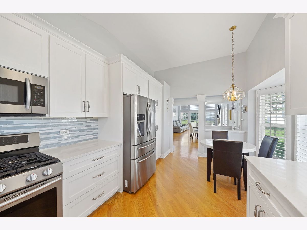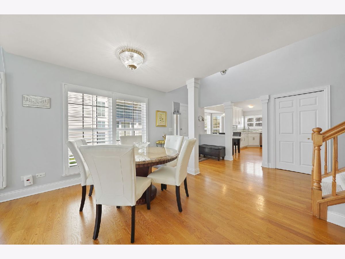 Welcome to this impeccably renovated end-unit townhome offering unparalleled comfort and modern finishes. Upon entering, you're greeted by the inviting ambiance of the open-concept main floor showcasing a two-story foyer and family room, engulfed with natural light from floor-to-ceiling windows enhanced with high-end plantation shutters. Flawless hardwood floors guide you as you make your way to the spacious kitchen featuring a breakfast nook, top-of-the-line appliances, soft close cabinets, sleek quartz countertops, and on-trend backsplash making meal preparation a joy. Explore the first-floor suite, complete with a spacious walk-in closet, a full bathroom with a double-sink vanity, and an expansive shower. Ascend to the second floor to discover yet another impressive suite with an attached bathroom and a generously sized walk-in closet, giving you the option of which room to make your primary! The second floor also presents an oversized den, providing versatility as a flex space, office, or potential to make an additional bedroom. Fully finished basement including luxury laminate flooring throughout, a bonus kitchen, and a convenient half bathroom, ideal for entertaining or accommodating guests. Ample storage space ensures that organization is effortless. Convenient first-floor laundry room with extra cabinetry and storage. Attached two-car garage. Outdoor entertaining is a pleasure on the extended concrete patio, offering the privacy you desire within the townhome community setting. Some 2019 updates include: Completely renovated kitchen, bathrooms, hardwood floors, carpeting, high-end shutters, laundry room and a sump pump backup battery. AC & HWH, and extended backyard patio installed (2023). So much more! With low HOA fees, top-rated schools, and proximity to the Metra & I-390, as well as restaurants, grocery stores, and local parks, this home offers the perfect blend of features and location!
