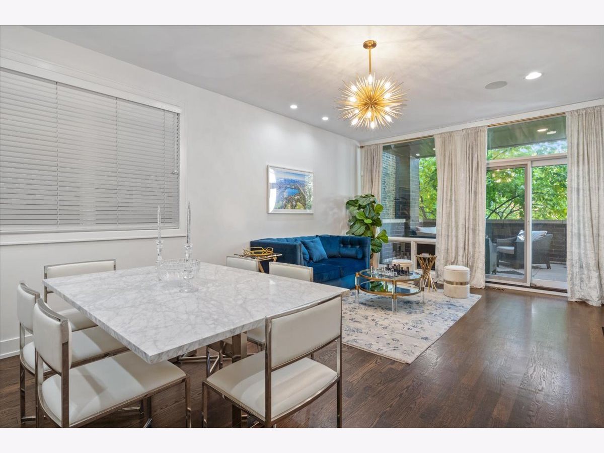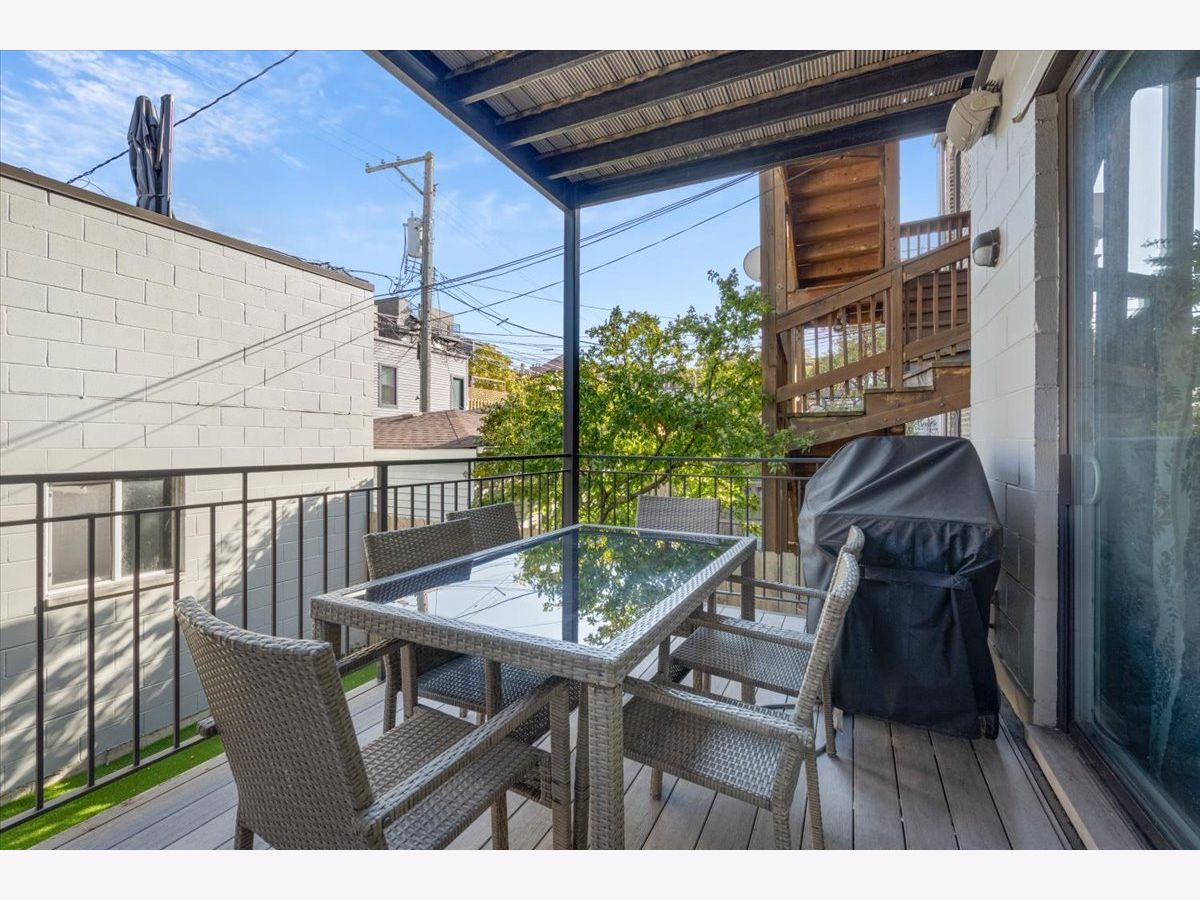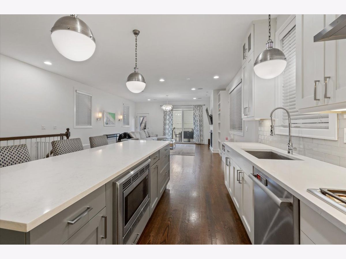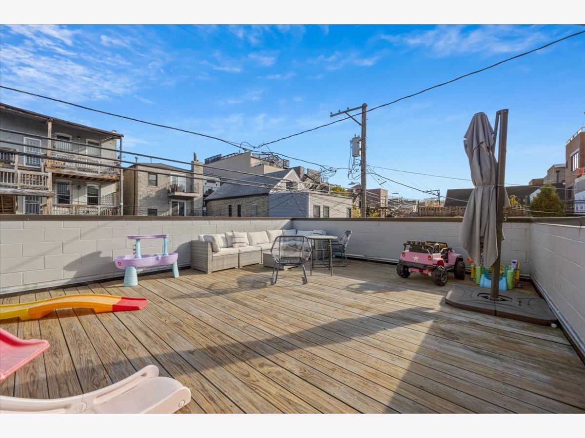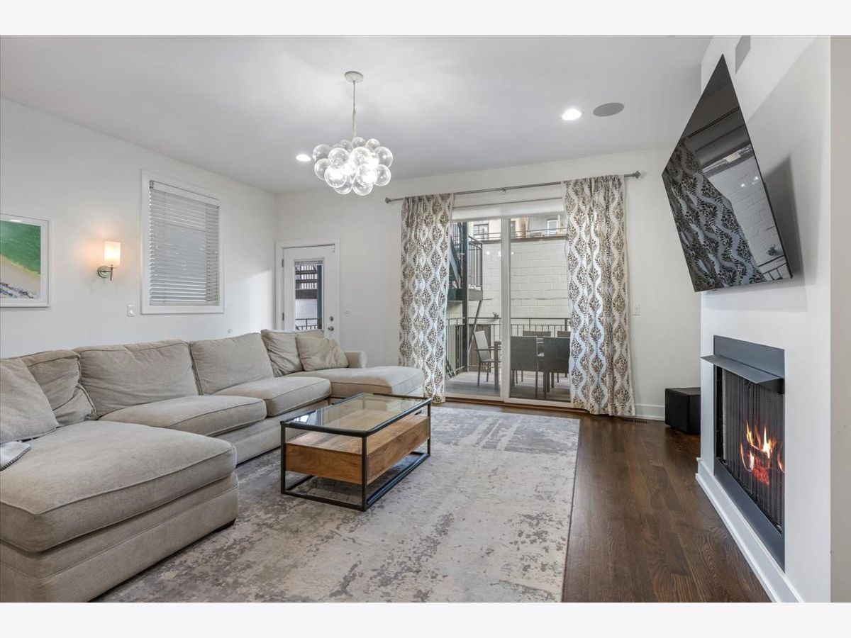 Better than new-stunning East Village duplex featuring 3 bedrooms on one level, 2.5 baths, and THREE private outdoor spaces. Ideally located just two blocks from the heart of Division Street and Wicker Park, this home offers an exceptional blend of luxury, comfort, and thoughtful upgrades throughout. Step inside to an extraordinary entertaining space where a large front balcony flows seamlessly into the formal living/dining room, complete with a full wet bar and wine refrigerator. Designer details shine at every turn, including wide-plank hardwood floors, custom window treatments, and high-end lighting from Arteriors and Circa. The open-concept chef's kitchen is outfitted with quartz countertops, an oversized island with bar seating, Thermador appliances, and double ovens, making it the perfect centerpiece for gathering. The main level continues outdoors to both a rear deck and an expansive private garage rooftop deck-an ideal extension of your living space. All three bedrooms are situated on the radiant-heated lower level, finished with porcelain wood-look tile. The sprawling primary suite features a fireplace, walk-in closet, and spa-like bath with a steam shower. Professionally organized closets throughout plus additional private storage offer exceptional convenience. This impeccably maintained home offers elevated finishes, extensive upgrades, and unbeatable proximity to the best of East Village and Wicker Park-truly turn-key and move-in ready.