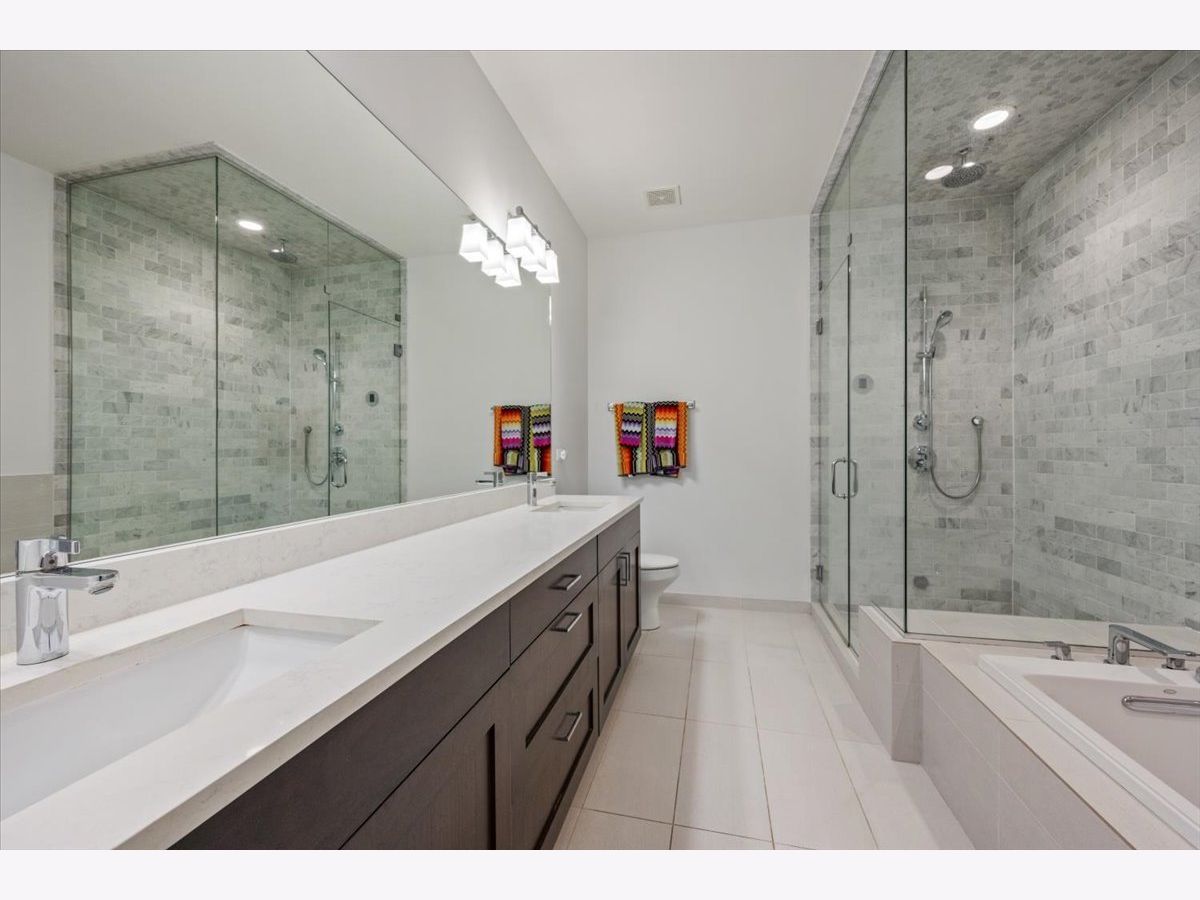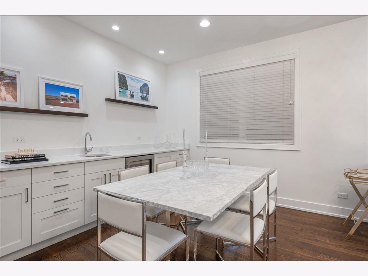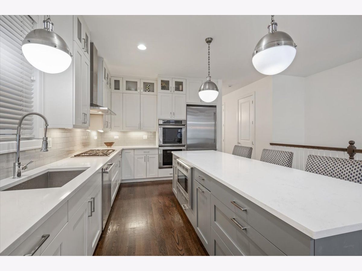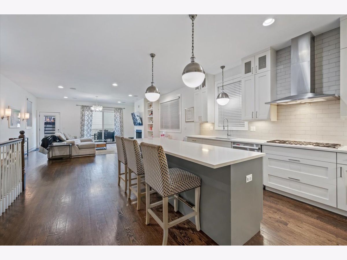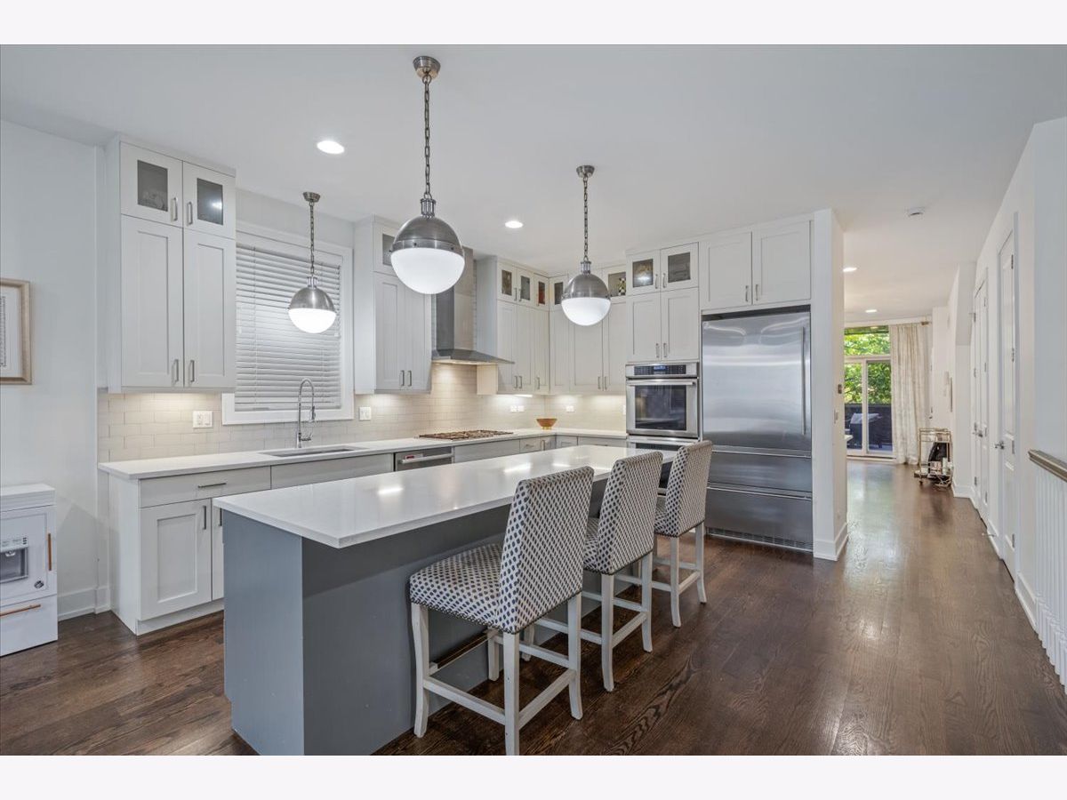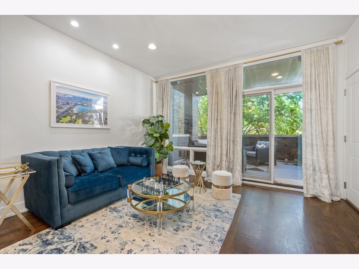Better than new-stunning East Village duplex featuring 3 bedrooms on one level, 2.5 baths, and THREE private outdoor spaces. Ideally located just two blocks from the heart of Division Street and Wicker Park, this home offers an exceptional blend of luxury, comfort, and thoughtful upgrades throughout. Step inside to an extraordinary entertaining space where a large front balcony flows seamlessly into the formal living/dining room, complete with a full wet bar and wine refrigerator. Designer details shine at every turn, including wide-plank hardwood floors, custom window treatments, and high-end lighting from Arteriors and Circa. The open-concept chef's kitchen is outfitted with quartz countertops, an oversized island with bar seating, Thermador appliances, and double ovens, making it the perfect centerpiece for gathering. The main level continues outdoors to both a rear deck and an expansive private garage rooftop deck-an ideal extension of your living space. All three bedrooms are situated on the radiant-heated lower level, finished with porcelain wood-look tile. The sprawling primary suite features a fireplace, walk-in closet, and spa-like bath with a steam shower. Professionally organized closets throughout plus additional private storage offer exceptional convenience. This impeccably maintained home offers elevated finishes, extensive upgrades, and unbeatable proximity to the best of East Village and Wicker Park-truly turn-key and move-in ready.
