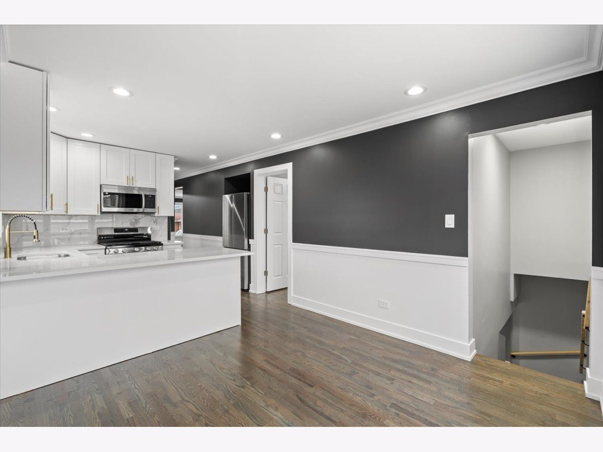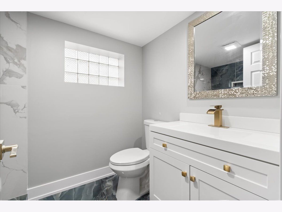 Experience the perfect blend of comfort, elegance, and modern design in this stunning 5 bedroom, 2 bathroom ranch home located in the heart of Longwood Manor on an oversized lot. From the moment you step inside, the meticulous craftsmanship is undeniable. Striking crown molding, chair rail detailing, and a sophisticated fireplace wrapped in custom tile set the tone for the entire home. Satin finish hardwood floors flow seamlessly throughout the main level, guiding you into an open ultramodern kitchen designed for both beauty and functionality joined by a cozy dinette area. The kitchen features recessed LED lighting, sleek white shaker cabinets, premium quartz countertops, a beautifully crafted tile backsplash, and stainless-steel appliances. Three spacious bedrooms and a contemporary bathroom with luxurious gold plumbing fixtures complete the main floor's polished aesthetic. The fully finished lower level expands your living space with a generous family room enhanced by luxury vinyl flooring and recessed lighting, the perfect setting for relaxation or entertainment. Two additional bedrooms and a modern bathroom with a custom standup shower and stylish gold fixtures add versatility and comfort. A large utility and laundry room provides exceptional storage and convenience. Step outside to a sizable backyard ideal for gatherings, quiet evenings, or future outdoor enhancements. A 2 car garage completes this impressive property. This turnkey home offers unmatched convenience with close proximity to parks, local amenities, public transportation, and major expressways. A rare opportunity in a sought after community. This exceptional residence awaits YOU!